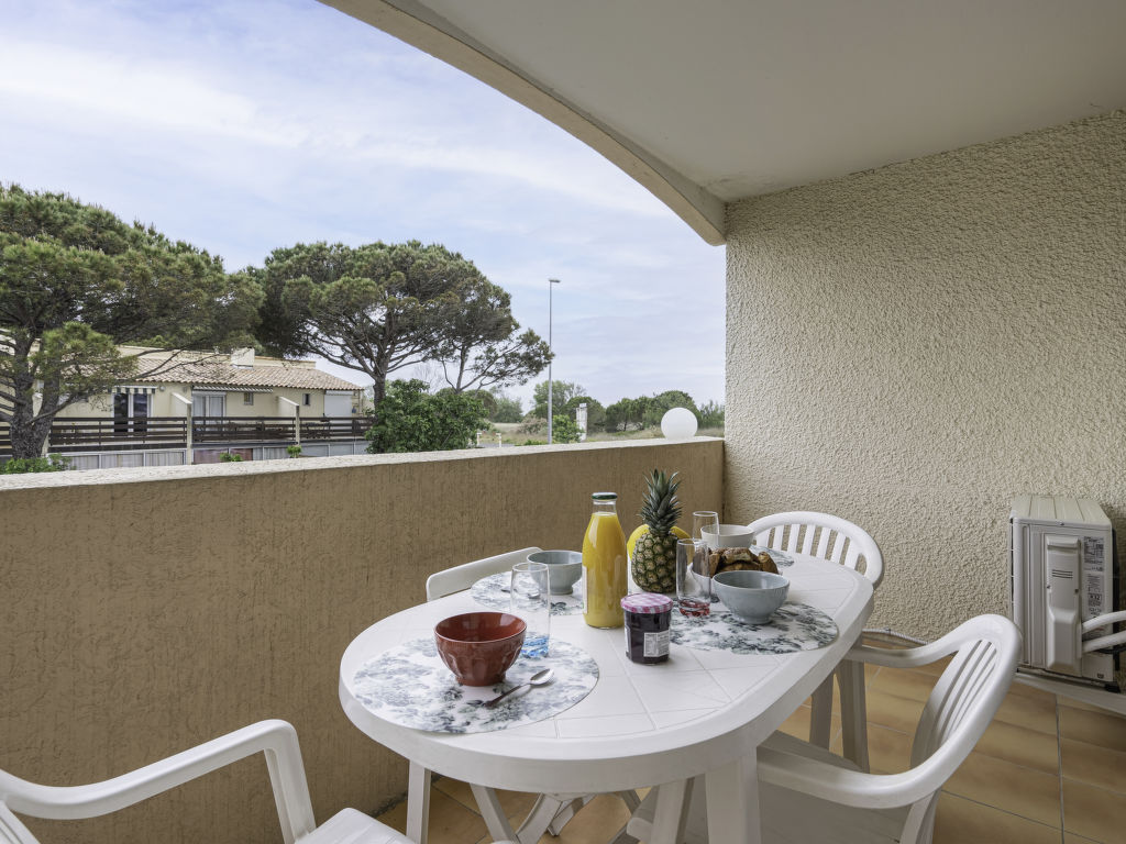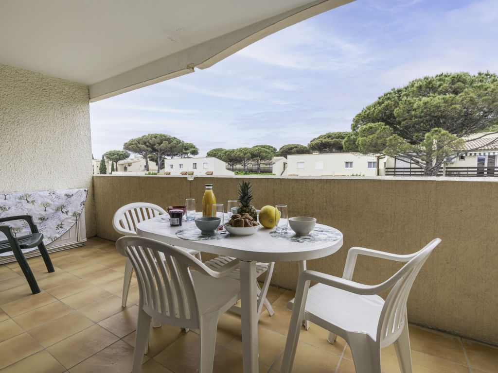 Residenz "Les Estivales", umgeben von Bäumen. Im Ortsteil La Pinède, Très près du Quartier Naturistes, sonnige Lage, 1 km vom Meer, in einer Sackgasse. Zur Mitbenutzung: Schwimmbad (12 x 6 m, 120 cm tief, saisonale Verfügbarkeit: 15.Jun.-27.Aug.). Aussendusche, Parkplatz. Einkaufsgeschäft 2 km, Lebensmittelgeschäft 600 m, Sandstrand 1 km. Sporthafen 1 km, Golfplatz (27 Loch) 2.5 km. Bitte beachten: In diesem Haus sind weitere Ferienwohnungen mietbar.