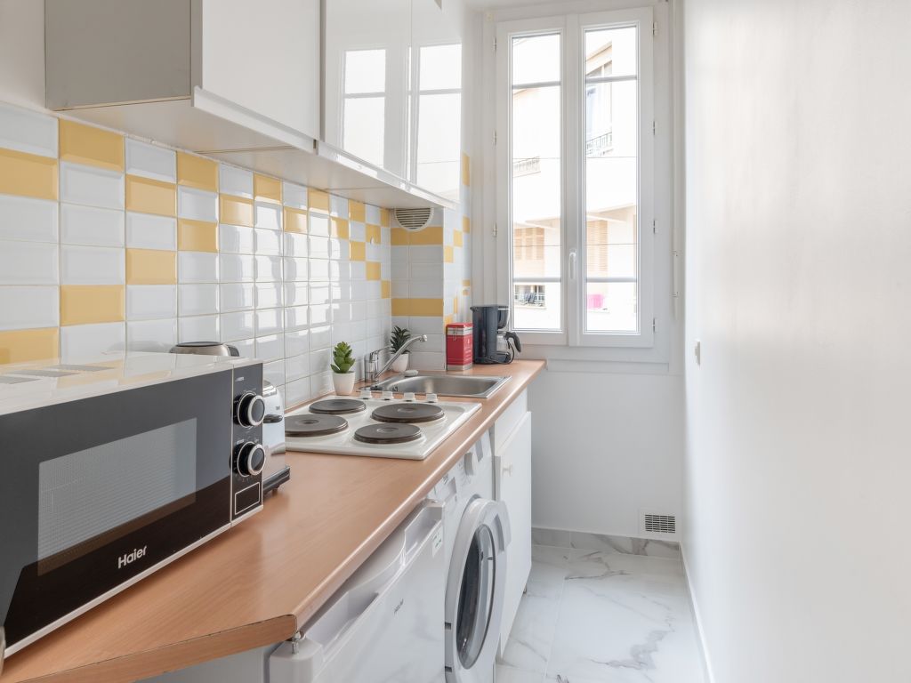 1-Zimmer-Studio 22 m2 im 3. Stock. Hell, renoviert im Jahre 2021, komfortabel und schön eingerichtet: Wohn-/Esszimmer mit 1 Doppeldiwanbett (140 cm, Länge 190 cm), TV (Flachbildschirm). Küche (4 Kochplatten, Backofen, Toaster, Wasserkocher, Tiefkühler, elektrische Kaffeemaschine). Dusche/WC. Heizung. Parkettböden. Zur Verfügung: Bügeleisen, Haartrockner. Internet (Wireless LAN, gratis). Bitte beachten: Wohnung auf Hofseite. Nichtraucher-Unterkunft. Rauchmelder. Inserat einer Privatperson nach Artikel 155, IV, CGI. 06088017376SB