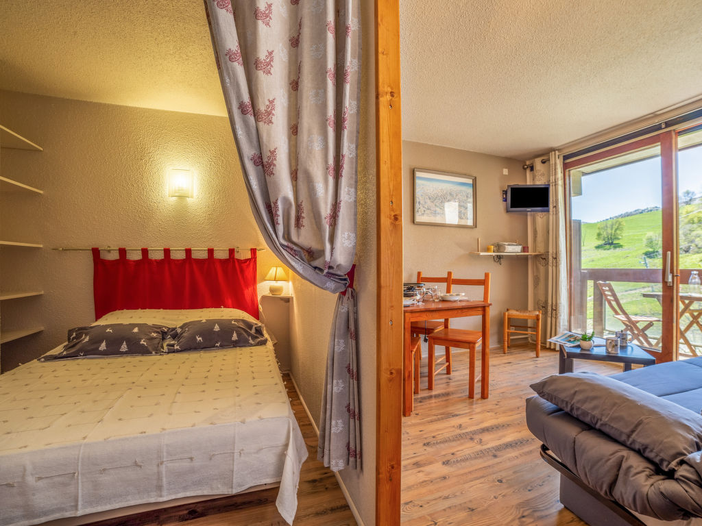 1-Zimmer-Studio 28 m2 im 7. Stock. Zweckmässig und schön eingerichtet: Wohn-/Esszimmer mit TV (Flachbildschirm), Radio, CD, DVD und elektrischem Rollladen. Ausgang zum Balkon. Schlafnische mit Vorhang mit 1 x 2 Etagenbetten (80 cm, Länge 190 cm). Schlafnische mit Vorhang mit 1 Doppeldiwanbett (140 cm, Länge 190 cm). Küche (Geschirrspüler, 2 Induktionskochplatten, Toaster, Wasserkocher, Mikrowelle, elektrische Kaffeemaschine, Kapseln für die Kaffeemaschine (SENSEO) extra, Racletteofen). Bad, sep. WC. E-Heizung. Parkettböden. Balkon 4 m2. Balkonmöbel. Sicht auf die Skipiste. Zur Verfügung: Waschmaschine, Wäschetrockner, Haartrockner. Internet (Wireless LAN, extra). Bitte beachten: Nichtraucher-Unterkunft. Rauchmelder. Inserat einer Privatperson nach Artikel 155, IV, CGI.