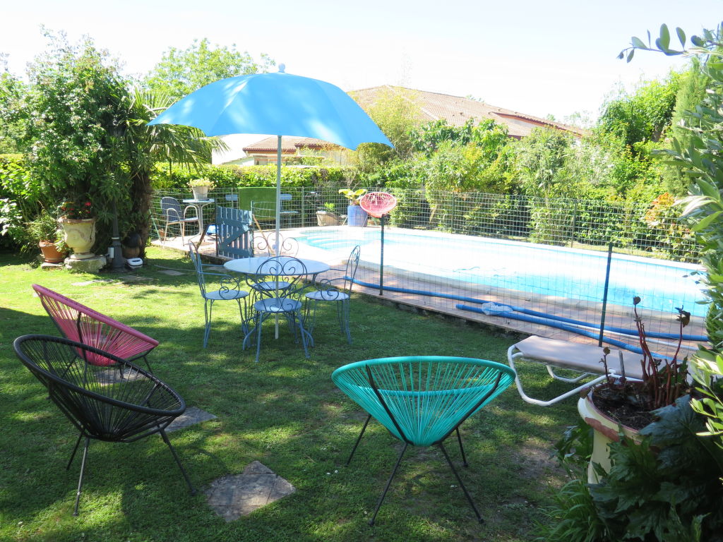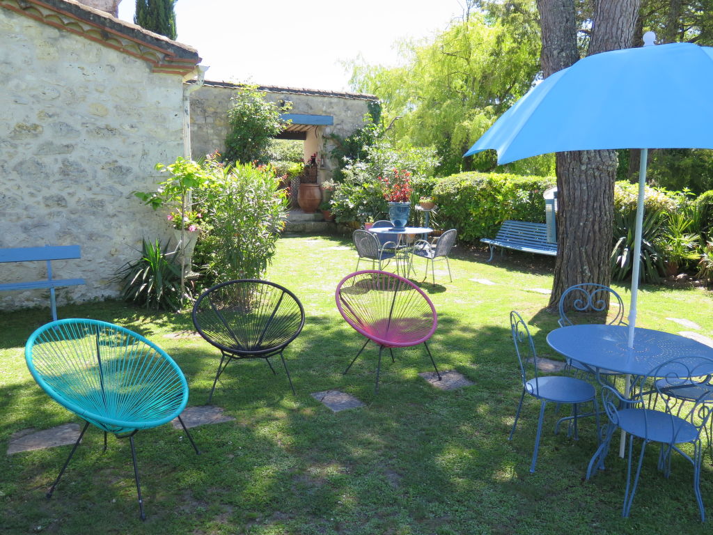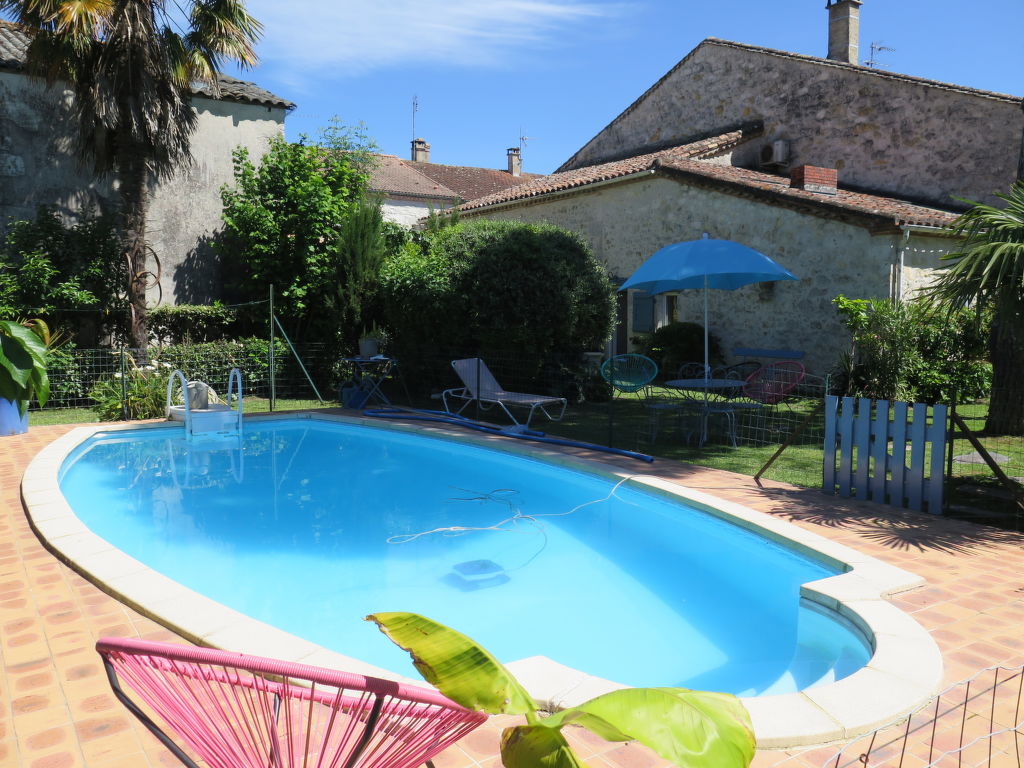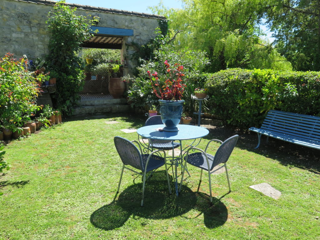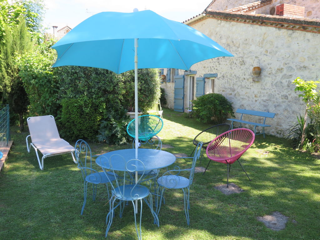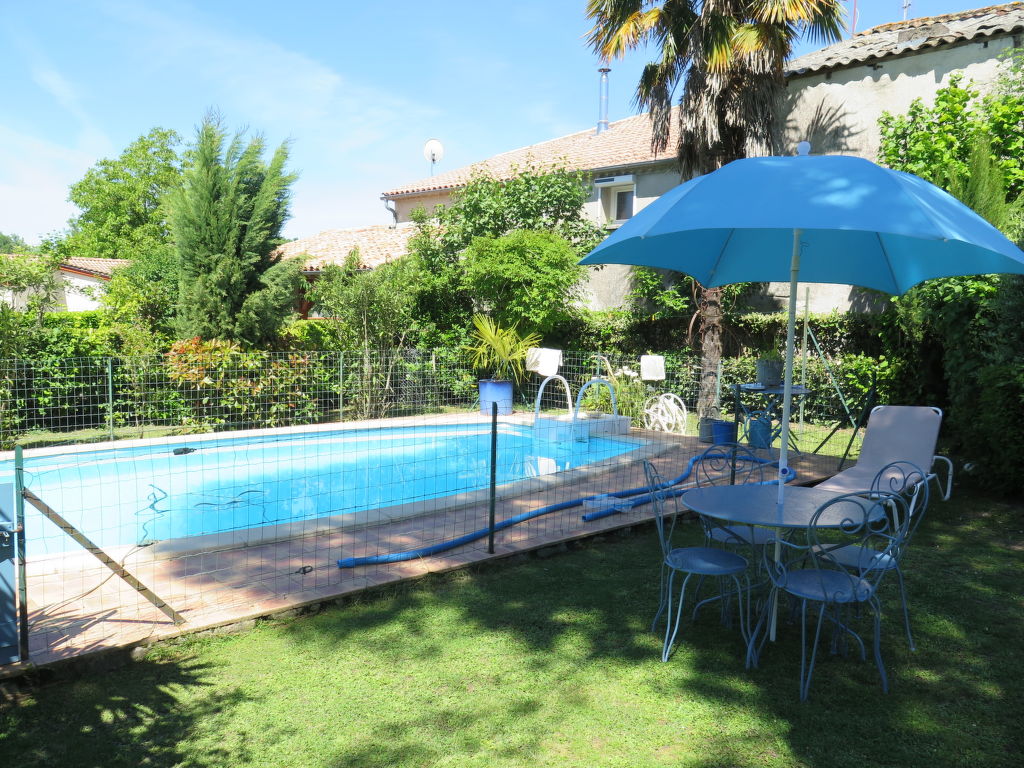 Kleines, gemütliches Reihenhaus "Les Volets Bleus". Im Ortszentrum von Sauvagnas, 5 km vom Zentrum von Pont-du-Casse, 7 km vom Zentrum von Laroque Timbaut, 13 km vom Zentrum von Agen, exzellente Lage: Absolut zentral und dennoch ruhig. Zur Alleinbenutzung: gepflegter Garten 500 m2 (eingezäunt) mit Pflanzen und Bäumen, Schwimmbad eingezäunt (8 x 4 m, 120 - 180 cm tief, 18.06.-03.09.) mit Salzelektrolyse-Reinigungssystem. Parkplatz beim Haus. Einkaufsgeschäft 5 km, Supermarkt 10 km. Golfplatz (18 Loch) 15 km.