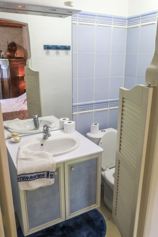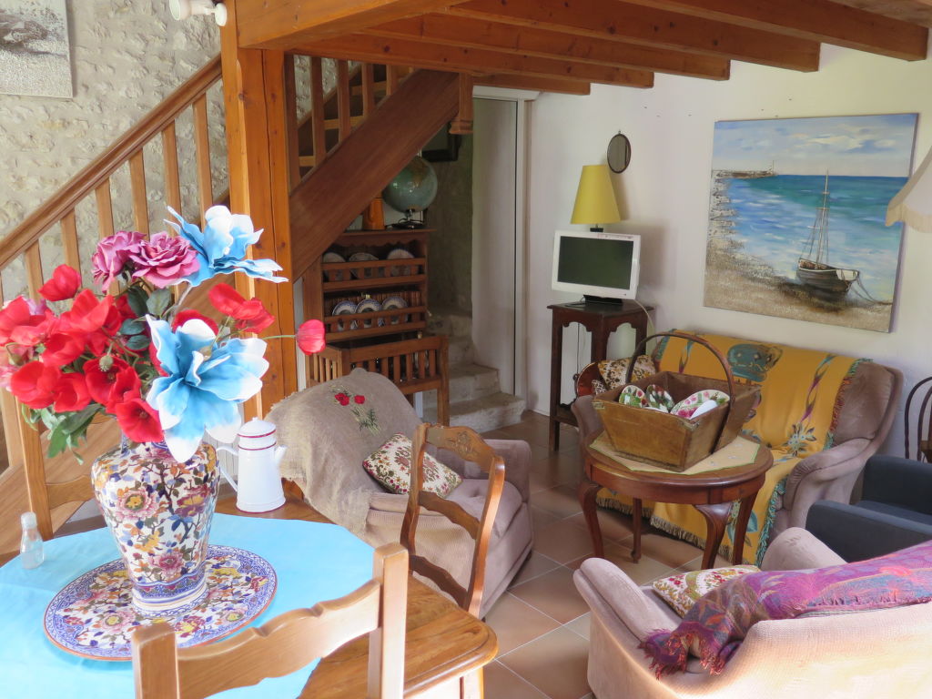 "Les Volets Bleus", 2-Zimmer-Reihenhaus 60 m2. Komfortabel eingerichtet: Wohn-/Esszimmer mit Esstisch und Kabel-TV (Flachbildschirm). Ausgang zum Garten. 1 Zimmer mit 1 franz. Bett (140 cm, Länge 190 cm), Dusche/WC. Kleine Küche (Geschirrspüler, 4 Flammen, Toaster, Wasserkocher, elektrische Kaffeemaschine, Kombinationsmikrowelle). Dusche/WC. Ölheizung. Terrassenmöbel, Gartengrill (mobil), Liegestühle (2). Zur Verfügung: Waschmaschine, Bügeleisen. Internet (Wireless LAN, gratis). Bitte beachten: Nichtraucher-Haus. Rauchmelder.