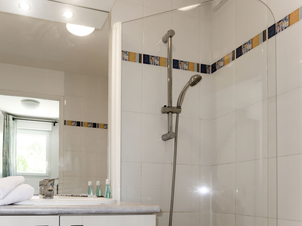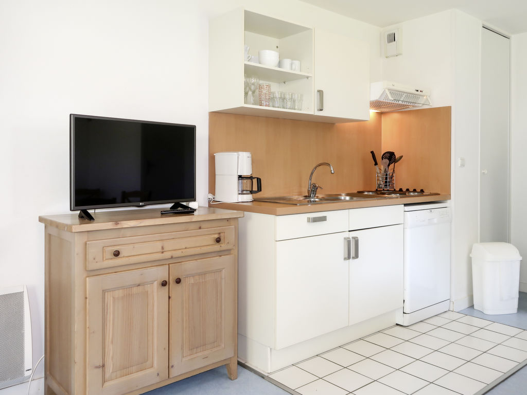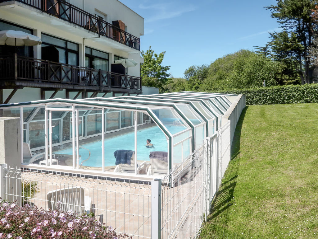 Ferienanlage "Les Roches Douvres". 4 Häuser in der Residenz. 81 Wohnungen in der Residenz. 1.5 km vom Zentrum von Saint Briac-sur-Mer, am Ortsrand, 7 km vom Zentrum von Dinard, 300 m vom Meer. Zur Mitbenutzung: Grundstück mit Pflanzen, Wiese, Schwimmbad beheizt, geschützt (13 x 6 m, 150 cm tief, saisonale Verfügbarkeit: 01.Jan.-31.Dez.). In der Anlage: Empfang, Aufenthaltsraum, Sauna (extra). Billard, Fahrstuhl, Einstellraum für Fahrräder, Waschmaschine (zur Mitbenutzung, extra), Fahrradverleih. Brötchenservice. Parkplatz. Einkaufsgeschäft 1.5 km, Restaurant 1.5 km, Sandstrand 300 m. Golfplatz (18 Loch) 450 m. Das Foto ist nur ein Wohnungsbeispiel. Die Mietobjekte können sich in Wohnfläche, Raumaufteilung, Ausstattung und Einrichtung unterscheiden.