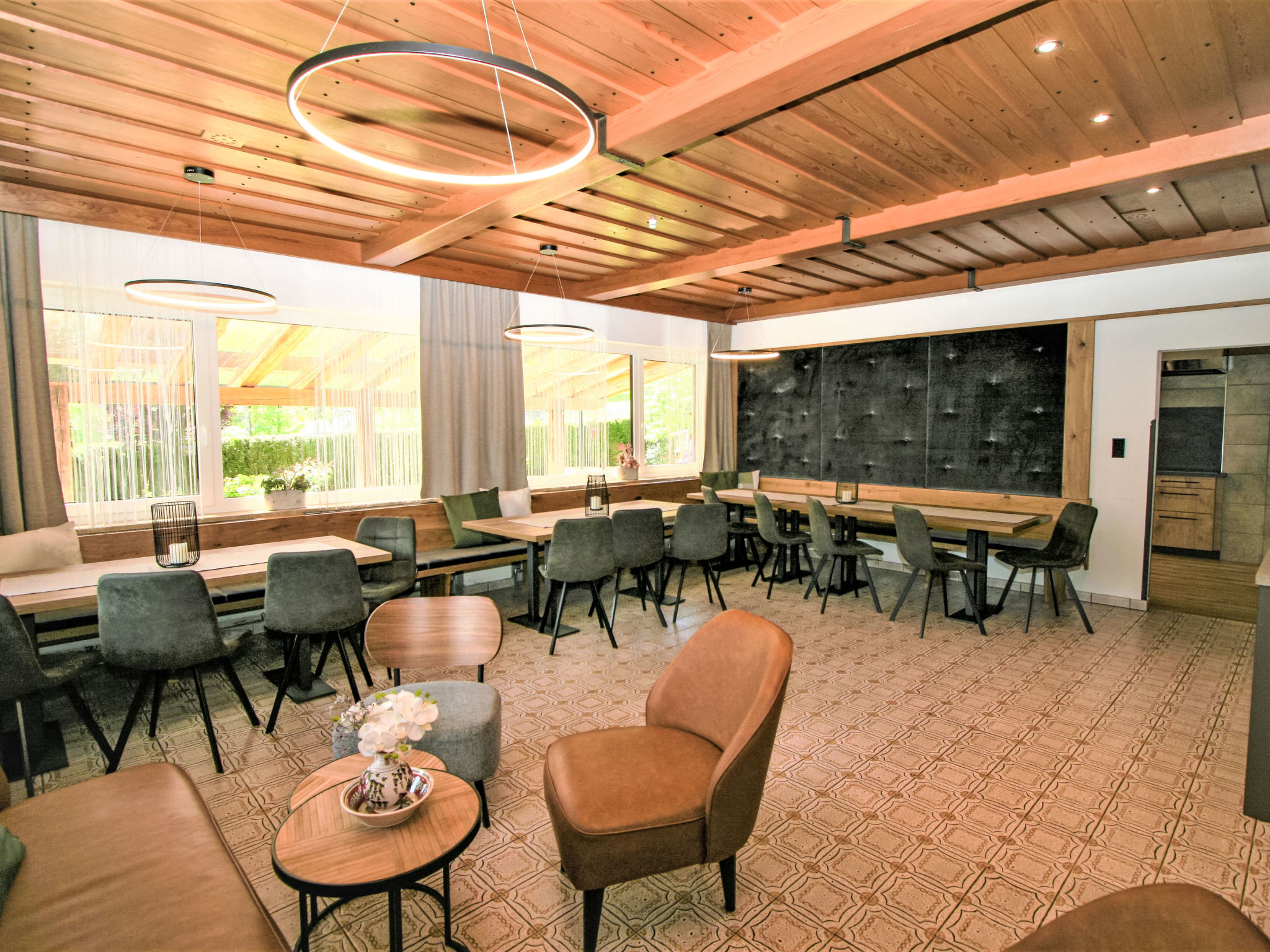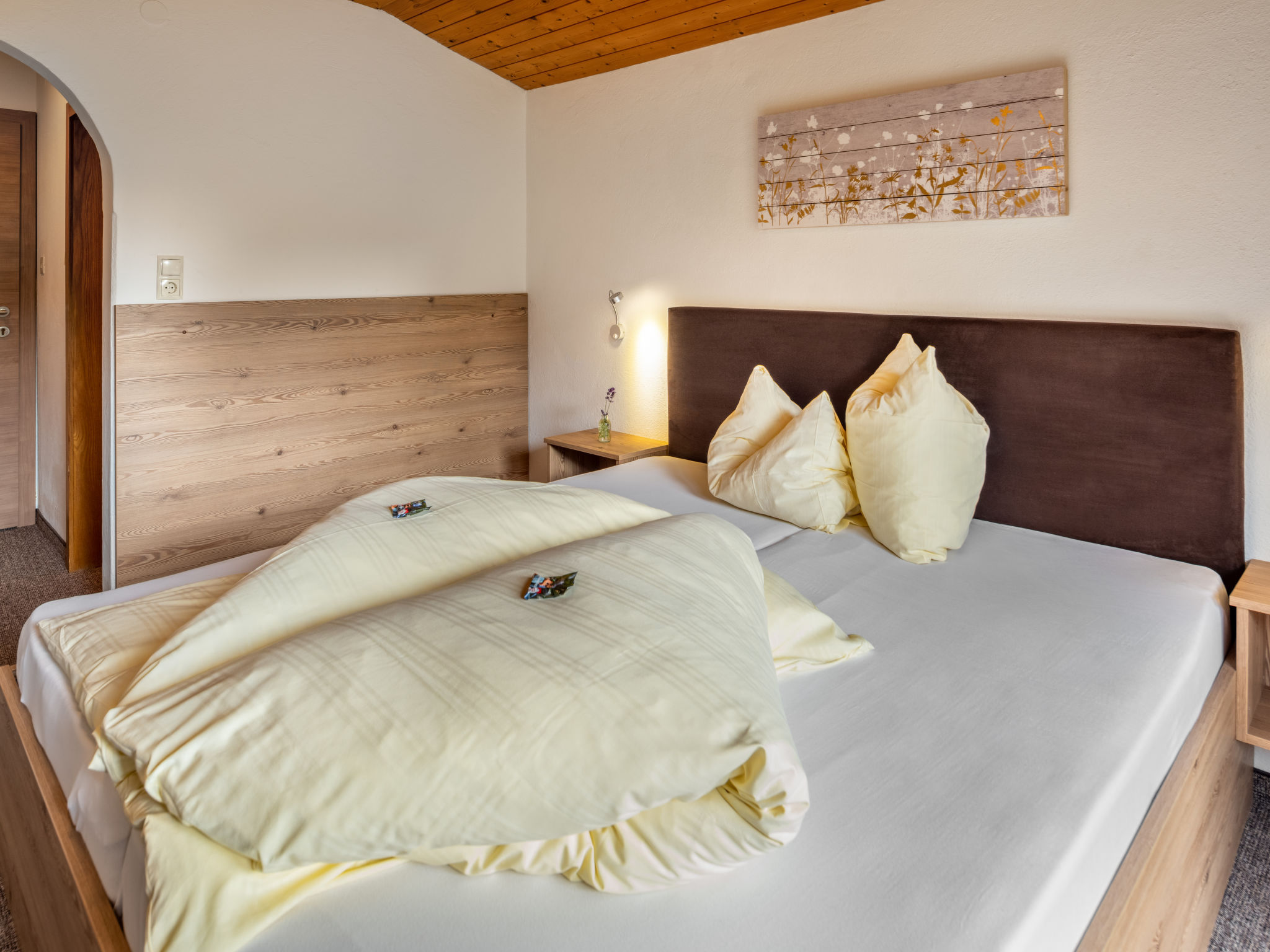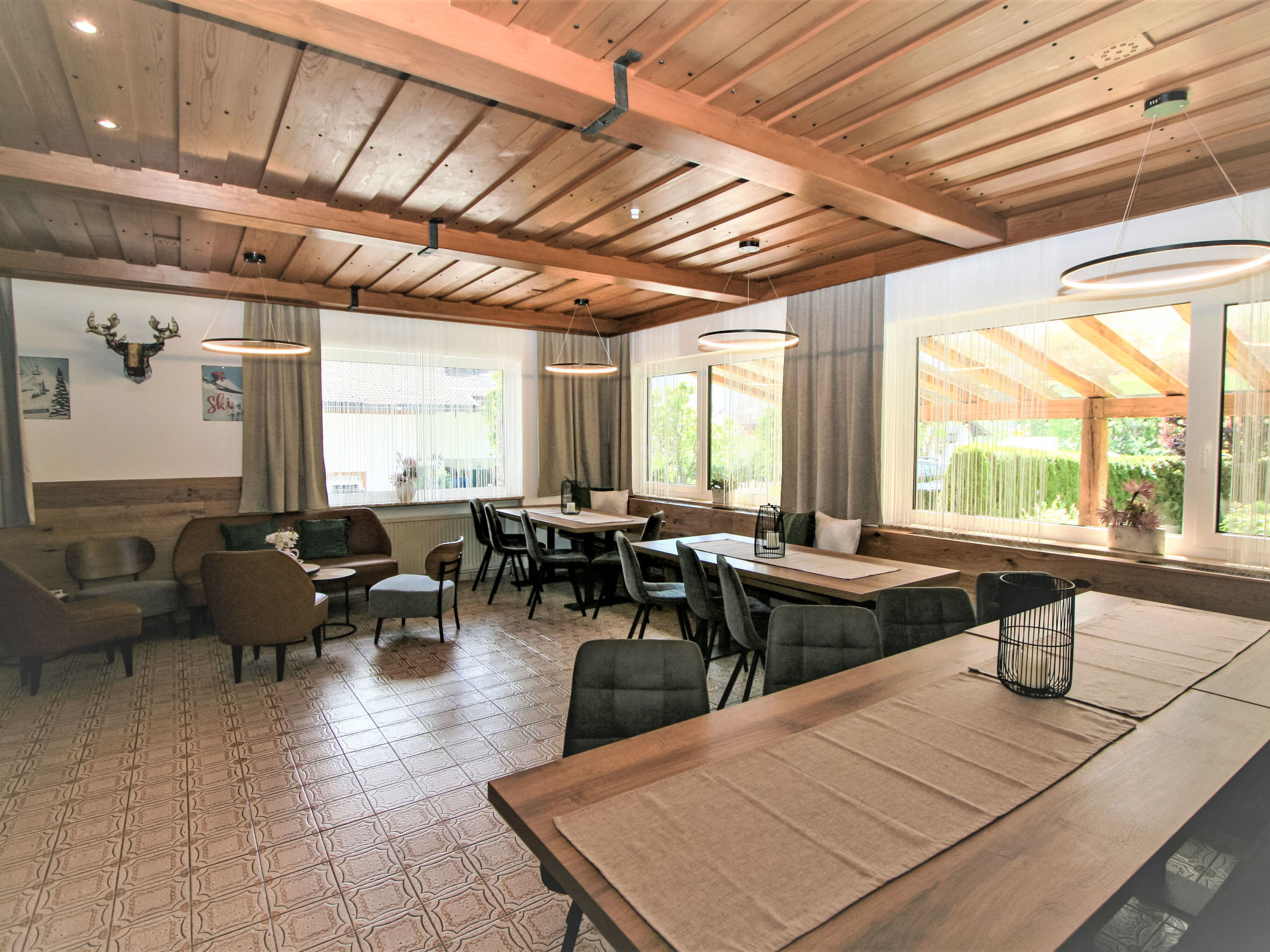 14-Zimmer-Haus, 3 Etagen, ca. 300 m². Flur. Großer Aufenthalts-/Essraum mit Tischen, Stühlen, Eckbänken und Küchenzeile (4 Ceranfelder, Backofen, Mikrowelle, Geschirrspüler, Kühlschrank, Kaffeemaschine, Wasserkocher). Speisekammer mit Kühlschrank und Gefrierschrank. 2x sep.WC. 1. Etage: 5 Doppelzimmer, jeweils mit Dusche/WC und TV. Doppelzimmer mit Dusche/WC. Einzelzimmer, Dusche/WC. 2. Etage: 4 Doppelzimmer, jeweils mit Dusche/WC und TV. Doppelzimmer mit Waschbecken. 2 Einzelzimmer mit Waschbecken. Außer einem Einzelzimmer alle Schlafzimmer mit Balkonausgang. Sep.WC. Bei Belegung mit weniger Personen als der maximalen Personenzahl stehen nicht alle Wohneinheiten zur Verfügung.