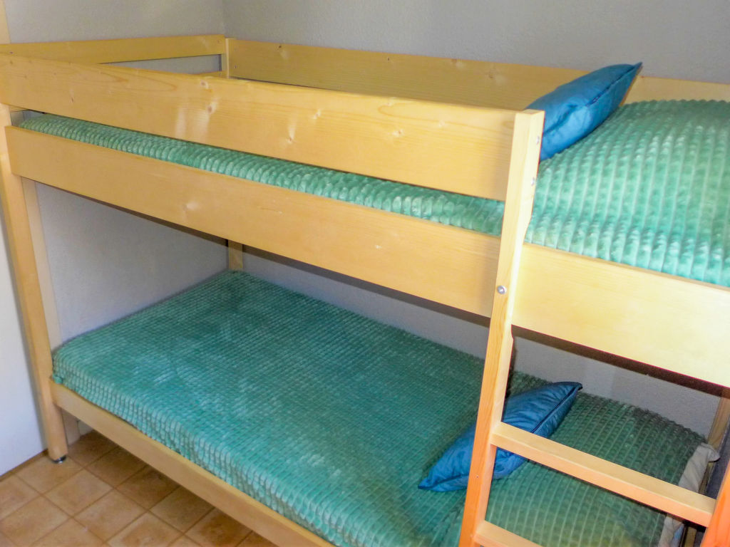 3-Zimmer-Wohnung 30 m2 im 1. Stock. Zweckmässig und schön eingerichtet: Wohn-/Esszimmer mit TV (Flachbildschirm). Ausgang zum Balkon, zur Loggia. 1 Zimmer mit 1 franz. Bett (140 cm). 1 Zimmer mit 1 x 2 Etagenbetten. Kochnische (2 Kochplatten, Mikrowelle, elektrische Kaffeemaschine, Kapseln für die Kaffeemaschine (senseo) extra). Bad, sep. WC. Balkon, Westlage. Zur Verfügung: Waschmaschine. Internet (Wireless LAN, extra). Parkplatz. Bitte beachten: Maximal 1 Haustier/Hund erlaubt. Rauchmelder. Inserat einer Privatperson nach Artikel 155, IV, CGI.