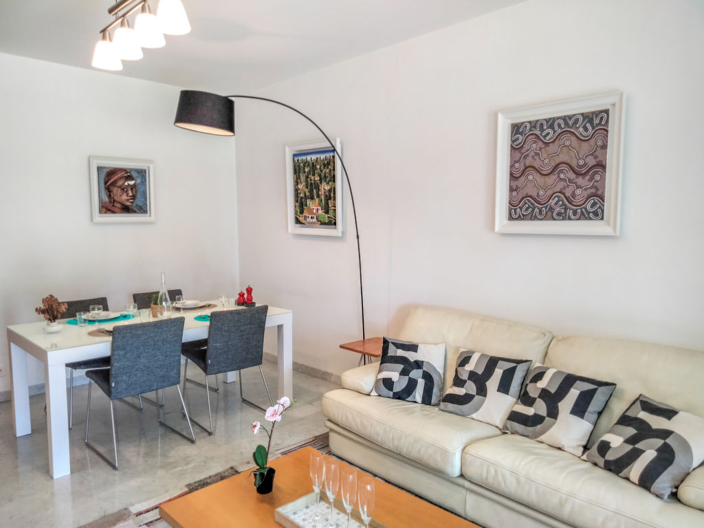 3-Zimmer-Wohnung 75 m2, im Erdgeschoss. Geräumig und hell, komfortabel und schön eingerichtet: Wohn-/Esszimmer mit Panoramafenster mit TV (Flachbildschirm). Ausgang zur Terrasse. 1 Zimmer mit 1 Doppelbett (1 x 140 cm, Länge 190 cm). Ausgang zur Terrasse. 1 Zimmer mit 2 Betten (90 cm, Länge 190 cm). Ausgang zum Balkon. Küche (4 Kochplatten, Backofen, Geschirrspüler, Toaster, Wasserkocher, Mikrowelle, Tiefkühler, elektrische Kaffeemaschine). Ausgang zum Balkon. Bad, sep. WC. E-Heizung. Terrasse 14 m2, Südlage und Westlage. Terrassenmöbel. Sicht auf den Garten. Zur Verfügung: Waschmaschine, Wäschetrockner, Bügeleisen, Haartrockner. Internet (Wireless LAN, gratis). Parkplatz Nr. 49 (überdacht, 1 Auto). Bitte beachten: Nichtraucher-Unterkunft. Inserat einer Privatperson nach Artikel 155, IV, CGI. 06027017457MX