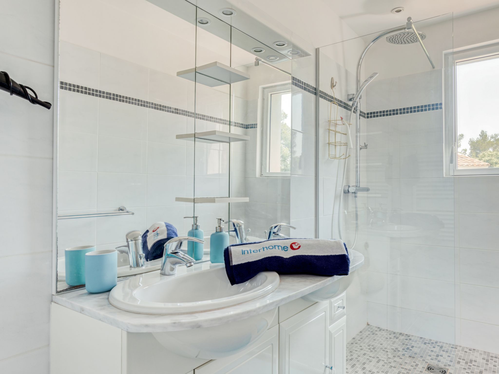 5-Zimmer-Haus 160 m2 auf 2 Stockwerken. Modern eingerichtet: Wohn-/Esszimmer mit Esstisch, TV und Flachbildschirm. 1 Zimmer mit 1 franz. Bett (1 x 140 cm, Länge 190 cm), Dusche. Offene Küche (Backofen, Geschirrspüler, 4 Induktionskochplatten, Toaster, Wasserkocher, Mikrowelle, Tiefkühler, elektrische Kaffeemaschine, Kapseln für die Kaffeemaschine (Nespresso) extra). Obergeschoss: 2 Zimmer, jedes Zimmer mit 1 franz. Bett (1 x 140 cm, Länge 190 cm). Ausgang zum Balkon mit Bad, sep. WC und Doppelwaschbecken. 1 Zimmer mit 1 franz. Bett (1 x 140 cm, Länge 190 cm), Dusche und Doppelwaschbecken. Ausgang zum Balkon. Grosse Terrasse. Terrassenmöbel, Liegestühle. Sicht auf das Schwimmbad. Zur Verfügung: Waschmaschine, Wäschetrockner, Bügeleisen. Internet (Wireless LAN, gratis). Parkplatz. Bitte beachten: Nichtraucher-Unterkunft. TV nur FR. Rauchmelder. Inserat einer Privatperson nach Artikel 155, IV, CGI.