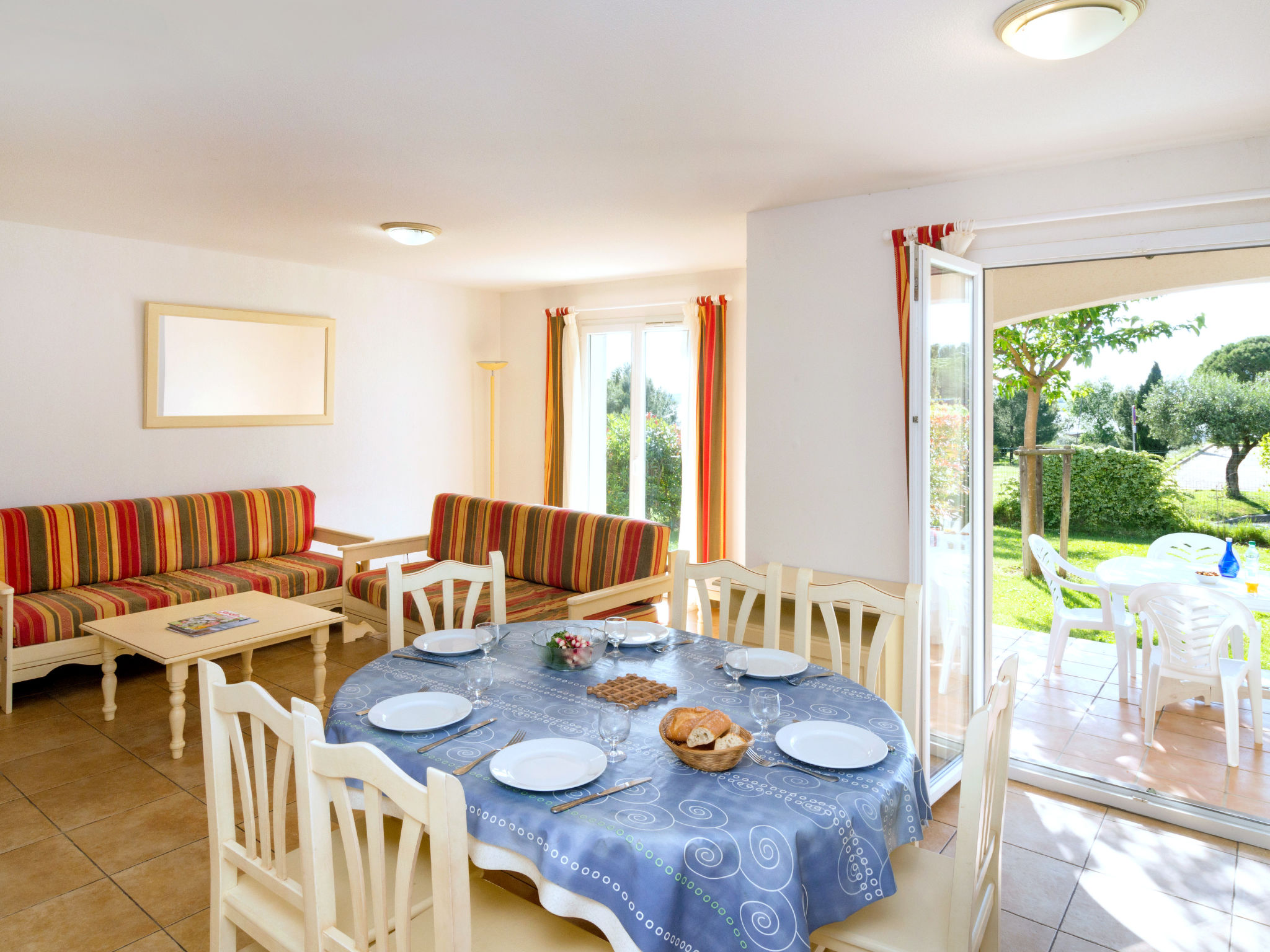 Ferienanlage "Port Minervois & Les Hauts du Lac". 145 Häuser im Ferienresort. 1 km vom Zentrum von Homps, 30 km vom Zentrum von Narbonne, 35 km vom Zentrum von Carcassonne, 800 m vom See. Zur Mitbenutzung: 2 Schwimmbäder nierenförmig beheizt, eingezäunt (saisonale Verfügbarkeit: 04.Apr.-31.Okt.). Kinderbecken, Boccia, Kinderspielplatz. In der Anlage: Empfang, Wireless LAN, Fitnessraum, Dampfbad (extra). Sprudelbad (extra). Tischfussball, Waschmaschine, Wäschetrockner (zur Mitbenutzung, extra). Brötchenservice. Zentralparkplätze. Einkaufsgeschäft 1 km, Supermarkt 2.8 km, Kieselstrand 2 km, Badesee "Lac de Jouarres" 800 m. Das Foto ist nur ein Wohnungsbeispiel. Die Mietobjekte können sich in Wohnfläche, Raumaufteilung, Ausstattung und Einrichtung unterscheiden.