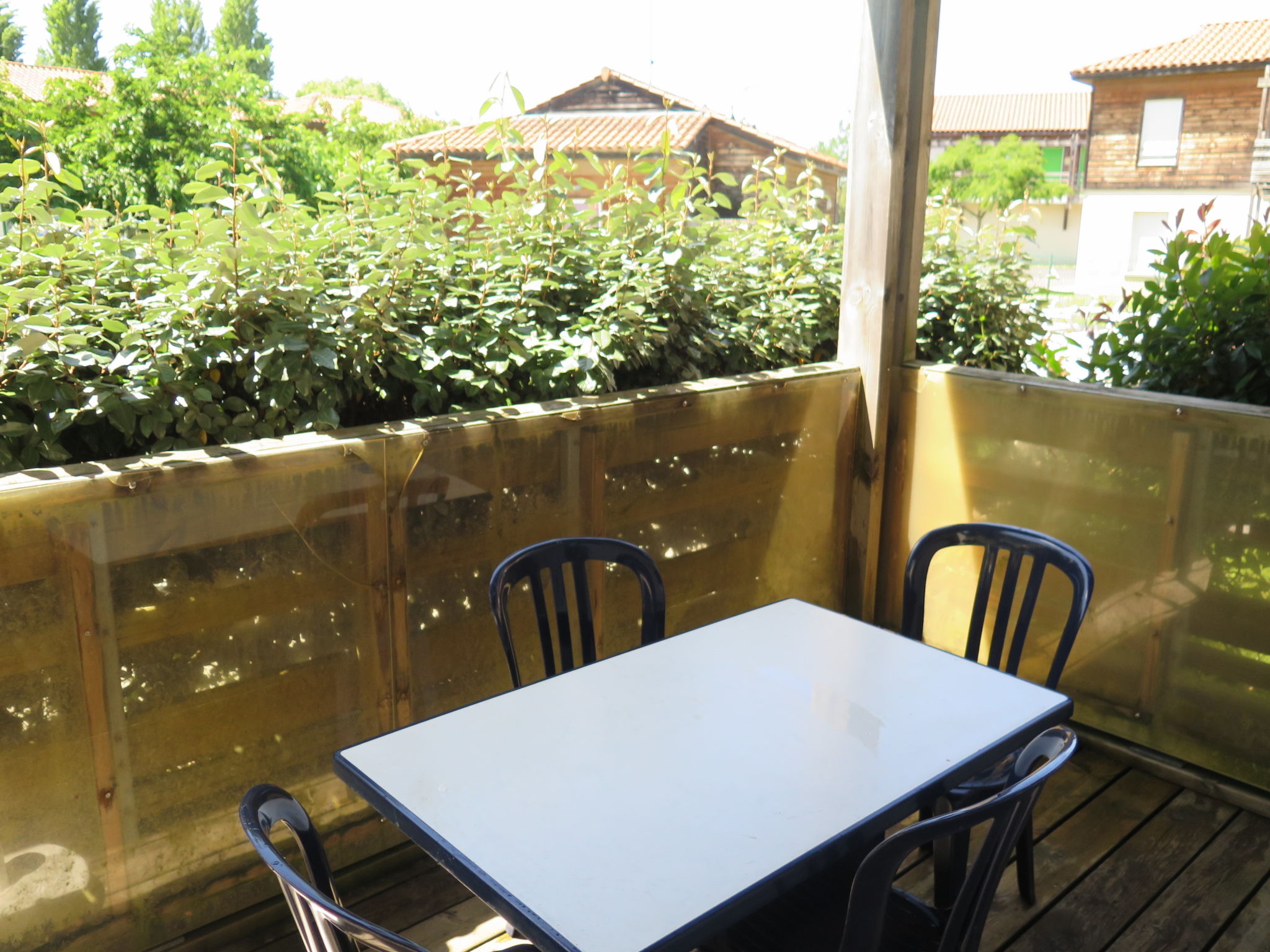 Ferienanlage "Les Terrasses du Lac", auf 2 Stockwerken. 70 Wohnungen in der Residenz. 4 km vom Zentrum von Mimizan, 40 km vom Zentrum von Biscarosse, 110 km vom Zentrum von Bordeaux, 10 km vom Meer, 50 m vom See, im Grünen. Zur Mitbenutzung: Grundstück, Schwimmbad beheizt (15 x 7 m, saisonale Verfügbarkeit: 01.Jul.-31.Aug.). Kinderbecken. In der Anlage: Empfang, Tischtennis, Billard, Tischfussball, Einstellraum für Fahrräder, Waschmaschine, Wäschetrockner (zur Mitbenutzung, extra). Supermarkt 3 km, Sandstrand 10 km, Kieselstrand "Étang d'Aureilhan" 50 m. Radweg 300 m. Bitte beachten: kein Fahrstuhl vorhanden. Das Foto ist nur ein Wohnungsbeispiel. Die Mietobjekte können sich in Wohnfläche, Raumaufteilung, Ausstattung und Einrichtung unterscheiden.