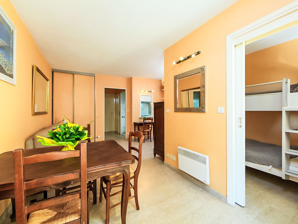 2-Zimmer-Wohnung 30 m2 im 2. Stock. Einfach eingerichtet: Wohn-/Esszimmer mit 1 Doppeldiwanbett (140 cm, Länge 200 cm), TV. Ausgang zur Terrasse. Kabine 4 m2 mit Schiebetür mit 1 x 2 Etagenbetten (80 cm, Länge 190 cm). Kochnische (4 Kochplatten, Geschirrspüler, Kombinationsmikrowelle) mit Durchreiche. Dusche, sep. WC. E-Heizung. Terrasse 10 m2 teilweise überdacht, Ostlage. Terrassenmöbel. Zur Verfügung: Internet (Wireless LAN, extra). Parkplatz. Bitte beachten: Rauchmelder. Inserat einer Privatperson nach Artikel 155, IV, CGI. 06029004158HT