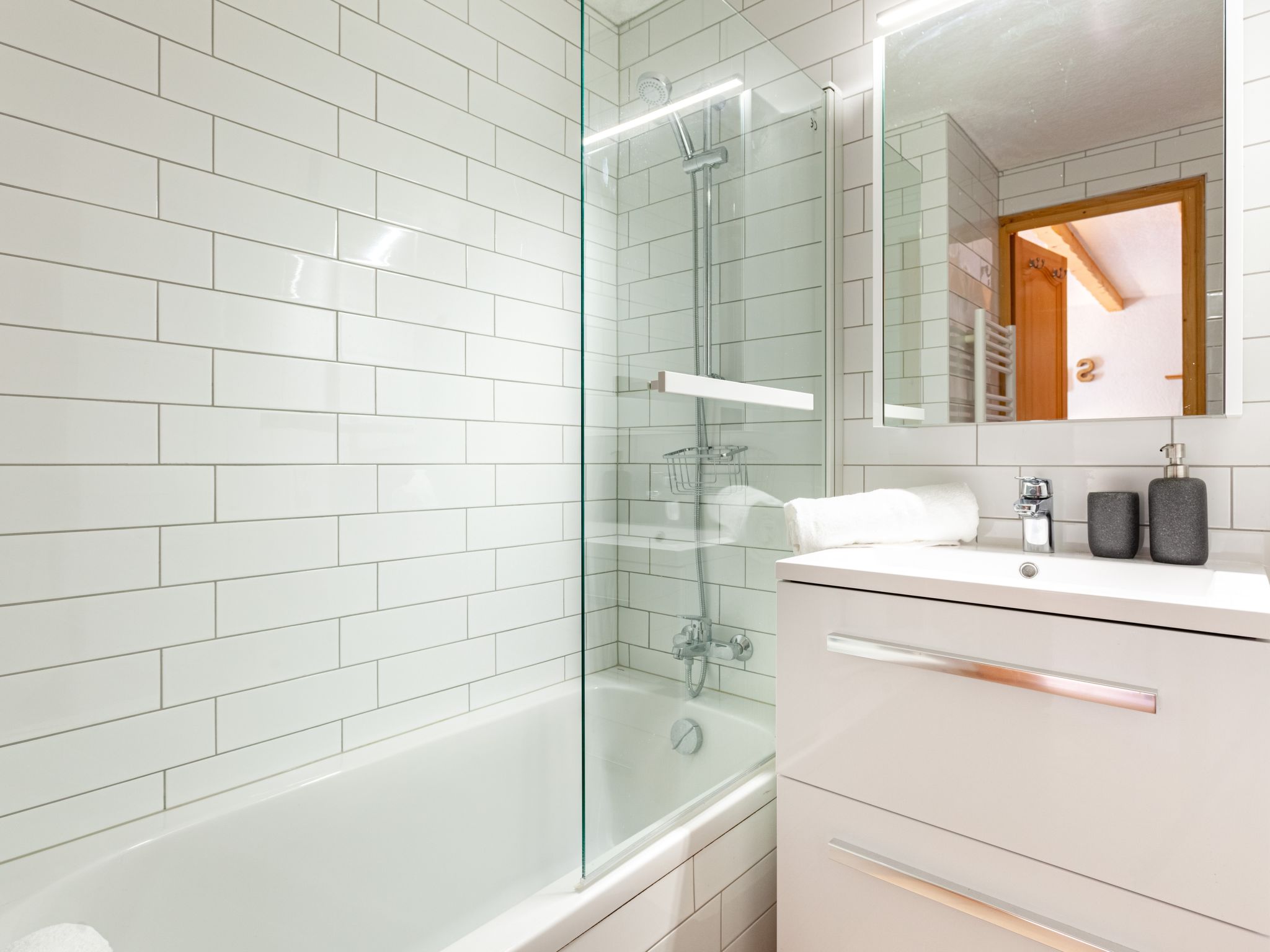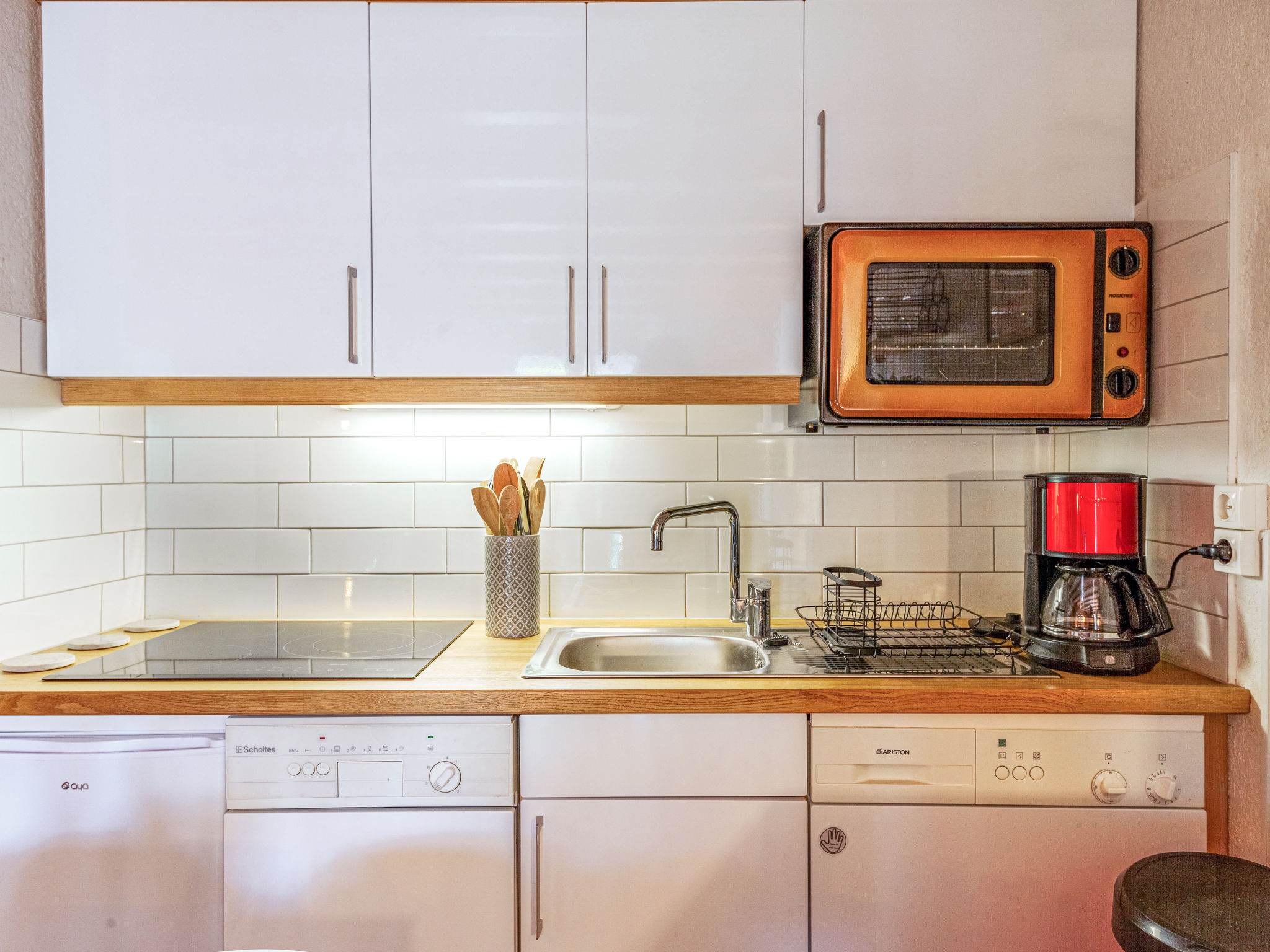 3-Zimmer-Wohnung 35 m2 im 1. Stock. Schön eingerichtet: Wohn-/Esszimmer mit TV. Ausgang zum Balkon. 1 Zimmer mit 1 franz. Bett (140 cm, Länge 190 cm). Kabine mit 1 x 2 Etagenbetten (80 cm, Länge 190 cm). Offene Küche (4 Kochplatten, Backofen, Geschirrspüler, Toaster, Wasserkocher, elektrische Kaffeemaschine, Kombinationsmikrowelle). Bad/WC. E-Heizung. Balkon, Westlage. Balkonmöbel. Zur Verfügung: Waschmaschine. Internet (Wireless LAN, gratis). Garage Nr. 22. Bitte beachten: Nichtraucher-Unterkunft. TV nur FR. Kein Fahrstuhl.