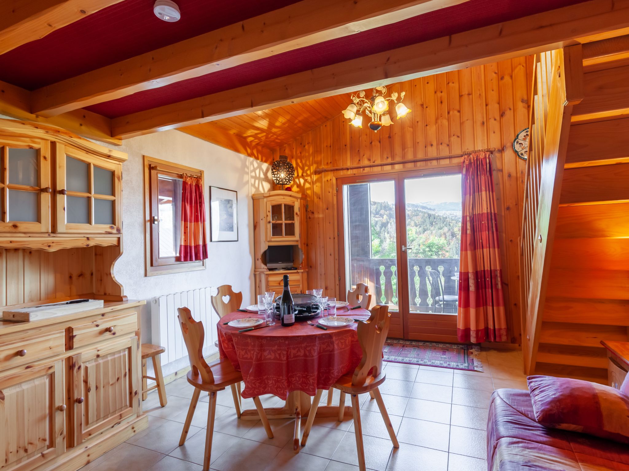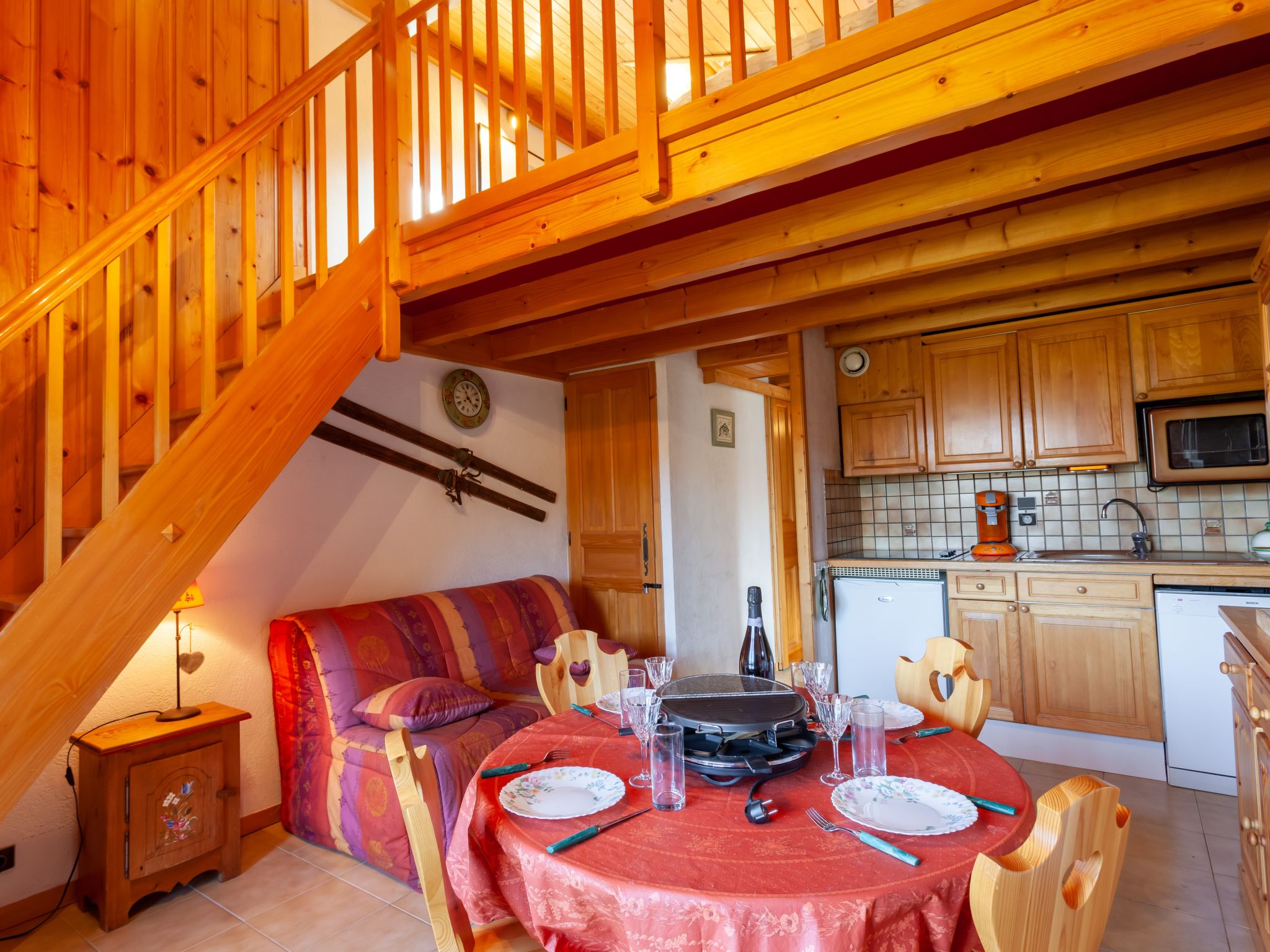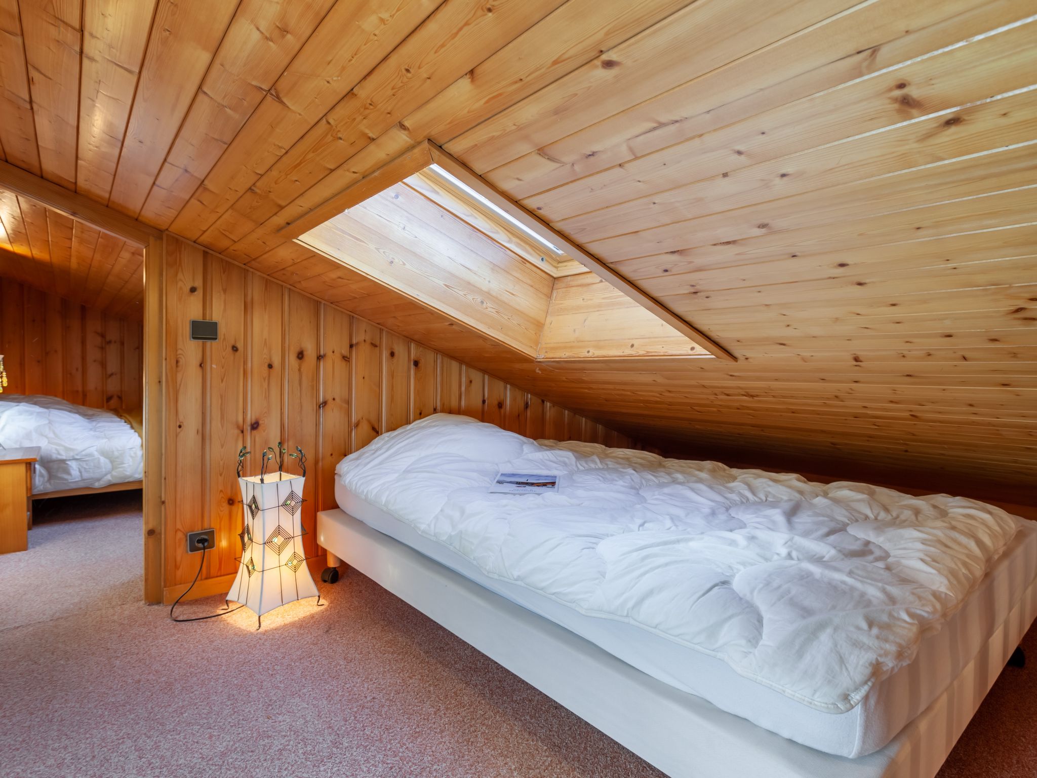 1-Zimmer-Studio 35 m2 auf 2 Stockwerken im 3. Stock. Wohn-/Esszimmer mit TV. Ausgang zum Balkon. Kabine mit 1 x 2 Etagenbetten (80 cm, Länge 190 cm). Offene Küche (4 Kochplatten, Backofen, Geschirrspüler, Toaster, Wasserkocher, elektrische Kaffeemaschine, Kapseln für die Kaffeemaschine (senseo) extra, Racletteofen). Bad, sep. WC. E-Heizung, Boiler. Obergeschoss: abgeschrägtes, offenes, verbundenes Zimmer, Deckenhöhe 50 - 130 cm, niedrige Türrahmen, Höhe 130 cm mit 1 franz. Bett (140 cm, Länge 190 cm). Abgeschrägtes, verbundenes Zimmer, Deckenhöhe 50 - 130 cm mit 2 Betten (80 cm, Länge 190 cm). Balkon 9 m2, Westlage. Balkonmöbel. Schöne Sicht auf die Berge und das Tal. Zur Verfügung: Waschmaschine. Internet (Wireless LAN, extra). Parkplatz. Bitte beachten: TV nur FR. Kein Fahrstuhl.