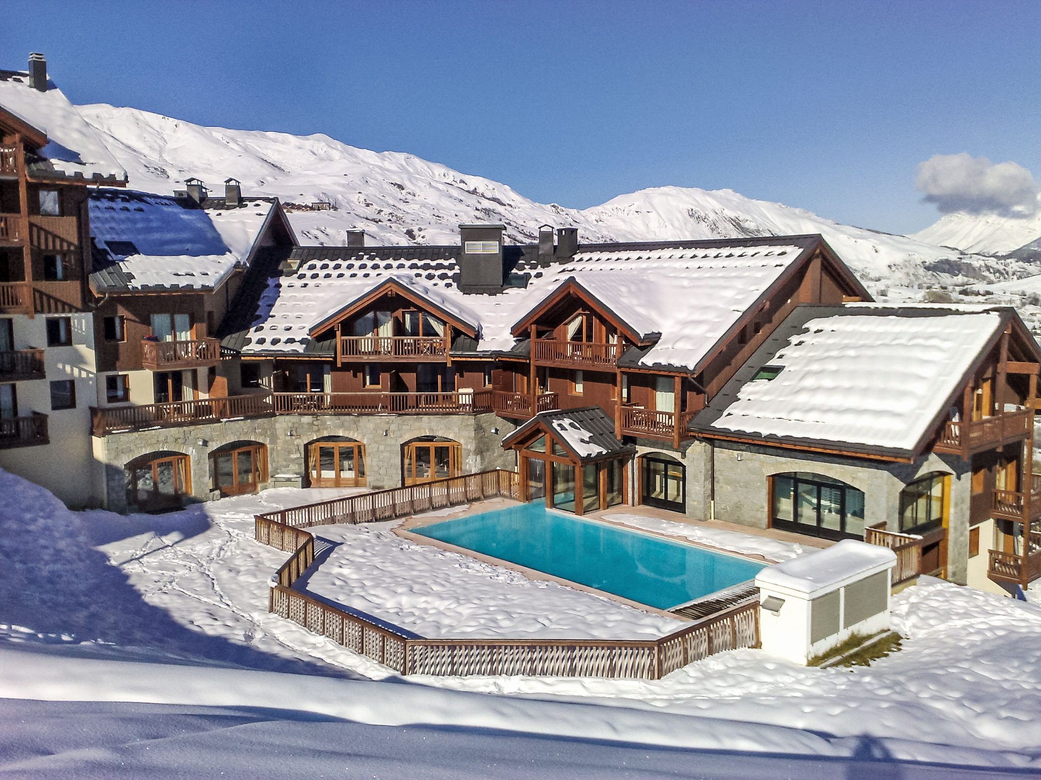 Schöne Residenz "LES ALPAGES DU CORBIER", auf 8 Stockwerken, Baujahr 2007. Unterhalb von la station du Corbier, 700 m vom Zentrum, 50 m vom Skigebiet. Zur Mitbenutzung: Schwimmbad eckig beheizt (5 x 10 m, 150 cm tief, saisonale Verfügbarkeit: 18.Dez.-16.Apr. und 04.Jul.-27.Aug. Öffnungszeiten Schwimmbad: 10:30-19:00). Dusche/WC im Poolbereich. In der Anlage: Restaurant, Bar, Frühstücksraum, Sauna, Fitnessraum, Fahrstuhl, Skiraum, Waschmaschine, Wäschetrockner (zur Mitbenutzung, extra). 50 m lange steile, schmale Zufahrt. Im Winter bitte Schneeketten mitbringen. Öffentliche Parkplätze 150 m. Einkaufsgeschäft 550 m, Lebensmittelgeschäft 100 m, Restaurant, Bar 600 m, Bushaltestelle "St Jean de Maurienne" 700 m. Skilift, Sessellift, Skisportanlagen, Skipisten 100 m, Skibushaltestelle 50 m, Skischule 600 m, Ski-Kindergarten 300 m, Schlittelbahn 600 m. Bitte beachten: Gratis Skibus. Bei guter Schneelage Zufahrt mit den Skiern bis zum Haus.