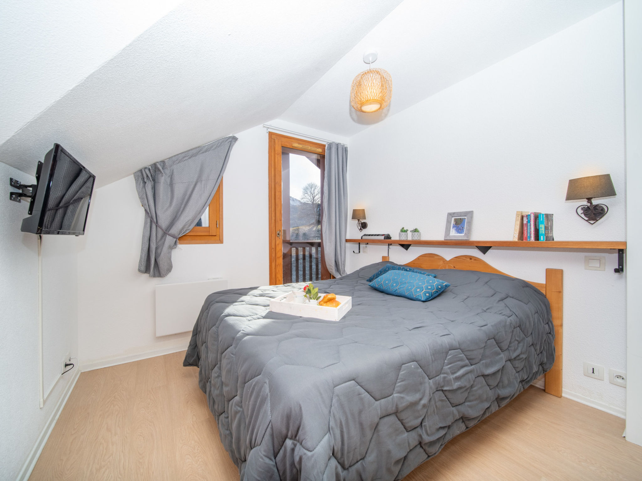 4-Zimmer-Wohnung 58 m2 im 2. Stock, Südostlage. Schön und gemütlich eingerichtet: Wohn-/Esszimmer mit 1 Ausziehbett (2 Pers. 2 x 80 cm, Länge 190 cm), TV (Flachbildschirm). Ausgang zum Balkon. 1 Zimmer mit 1 franz. Bett (140 cm, Länge 190 cm). Ausgang zum Balkon. 1 Zimmer mit 1 x 2 Etagenbetten (80 cm, Länge 190 cm). Ausgang zum Balkon. 1 abgeschrägtes Zimmer mit 2 Betten (80 cm, Länge 190 cm). Offene Küche (Geschirrspüler, 4 Glaskeramikherd Platten, Toaster, Wasserkocher, Mikrowelle, elektrische Kaffeemaschine). Bad, Dusche, sep. WC. E-Heizung. Grosser Balkon. Balkonmöbel, Liegestühle (2). Sehr schöne Sicht auf die Berge, das Tal und das Schwimmbad. Zur Verfügung: Haartrockner. Internet (Wireless LAN, extra). Parkplatz Nr. 157 (überdacht), Höhe 195 cm. Bitte beachten: Nichtraucher-Unterkunft. Rauchmelder. Gemeinschaftspool steht zur alleinigen Nutzung zur Verfügung.
