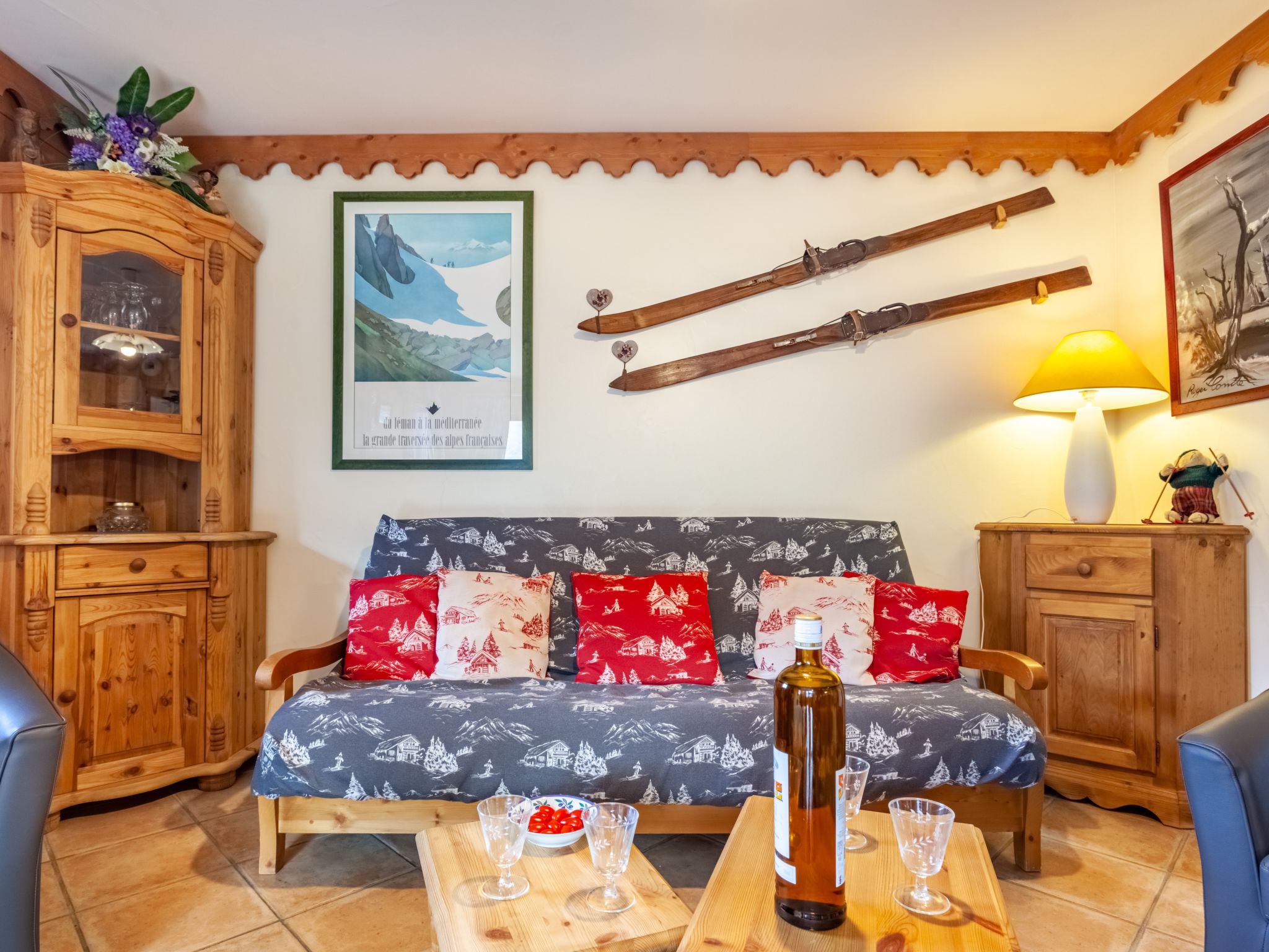 4-Zimmer-Wohnung 68 m2, im erhöhten Erdgeschoss. Hell, sehr komfortabel und schön eingerichtet: grosses Wohn-/Esszimmer mit TV (Flachbildschirm). Ausgang zum Balkon, Richtung Süden und Richtung Westen. 1 kleines Zimmer mit 1 Bett (120 cm, Länge 190 cm), 1 Schlafmöglichkeit (80 cm, Länge 190 cm). 1 Zimmer mit 1 Doppelbett (140 cm, Länge 190 cm), Dusche/WC. 1 Zimmer mit 1 x 2 Etagenbetten (80 cm, Länge 190 cm), 1 Schlafmöglichkeit (80 cm, Länge 190 cm). Offene Küche (Backofen, Geschirrspüler, 4 Glaskeramikherd Platten, Toaster, Wasserkocher, Mikrowelle, elektrische Kaffeemaschine, Racletteofen, Fondue Set (Käse)). Bad, sep. WC. Grosser Balkon, Südlage und Westlage. Sehr schöne Sicht auf die Berge und das Tal. Zur Verfügung: Internet (Wireless LAN, extra). Parkplatz (überdacht, 1 Auto). Bitte beachten: Rauchmelder.
