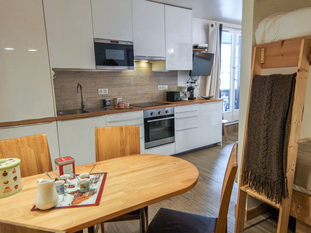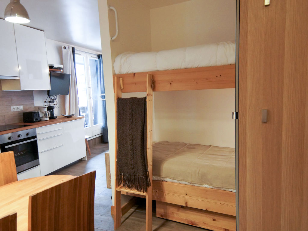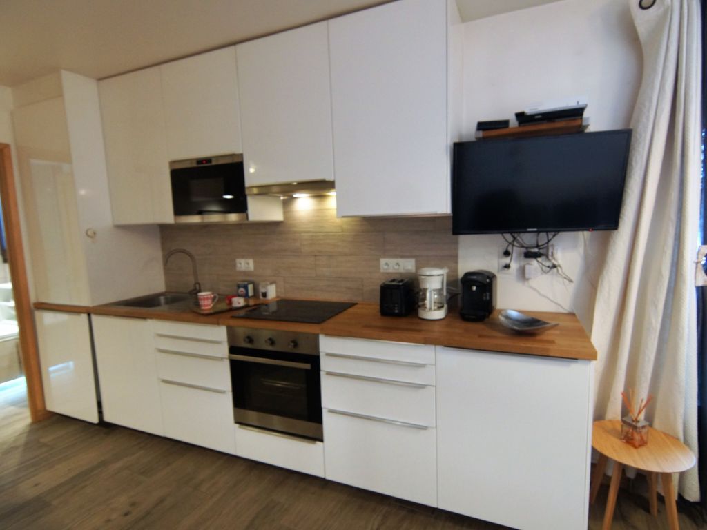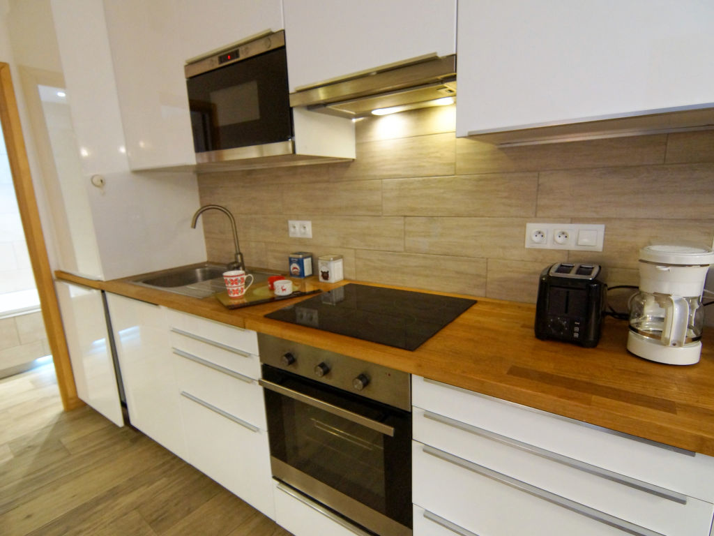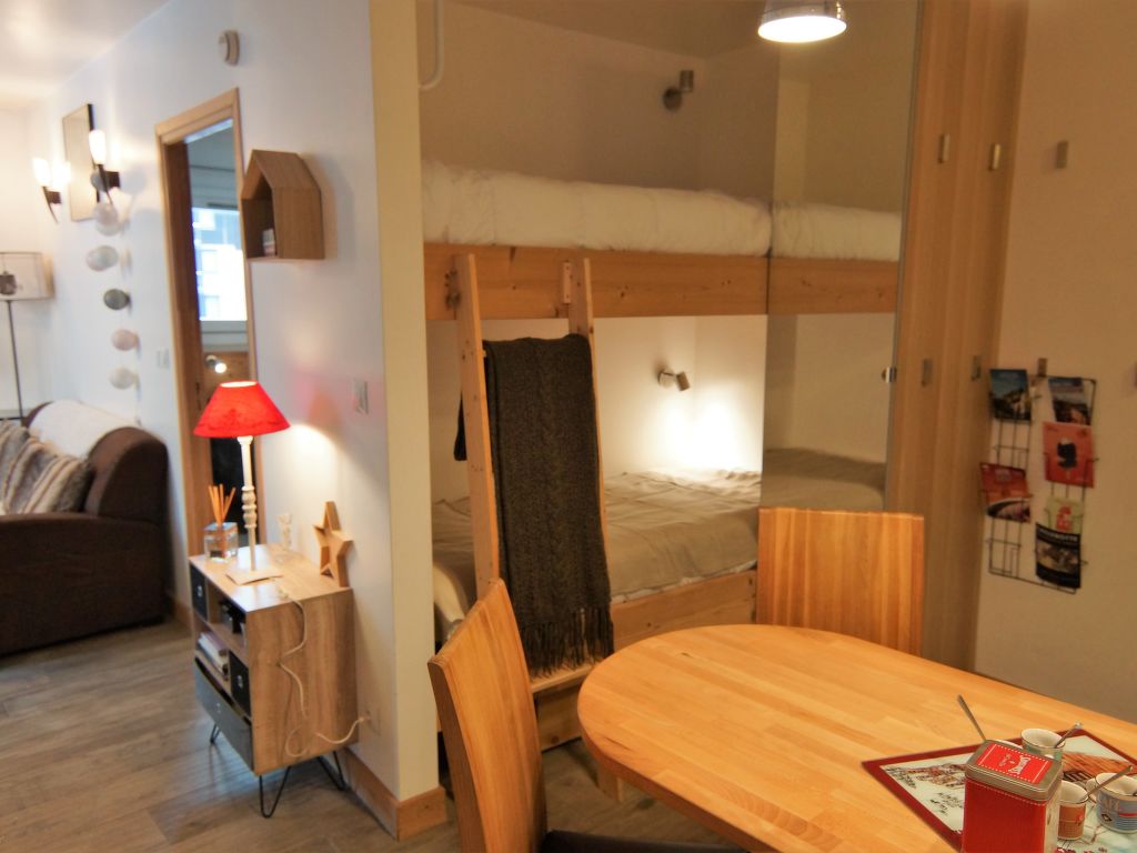 2-Zimmer-Wohnung 30 m2 im 3. Stock. Wohn-/Esszimmer mit 1 x 2 Etagenbetten (90 cm, Länge 190 cm), TV (Flachbildschirm). Ausgang zum Balkon. 1 Zimmer mit 1 franz. Bett (140 cm, Länge 190 cm). Offene Küche (Backofen, Geschirrspüler, 4 Glaskeramikherd Platten, Toaster, Wasserkocher, Mikrowelle, elektrische Kaffeemaschine, Kapseln für die Kaffeemaschine (Tassimo) extra). Bad, sep. WC. E-Heizung. Balkon 3 m2, Südlage. Sehr schöne Sicht auf die Berge. Zur Verfügung: Internet (Wireless LAN, gratis). Bitte beachten: Nichtraucher-Unterkunft. 1 Haustier/Hund erlaubt. Rauchmelder.