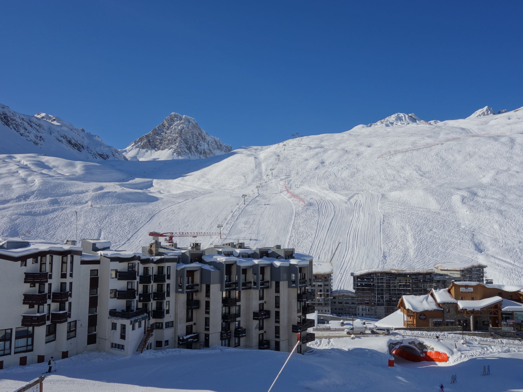 Val Claret: Residenz "Les Hauts du Val Claret". 10 m vom Skigebiet. In der Anlage: Fahrstuhl, Skiraum, Zentralheizung. Lebensmittelgeschäft, Supermarkt, Einkaufszentrum 100 m, Restaurant 10 m, Bäckerei 50 m, Hallenbad 800 m. Sportzentrum 800 m, Sessellift, Skisportanlagen, Skipisten 10 m, Skiverleih 20 m, Skischule 10 m, Eisfeld 800 m. Bekannte Skigebiete sind gut erreichbar: Espace Killy. Bekannte Seen in der Umgebung sind gut erreichbar: le Lac du Chevril 800 m. Bitte beachten: Gratis Skibus. In diesem Haus sind weitere Ferienwohnungen mietbar.