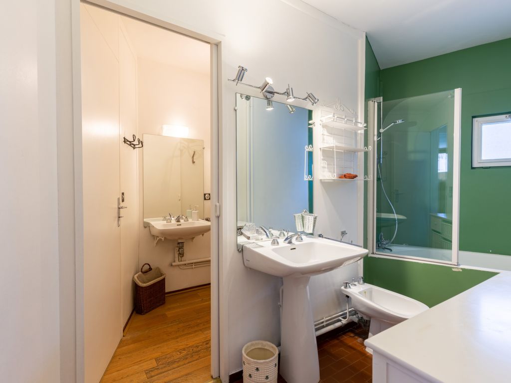 2-Zimmer-Wohnung 54 m2 im 1. Stock. Grosses Wohn-/Esszimmer mit 1 Doppeldiwanbett (140 cm, Länge 190 cm), TV (Flachbildschirm). Ausgang zum Balkon. 1 grosses Zimmer mit 1 franz. Bett (140 cm, Länge 190 cm). Küche (Backofen, Geschirrspüler, 4 Glaskeramikherd Platten, Wasserkocher, elektrische Kaffeemaschine, Kapseln für die Kaffeemaschine (Nespresso) extra). Bad, sep. WC. Balkon, Südlage. Sehr schöne Sicht auf die Berge und das Schwimmbad. Zur Verfügung: Waschmaschine. Internet (Wireless LAN, extra). Parkplatz. Bitte beachten: Nichtraucher-Unterkunft. TV nur FR. Rauchmelder.