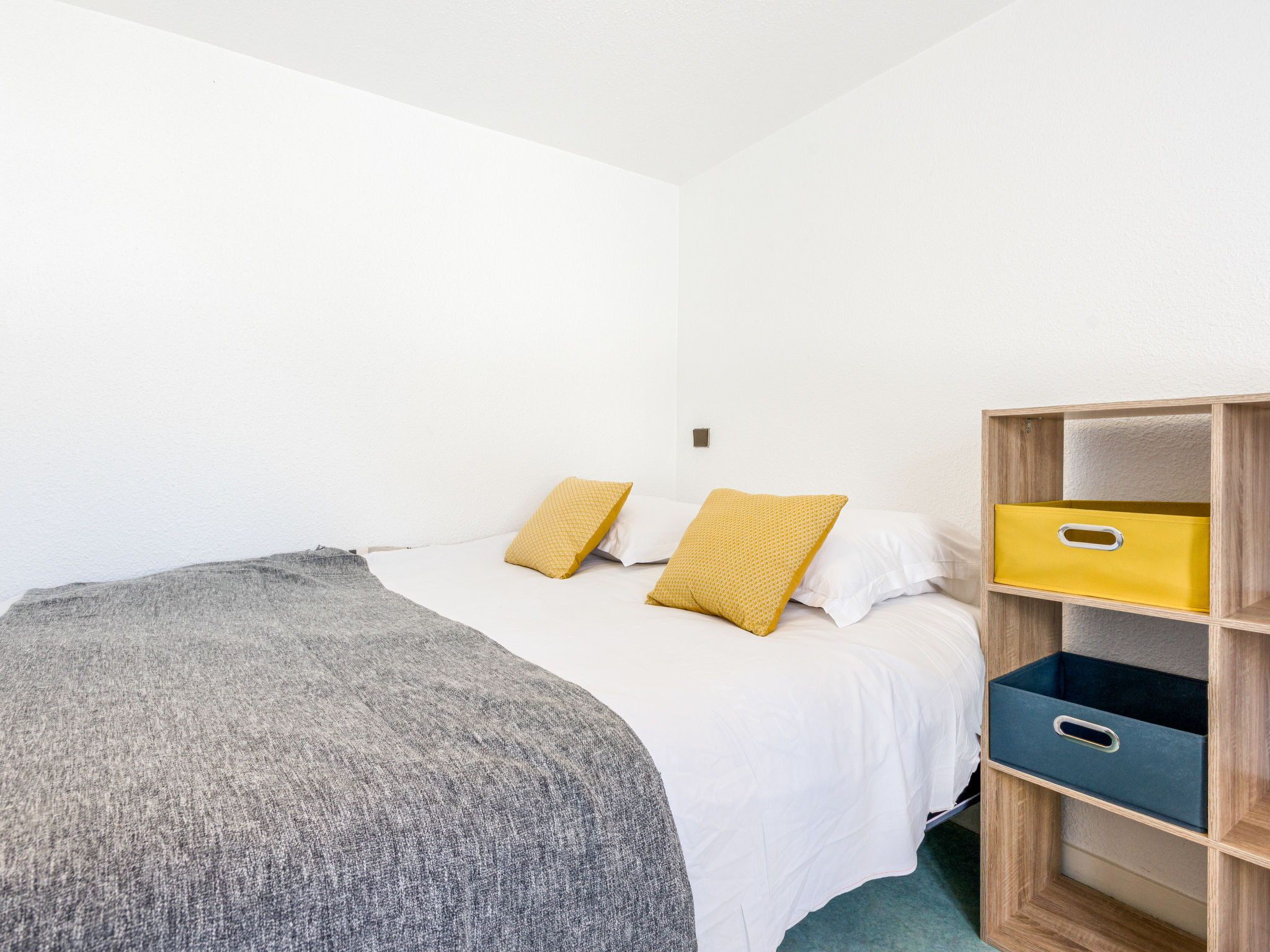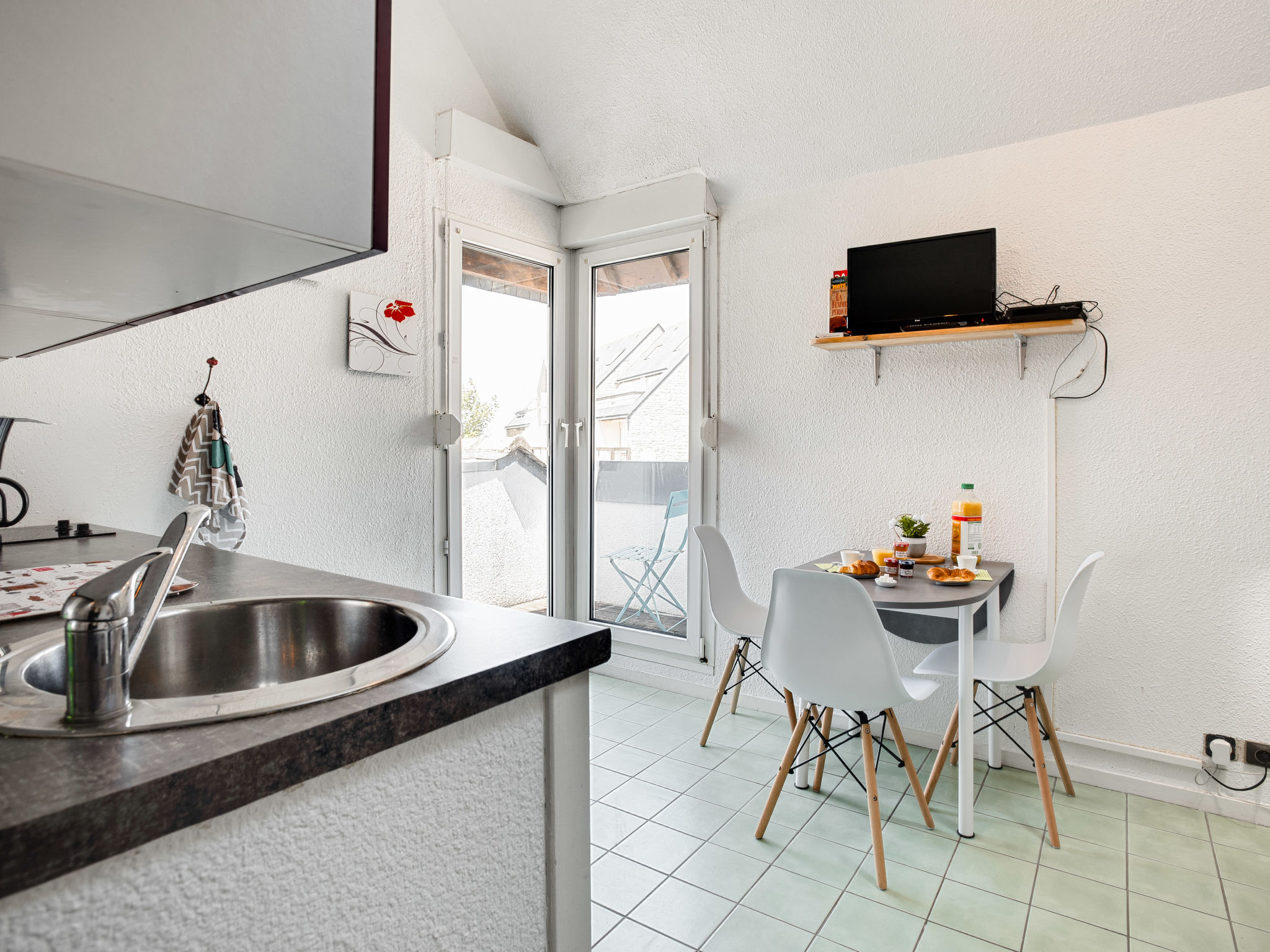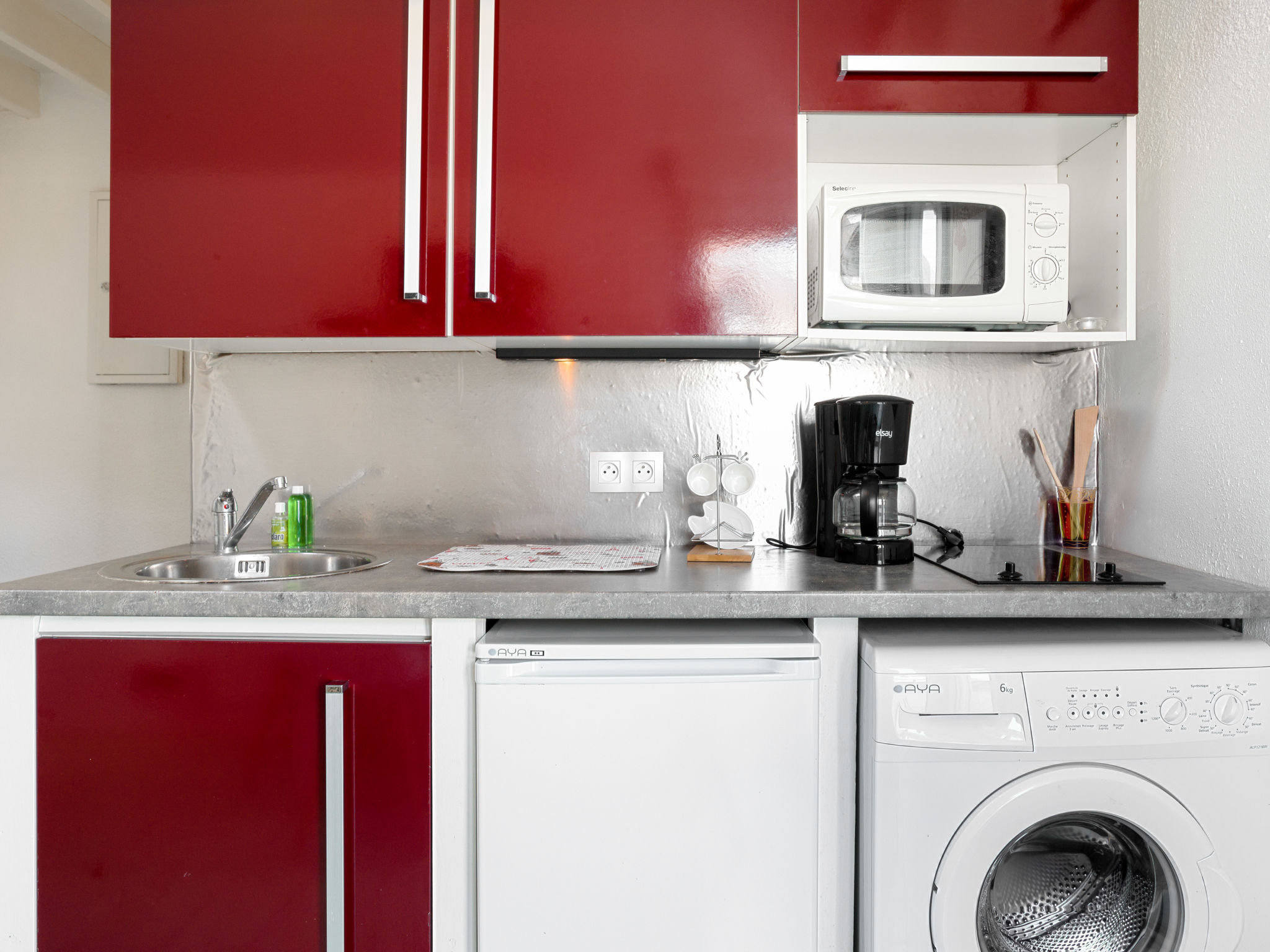 1-Zimmer-Studio 20 m2 im 1. Stock. Wohn-/Esszimmer mit TV (Flachbildschirm). Ausgang zum Balkon. Kochnische (Backofen, 2 Glaskeramikherd Platten, Mikrowelle, elektrische Kaffeemaschine). Dusche/WC. E-Heizung. Obergeschoss: (steile Treppe) 1 abgeschrägtes Zimmer mit 1 franz. Bett (1 x 140 cm, Länge 190 cm). Zur Verfügung: Waschmaschine. Internet (Wireless LAN, gratis). Bitte beachten: Rauchmelder. Inserat einer Privatperson nach Artikel 155, IV, CGI.