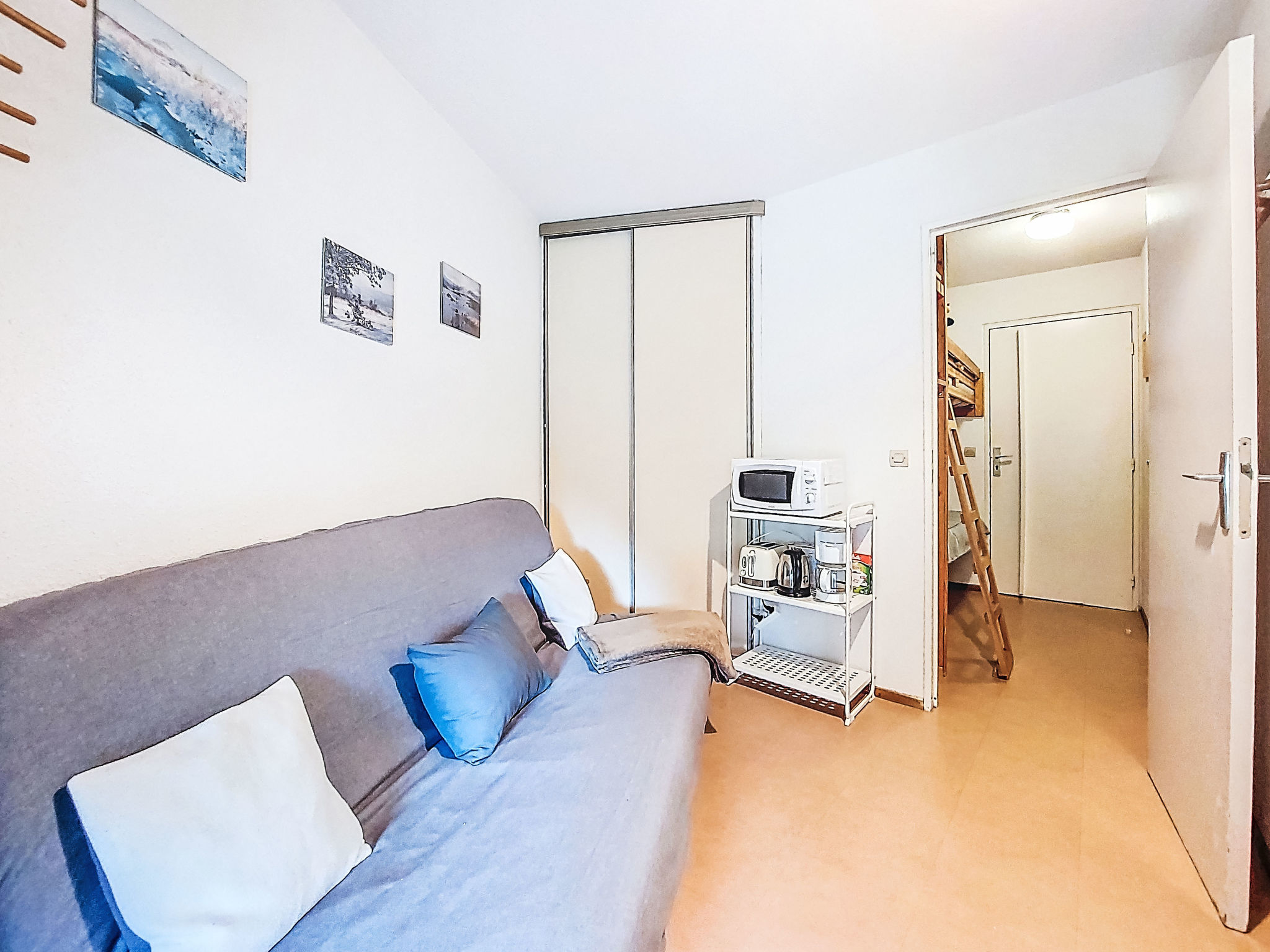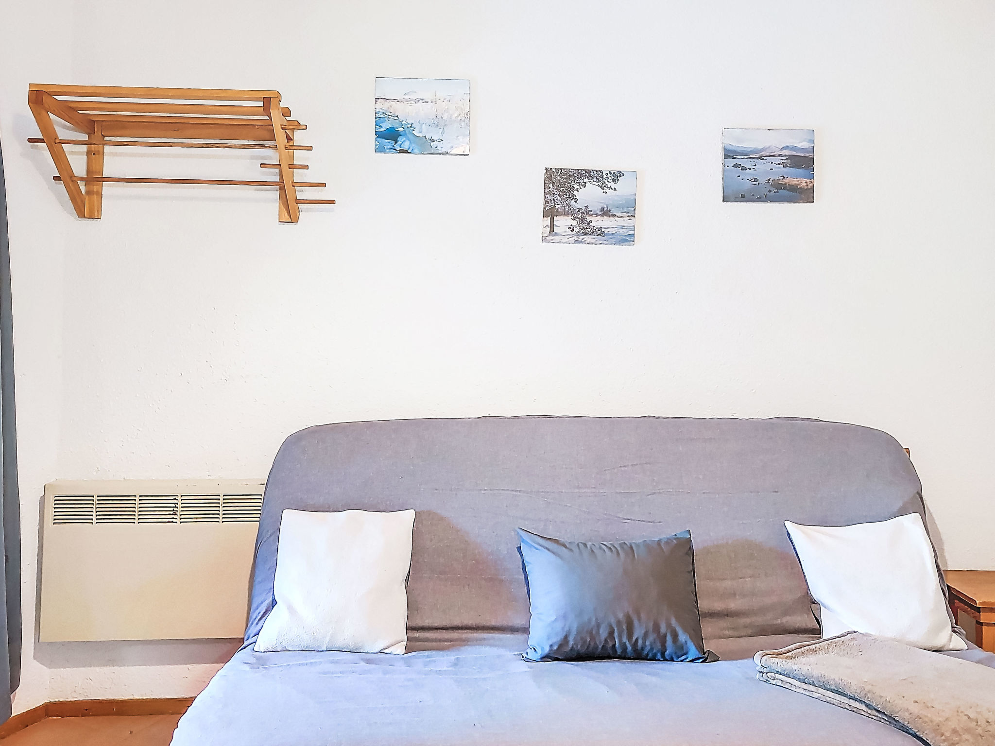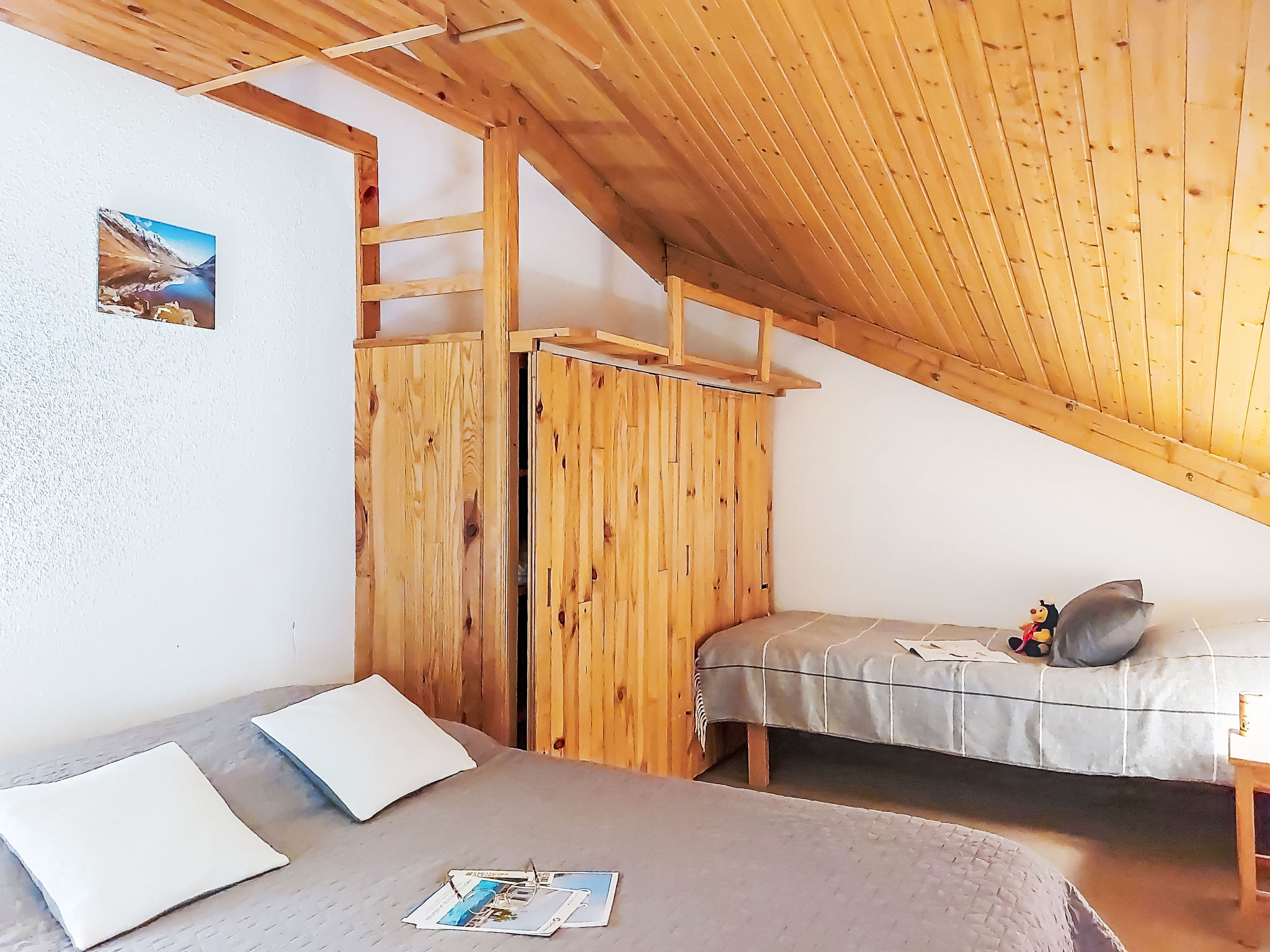 2-Zimmer-Wohnung 32 m2 im 4. Stock. Wohn-/Esszimmer mit 1 Doppeldiwanbett und TV. Ausgang zum Balkon. 1 Zimmer mit 1 franz. Bett. Eingang mit 1 x 2 Etagenbetten. Kochnische (2 Kochplatten, Backofen, Toaster, Wasserkocher, elektrische Kaffeemaschine, Kombinationsmikrowelle). Bad, sep. WC. E-Heizung. Balkon 3 m2, Südwestlage. Balkonmöbel. Sicht auf die Berge. Zur Verfügung: Babybett. Internet (Wireless LAN, extra). Bitte beachten: TV nur FR. Rauchmelder. Gebäude F. Inserat einer Privatperson nach Artikel 155, IV, CGI.