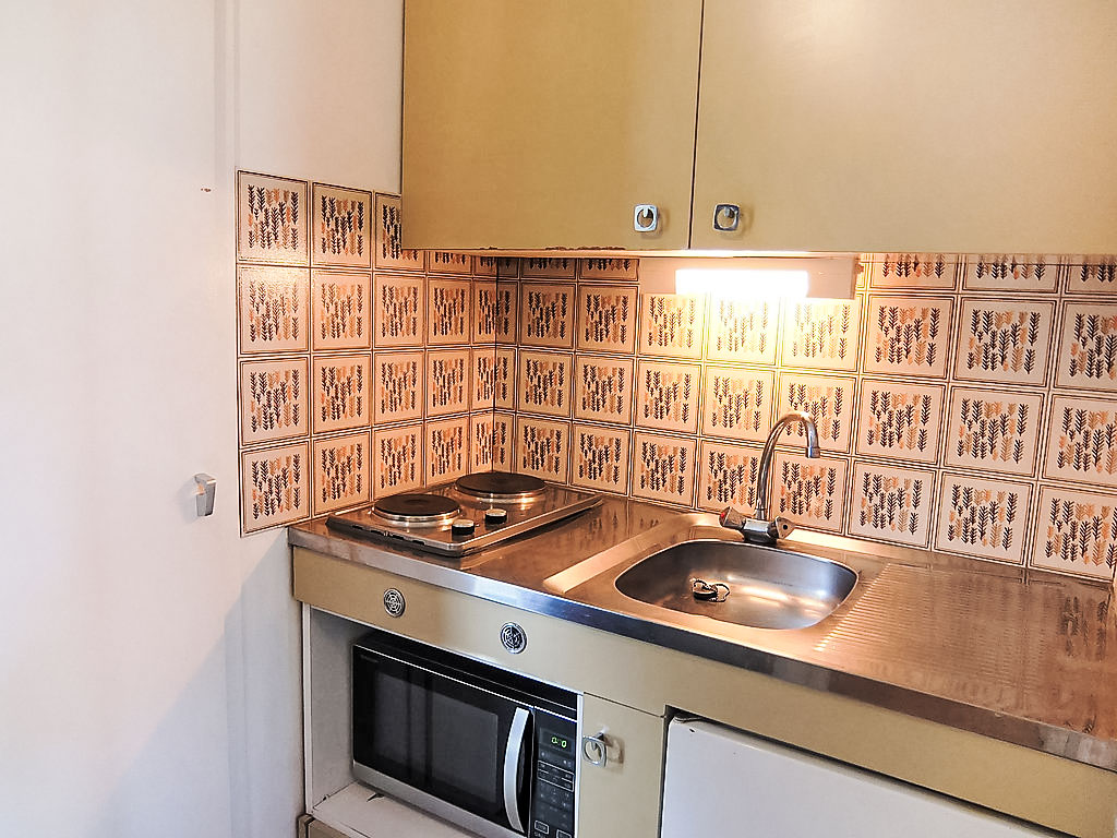 "Le Génépi 18", 1-Zimmer-Wohnung 18 m2 im 4. Stock. Wohn-/Esszimmer mit 1 Bett (80 cm, Länge 190 cm), 1 Doppeldiwanbett (140 cm, Länge 190 cm), TV (Flachbildschirm), elektrischem Rollladen. Ausgang zum Balkon. Kochnische im Eingang (Backofen, 2 Glaskeramikherd Platten, elektrische Kaffeemaschine). Dusche/WC. E-Heizung. Kleiner Balkon, Nordlage. Zur Verfügung: Internet (Wireless LAN, extra). Bitte beachten: Rauchmelder. Inserat einer Privatperson nach Artikel 155, IV, CGI.
