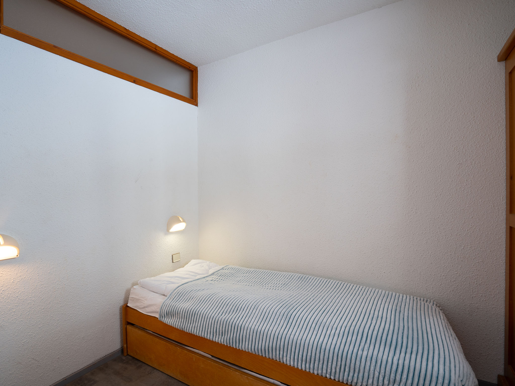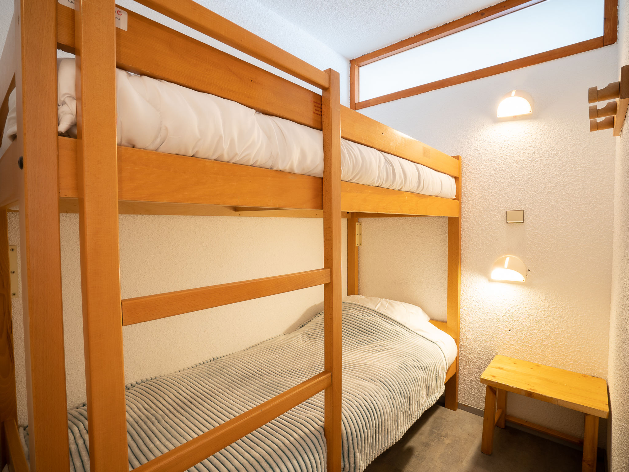 2-Zimmer-Wohnung 30 m2 im 1. Stock. Einfach und zweckmässig eingerichtet: Wohn-/Esszimmer mit 1 Ausziehbett (2 Pers. 2 x 80 cm), TV (Flachbildschirm). Ausgang zum Balkon, Richtung Süden. 1 Zimmer mit 1 Ausziehbett (2 Pers. 2 x 80 cm). Kabine mit 1 x 2 Etagenbetten (80 cm). Kochnische (2 Kochplatten, Geschirrspüler, Mikrowelle). Bad, sep. WC. Schöne Sicht auf die Berge. Zur Verfügung: Internet (Wireless LAN, extra). Bitte beachten: Nichtraucher-Unterkunft. Rauchmelder. Inserat einer Privatperson nach Artikel 155, IV, CGI.