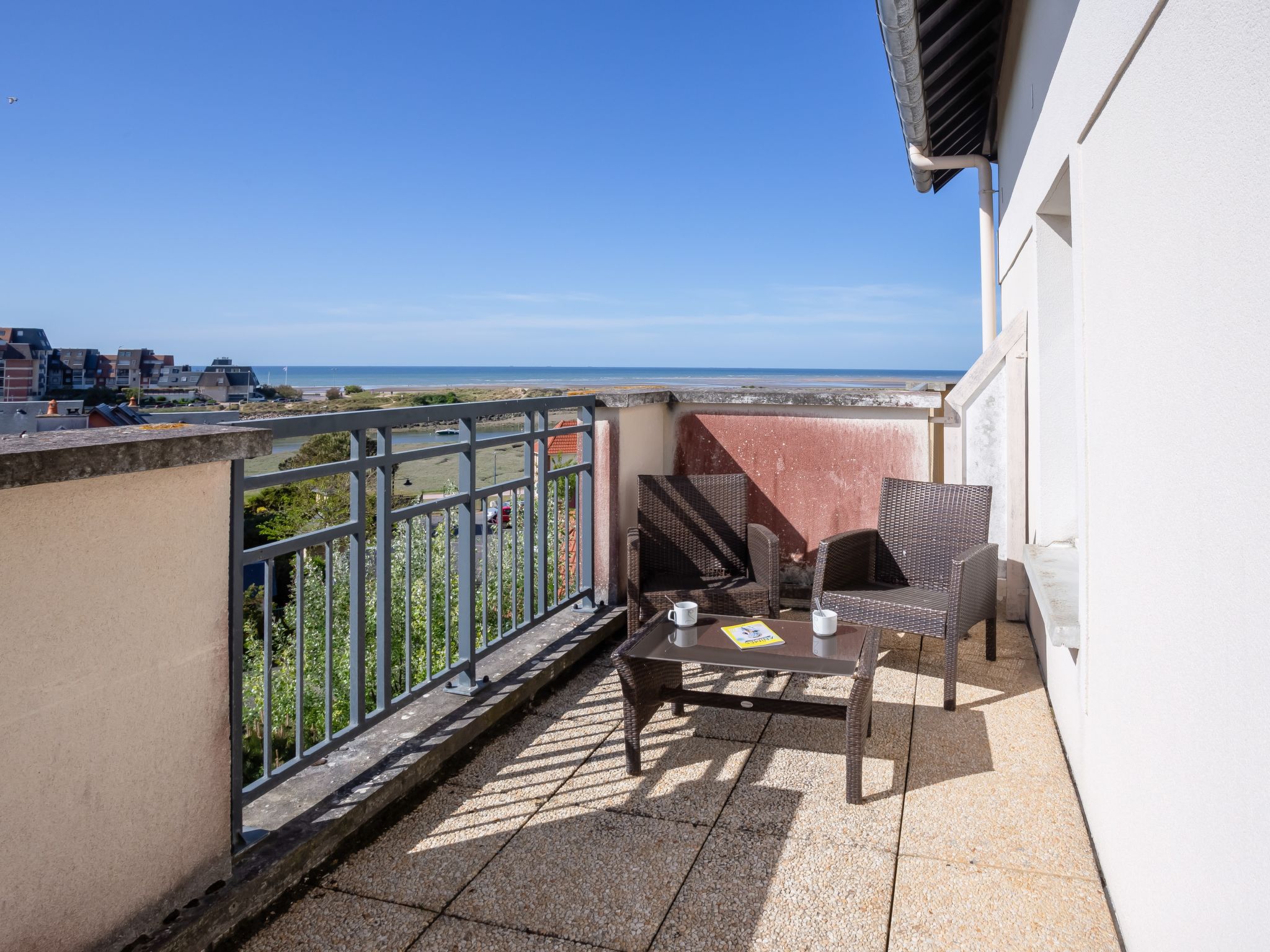3-Zimmer-Wohnung 42 m2 auf 2 Stockwerken im 2. Stock, Nordwestlage. Wohn-/Esszimmer mit 1 Ausziehbett (2 Pers. 2 x 90 cm, Länge 190 cm), TV (Flachbildschirm). Ausgang zum Balkon. Kochnische (2 Kochplatten, Geschirrspüler, Mikrowelle, elektrische Kaffeemaschine) mit Bar. Bad, sep. WC. Obergeschoss: 1 Zimmer mit 1 franz. Bett (1 x 140 cm, Länge 190 cm). 1 Zimmer mit 2 Betten (90 cm, Länge 190 cm). Balkon 3 m2, Terrasse 10 m2. Terrassenmöbel. Fernsicht auf das Meer und den Fluss. Zur Verfügung: Bügeleisen. Internet (Wireless LAN, extra). Parkplatz Nr. 02 (überdacht). Bitte beachten: Maximal 1 Haustier/Hund erlaubt. Rauchmelder. Inserat einer Privatperson nach Artikel 155, IV, CGI.