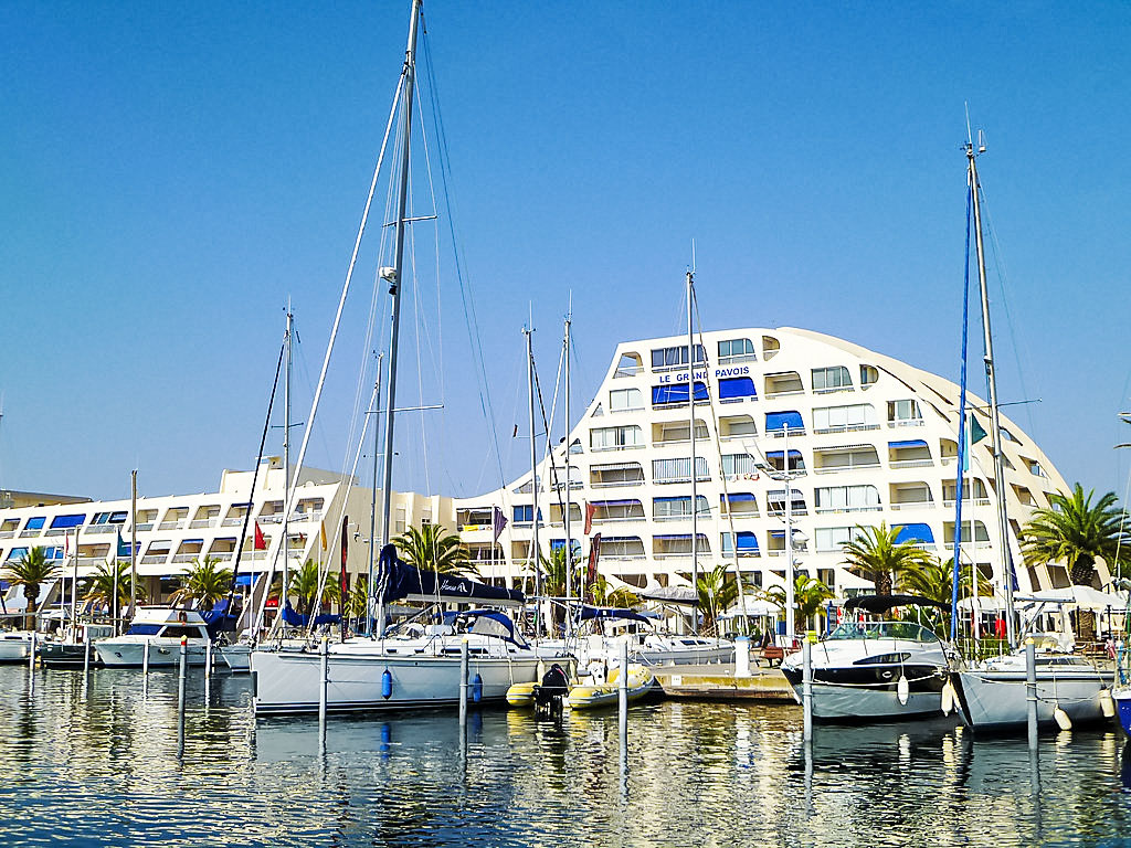 Residenz "Le Grand Pavois". Im Ort, in einem Wohnquartier, 400 m vom Meer, 400 m vom Strand. Einkaufsgeschäft 800 m, Lebensmittelgeschäft 500 m, Supermarkt 7 km, Einkaufszentrum 800 m, Restaurant 100 m, Bahnstation 3.5 km, Sandstrand "Nord" 400 m, Thermalbad "Les Bains de Camargue" 3.4 km. Sporthafen 10 m, Tennis 50 m, Minigolf 1.3 km, Reitstall 2 km. Nahe gelegene Sehenswürdigkeiten: Seaquarium 3.2 km, Casino Flamingo 3.8 km, Aigues-Mortes 8 km, La Grande-Motte 12 km, Les Saintes-Maries-de-la-Mer 37 km, Nîmes 52 km. Wandergebiete: Réserve Naturelle de Camargue. Bitte beachten: Fahrzeug empfohlen. Die Schlüsselübergabe findet bei der Agentur Port Camargue 1 km.