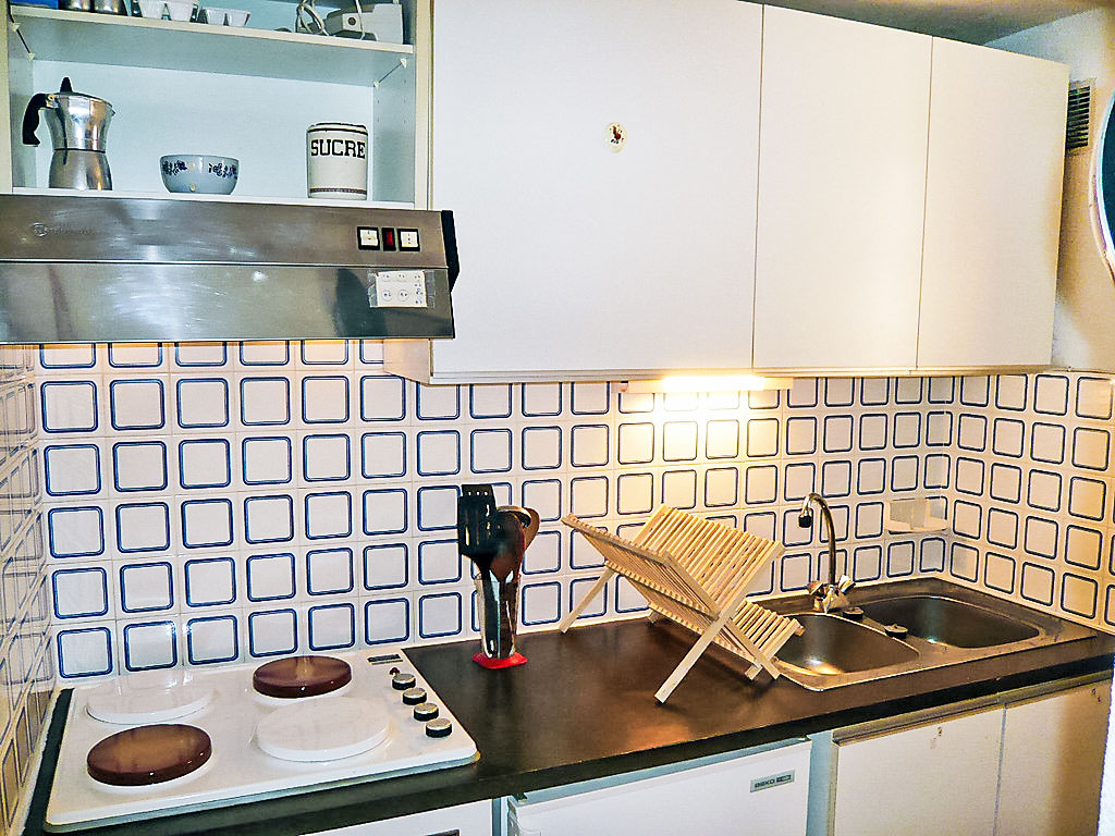 2-Zimmer-Haus 32 m2. Wohn-/Esszimmer mit 1 Doppeldiwanbett (140 cm), TV und DVD. 1 Zimmer mit 1 franz. Bett (140 cm). Offene Küche (Backofen, 3 Induktionskochplatten, Mikrowelle, Tiefkühler). Bad, sep. WC. Obergeschoss: Galerie, Deckenhöhe 150 - 180 cm, Fenster zum Hof mit 2 Betten (80 cm). Terrasse, Nordostlage. Terrassenmöbel, Gartengrill (mobil). Zur Verfügung: Internet (Wireless LAN, extra). Parkplatz. Bitte beachten: Rauchmelder. Inserat einer Privatperson nach Artikel 155, IV, CGI.