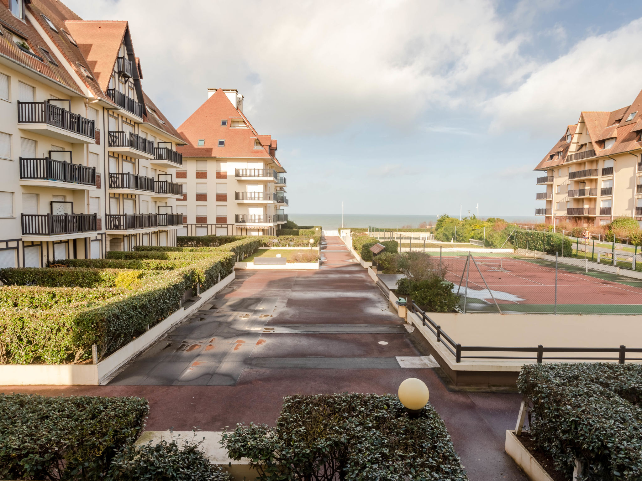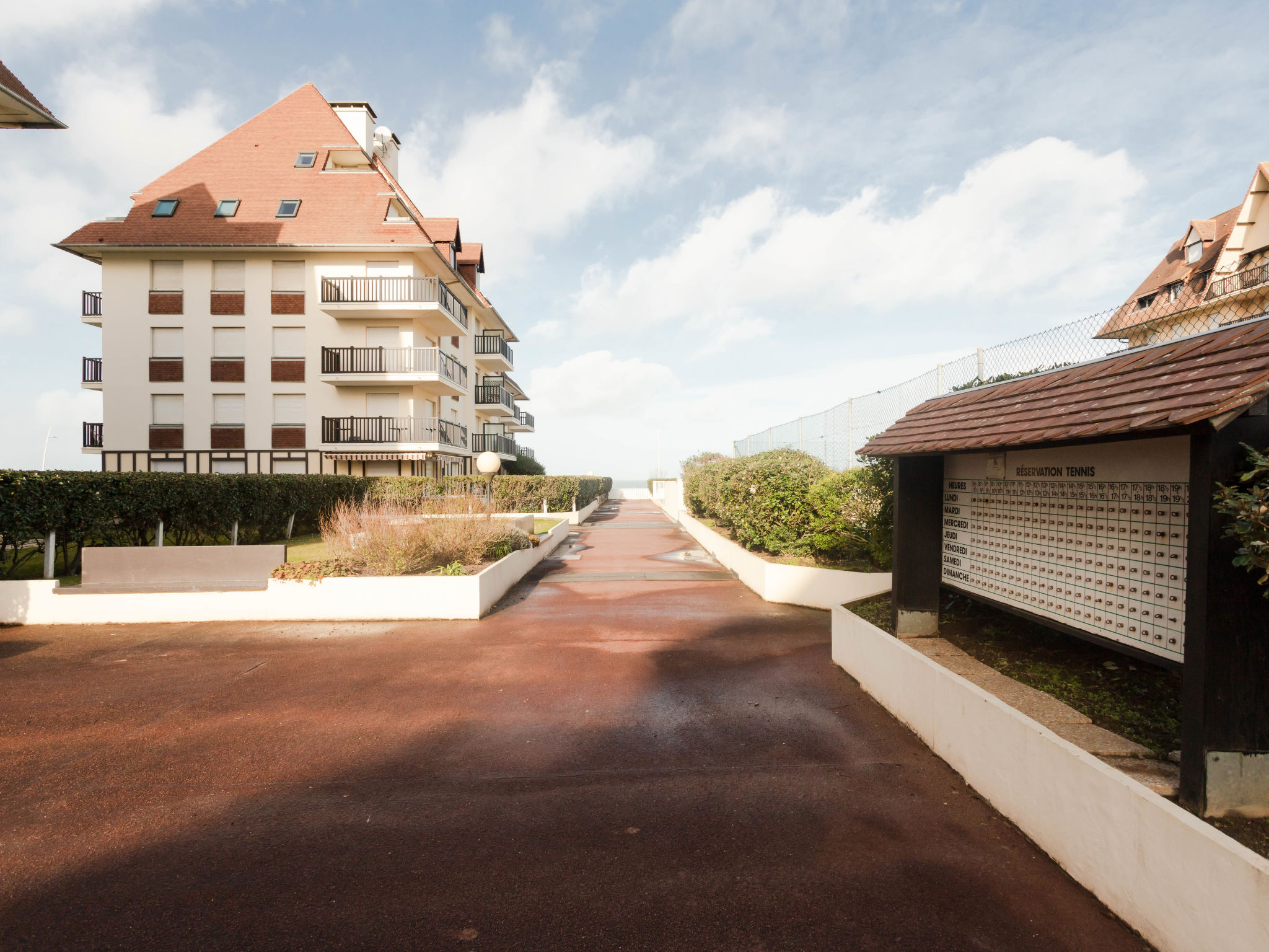 Residenz "Les Normandières", auf 5 Stockwerken. Im Ort, 2 km vom Zentrum von Cabourg, 50 m vom Meer, 50 m vom Strand, direkter Zugang zum Strand. Zur Mitbenutzung: Schwimmbad eckig beheizt, eingezäunt (12 x 6 m, 80 - 180 cm tief, saisonale Verfügbarkeit: 15.Jun.-15.Sep. Öffnungszeiten Schwimmbad: 09:00-20:00) mit Innentreppe. Aussendusche, Tennis (1 x Hartbelag). In der Anlage: Fahrstuhl. Parkplatz (beschränkte Anzahl) auf dem Grundstück, öffentliche Parkplätze auf der Strasse. Einkaufsgeschäft 1 km, Supermarkt 800 m, Restaurant 500 m, Thermalbad "thalassotérapie" 800 m. Golfplatz (18 Loch) 1.2 km. Bitte beachten: In diesem Haus sind weitere Ferienwohnungen mietbar.