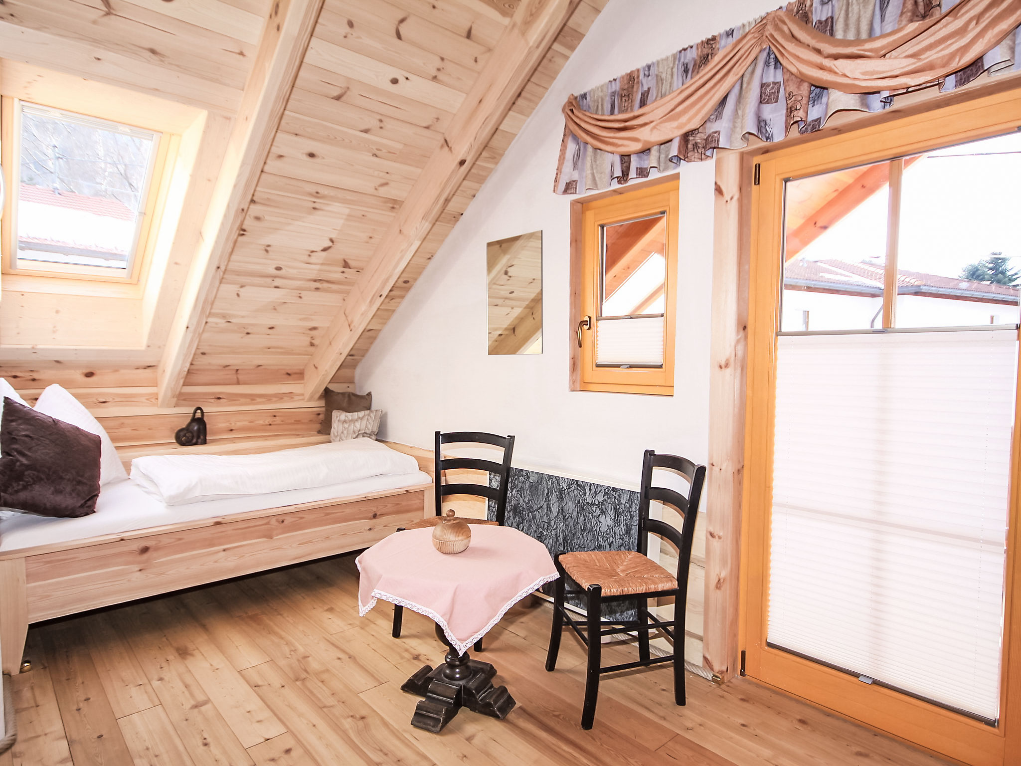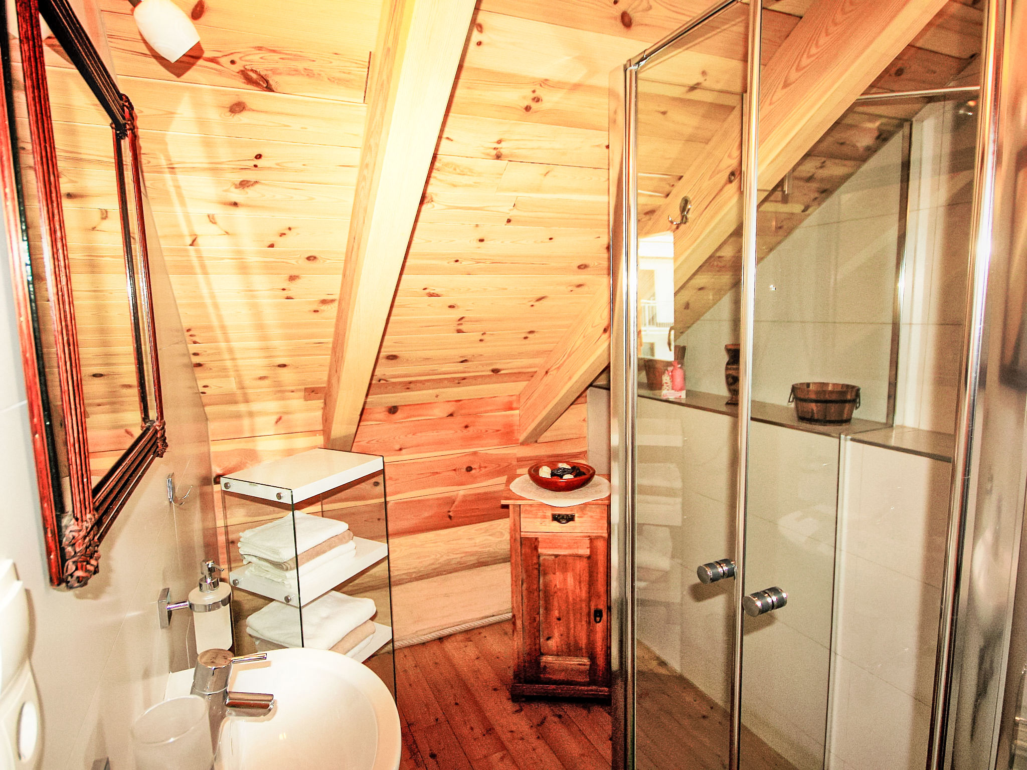 4-Zimmer-Chalet 120 m2 auf 2 Stockwerken. Romantisch und mit viel Holz eingerichtet: Eingang. Wohn-/Esszimmer mit Kabel-TV (Flachbildschirm), Stereoanlage, DVD und Holzofen. Ausgang zur Terrasse. Grosse, offene Küche (Backofen, Geschirrspüler, 4 Glaskeramikherd Platten, Mikrowelle, Tiefkühler, elektrische Kaffeemaschine). Bad/Dusche, sep. WC. Dachgeschoss: 2 Doppelzimmer. 1 Zimmer mit 1 Bett und 1 Doppelbett. Ausgang zum Balkon. Dusche/WC. Holzböden. Grosser Garten. Sicht auf die Landschaft. Zur Verfügung: Haartrockner. Internet (Wireless LAN, gratis). Bitte beachten: Nichtraucher-Unterkunft. 1 Haustier/Hund erlaubt. Allergikergeeignet. 2.Hund buchbar, zahlbar vor Ort 15€ pro Tag.