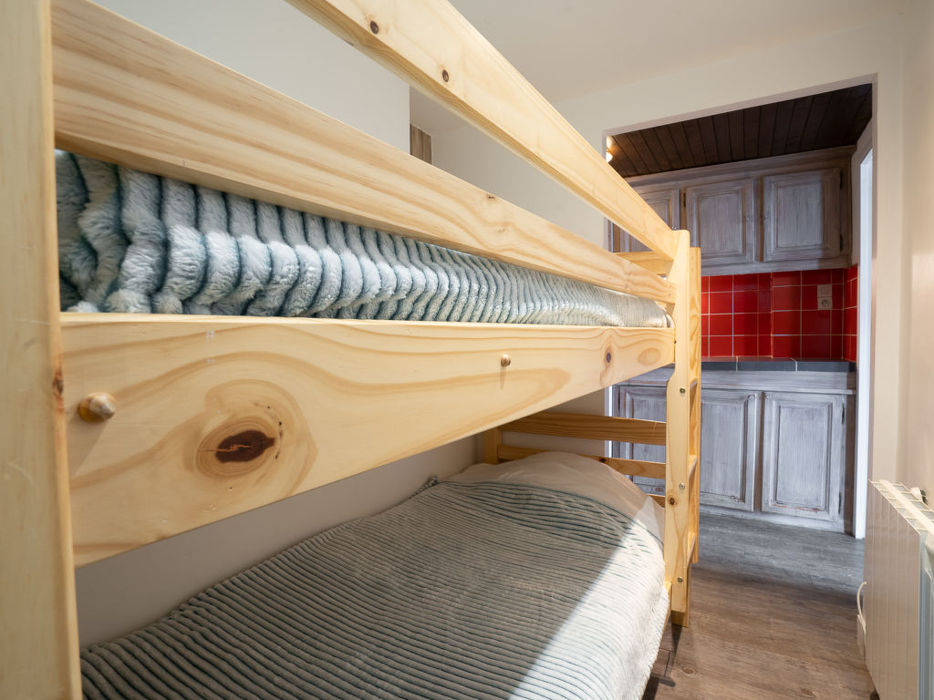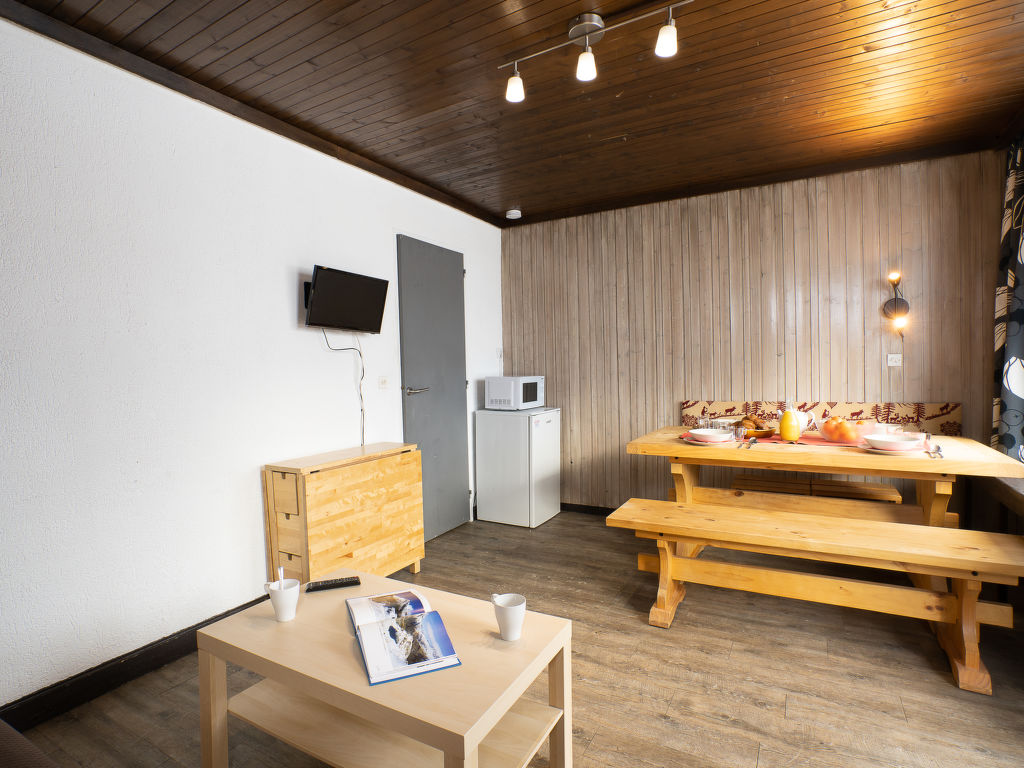 1-Zimmer-Studio 35 m2 im 1. Stock. Teilweise renoviert, einfach und zweckmässig eingerichtet: Wohn-/Esszimmer mit 1 Ausziehbett (2 Pers. 2 x 80 cm), TV (Flachbildschirm). Ausgang zur Terrasse. Eingang mit 1 x 2 Etagenbetten (70 cm). Kleine Kochnische (2 Kochplatten, Geschirrspüler, Mikrowelle). Bad, sep. WC. Grosser Balkon 8 m2, Südlage. Sehr schöne Panoramasicht auf die Berge und die Skipiste. Zur Verfügung: Internet (Wireless LAN, extra). Bitte beachten: Nichtraucher-Unterkunft. Rauchmelder. Inserat einer Privatperson nach Artikel 155, IV, CGI.