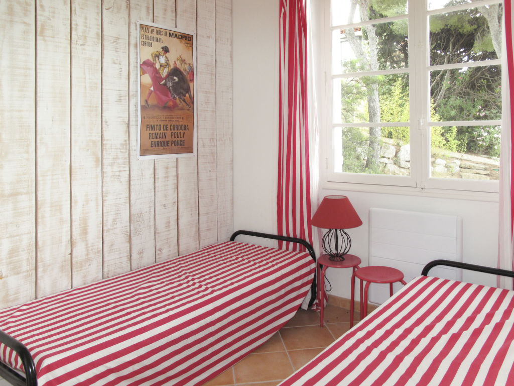 4-Zimmer-Haus, ca. 100 m². Wohnraum mit Sitzgruppe, Kamin (nur Dekoration), Essplatz und Terrassenausgang. Küche (4 Ceranfelder, Backofen, Mikrowelle, Geschirrspüler, Kühl-/Gefrierkombination, Kaffeemaschine, Wasserkocher, Toaster) mit Essplatz. Doppelzimmer (Klimaanlage) und Zugang zu Dusche. Zweibettzimmer (Betten 0,80 m breit, zusammenstellbar, Klimaanlage). Schlafzimmer mit Einzel- und Ausziehbett (0,80 m breit) und Waschbecken. Sep.WC. Abstellraum. Inserat einer Privatperson nach Artikel 155, IV, CGI.