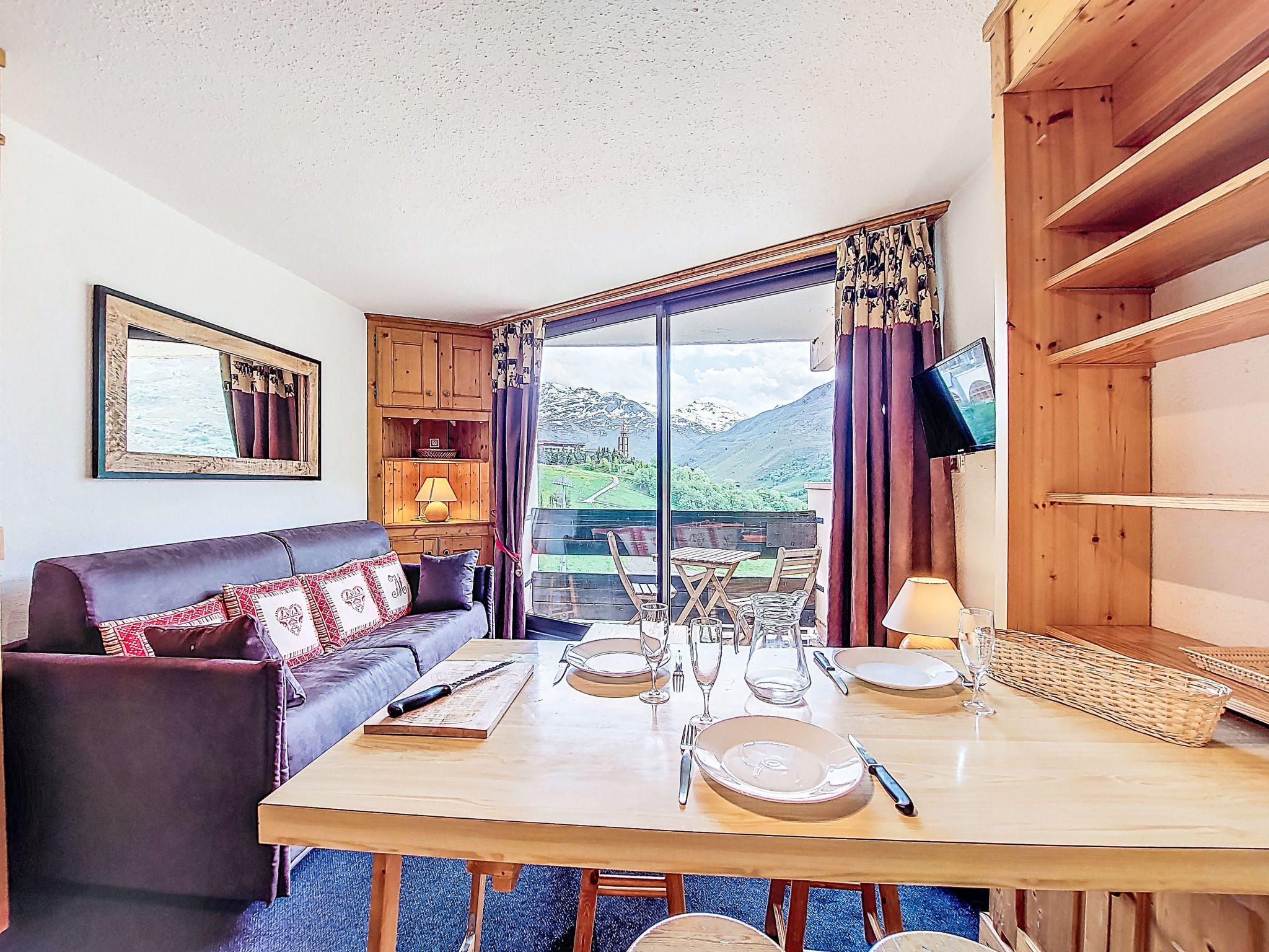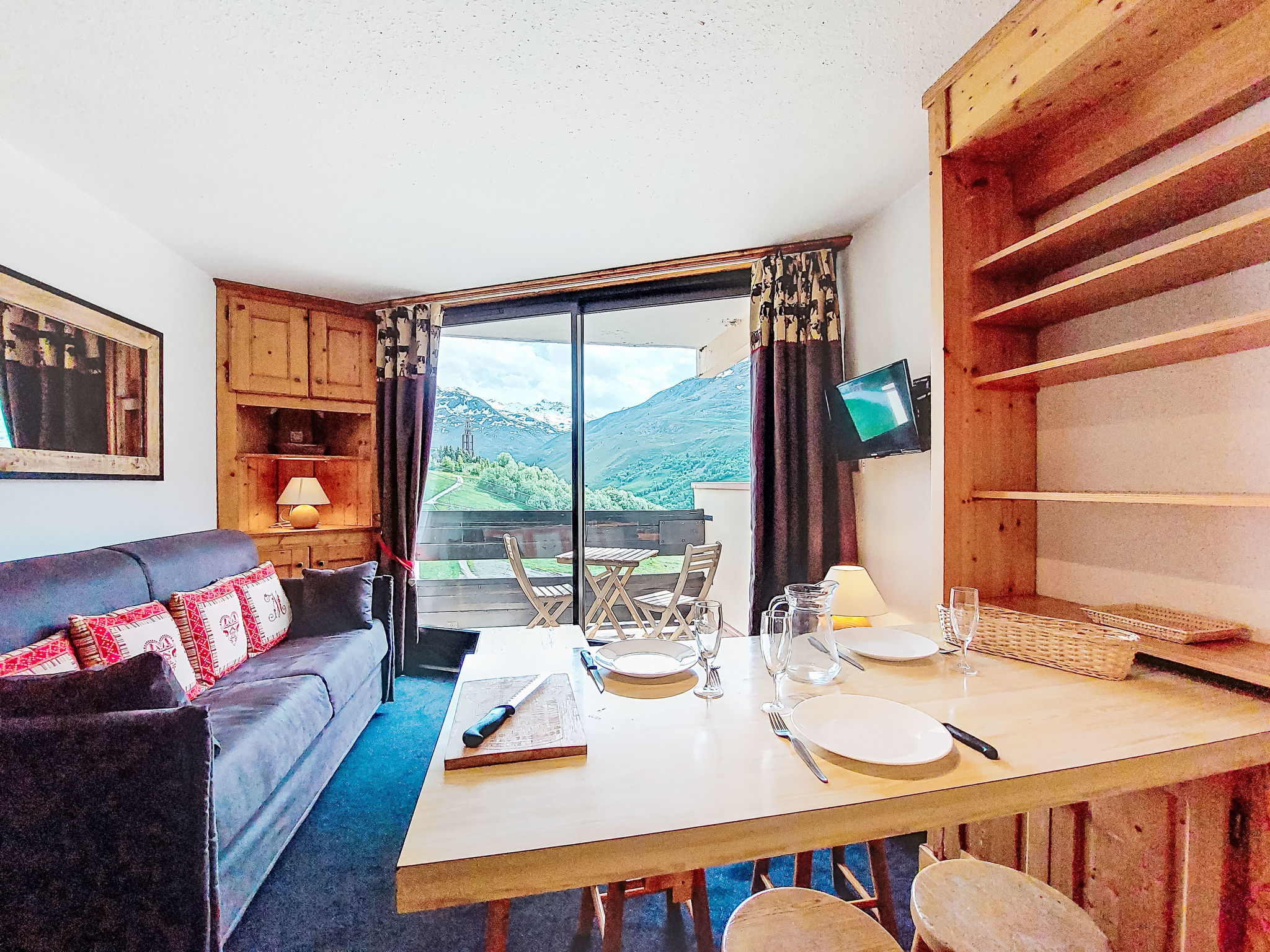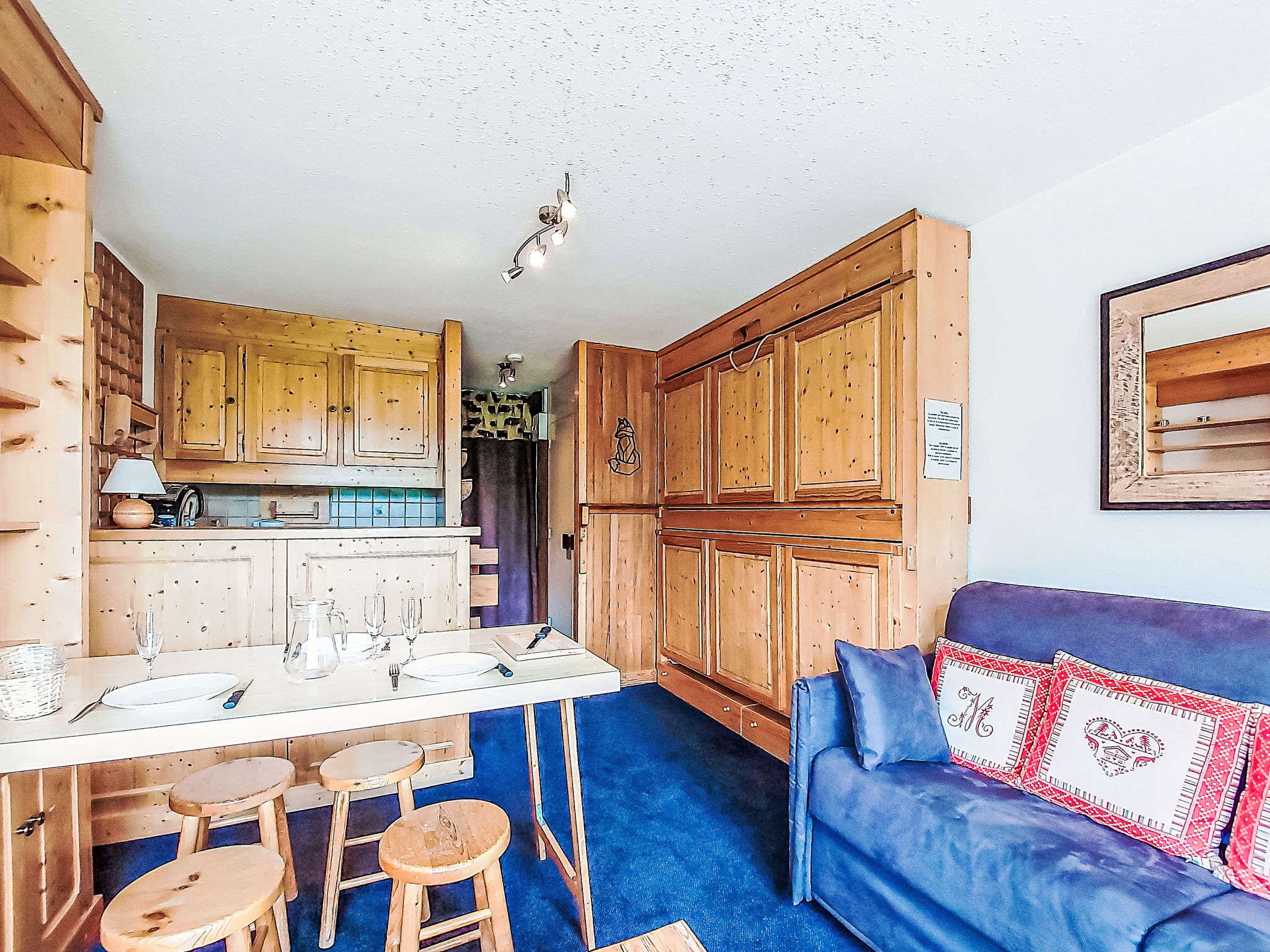 "Belleville Caron 1214", 1-Zimmer-Wohnung 22 m2 im 12. Stock. Schön eingerichtet: Wohn-/Esszimmer mit 1 Doppeldiwanbett (140 cm, Länge 190 cm), 1 Wandklappbett (80 cm, Länge 190 cm), TV (Flachbildschirm). Ausgang zum Balkon. Kochnische (2 Kochplatten, Backofen, elektrische Kaffeemaschine, Racletteofen). Bad/WC. Balkon, Südlage. Sehr schöne Sicht auf die Berge und die Skipiste. Zur Verfügung: Internet (Wireless LAN, extra). Bitte beachten: Nichtraucher-Unterkunft. Rauchmelder. Inserat einer Privatperson nach Artikel 155, IV, CGI.