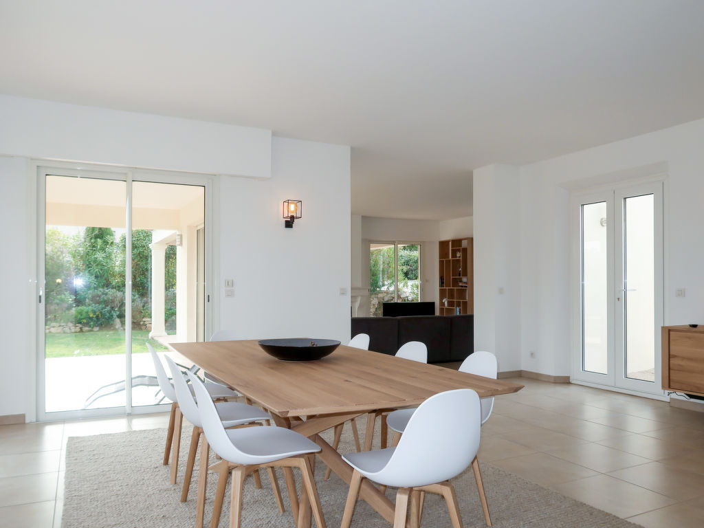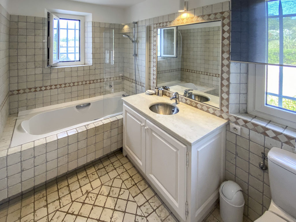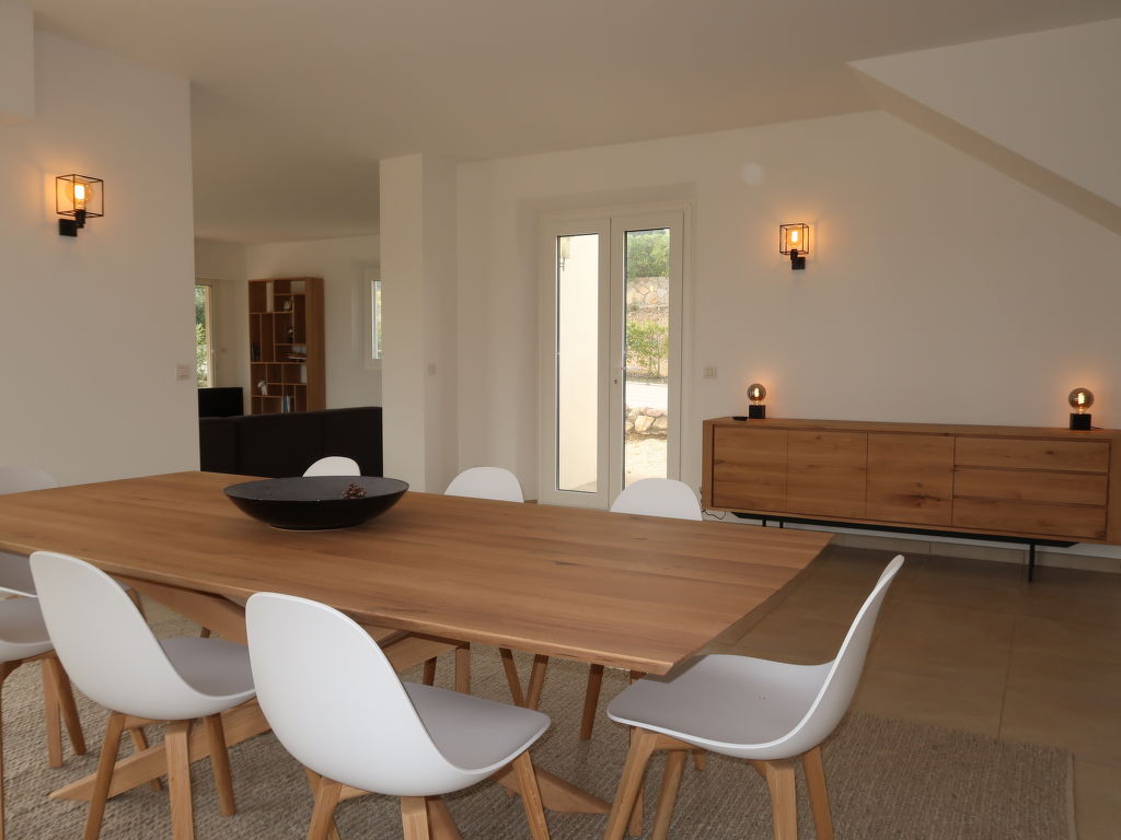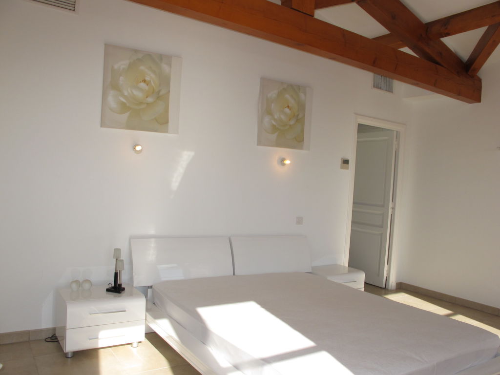 6-Zimmer-Haus, 2 Etagen, ca. 185 m². Erdgeschoss: Wohnraum mit Sitzgruppe, Kamin (nur Dekoration), Terrassenausgang. Zum Wohnraum offenes Esszimmer, Terrassenausgang. 3 Stufen tiefer: zum Esszimmer offene Küche (4 Ceranfelder, Backofen, Mikrowelle, Geschirrspüler, Kühl-/Gefrierkombination, Kaffeemaschine, Wasserkocher, Toaster), Terrassenausgang. 6 Stufen tiefer: Schlafzimmer mit franz. Bett (1,80 m breit), Bad, Terrassenausgang. Sep.WC. Obergeschoss: Schlafzimmer mit franz. Bett (1,60 m breit), Bad/WC und Balkon. Schlafzimmer mit franz. Bett (1,60 m breit) und Dusche. Schlafzimmer mit franz. Bett (1,60 m breit) und Bad. Sep.WC. Hinweis: Bei Buchung zum Preis für 4 Personen stehen 2 Schlafzimmer nicht zur Verfügung. Inserat einer Privatperson nach Artikel 155, IV, CGI.
