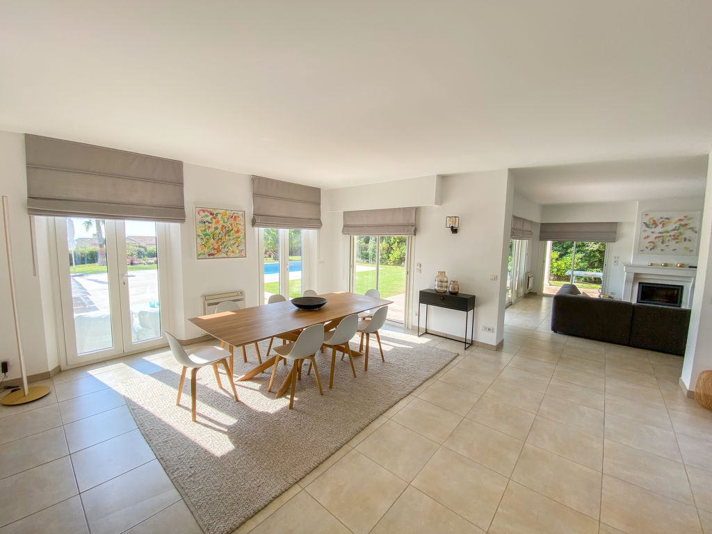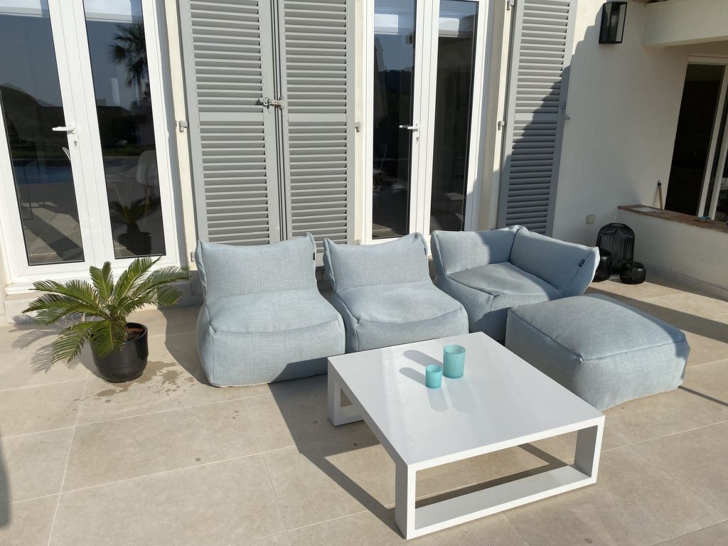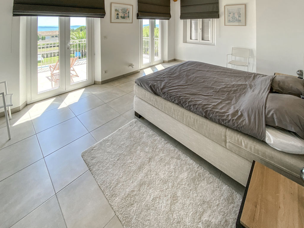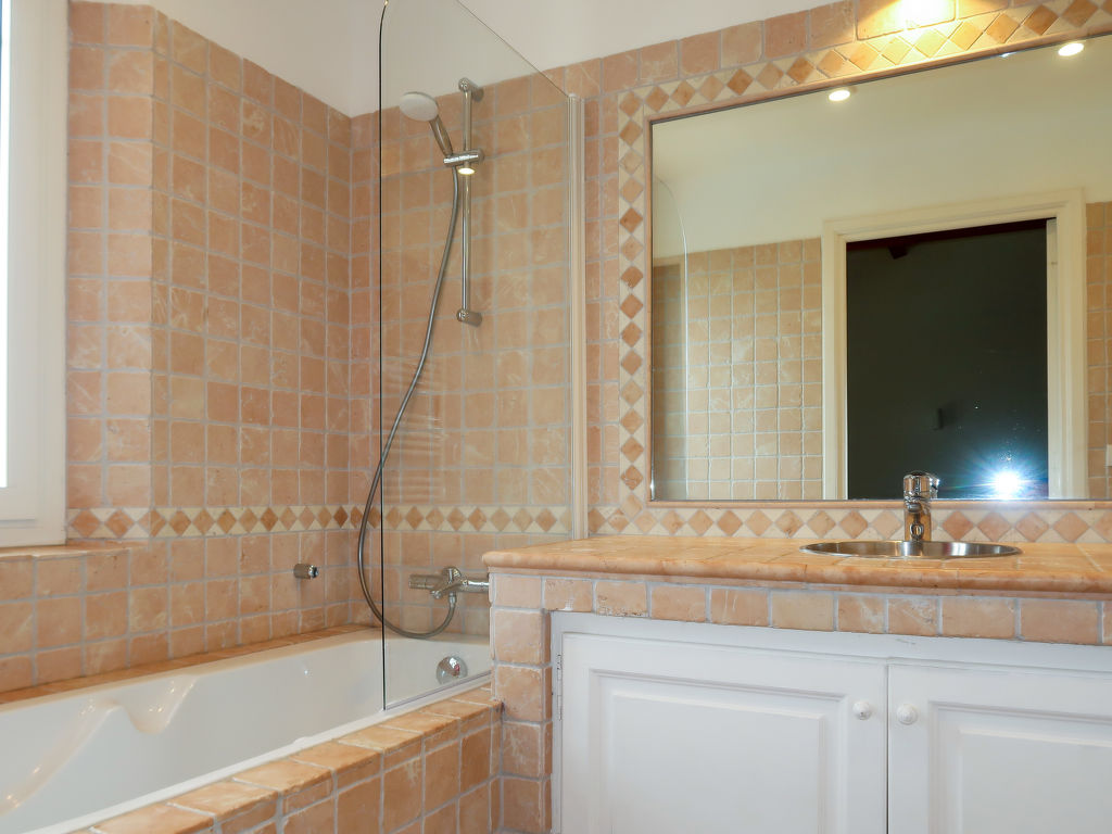 6-Zimmer-Haus, 2 Etagen, ca. 185 m². Erdgeschoss: Wohnraum mit Sitzgruppe, Kamin (nur Dekoration), Terrassenausgang. Zum Wohnraum offenes Esszimmer, Terrassenausgang. 3 Stufen tiefer: zum Esszimmer offene Küche (4 Ceranfelder, Backofen, Mikrowelle, Geschirrspüler, Kühl-/Gefrierkombination, Kaffeemaschine, Wasserkocher, Toaster), Terrassenausgang. 6 Stufen tiefer: Schlafzimmer mit franz. Bett (1,80 m breit), Bad, Terrassenausgang. Sep.WC. Obergeschoss: Schlafzimmer mit franz. Bett (1,60 m breit), Bad/WC und Balkon. Schlafzimmer mit franz. Bett (1,60 m breit) und Dusche. Schlafzimmer mit franz. Bett (1,60 m breit) und Bad. Sep.WC. Hinweis: Bei Buchung zum Preis für 4 Personen stehen 2 Schlafzimmer nicht zur Verfügung. Inserat einer Privatperson nach Artikel 155, IV, CGI.