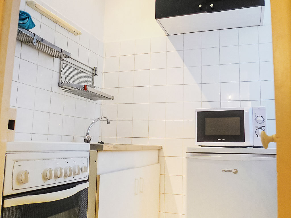 1-Zimmer-Wohnung 31 m2 im 1. Stock. Zweckmässig eingerichtet: Wohn-/Esszimmer mit 1 franz. Bett (160 cm, Länge 200 cm), TV (Flachbildschirm), Klimaanlage. Ausgang zum Balkon. Küche (4 Kochplatten, Backofen, Mikrowelle, elektrische Kaffeemaschine). Dusche/WC. E-Heizung, Klimaanlage. Parkettböden. Sicht auf die Ortschaft. Zur Verfügung: Internet (Wireless LAN, extra). Bitte beachten: Nichtraucher-Unterkunft. Inserat einer Privatperson nach Artikel 155, IV, CGI. 06088000871AZ