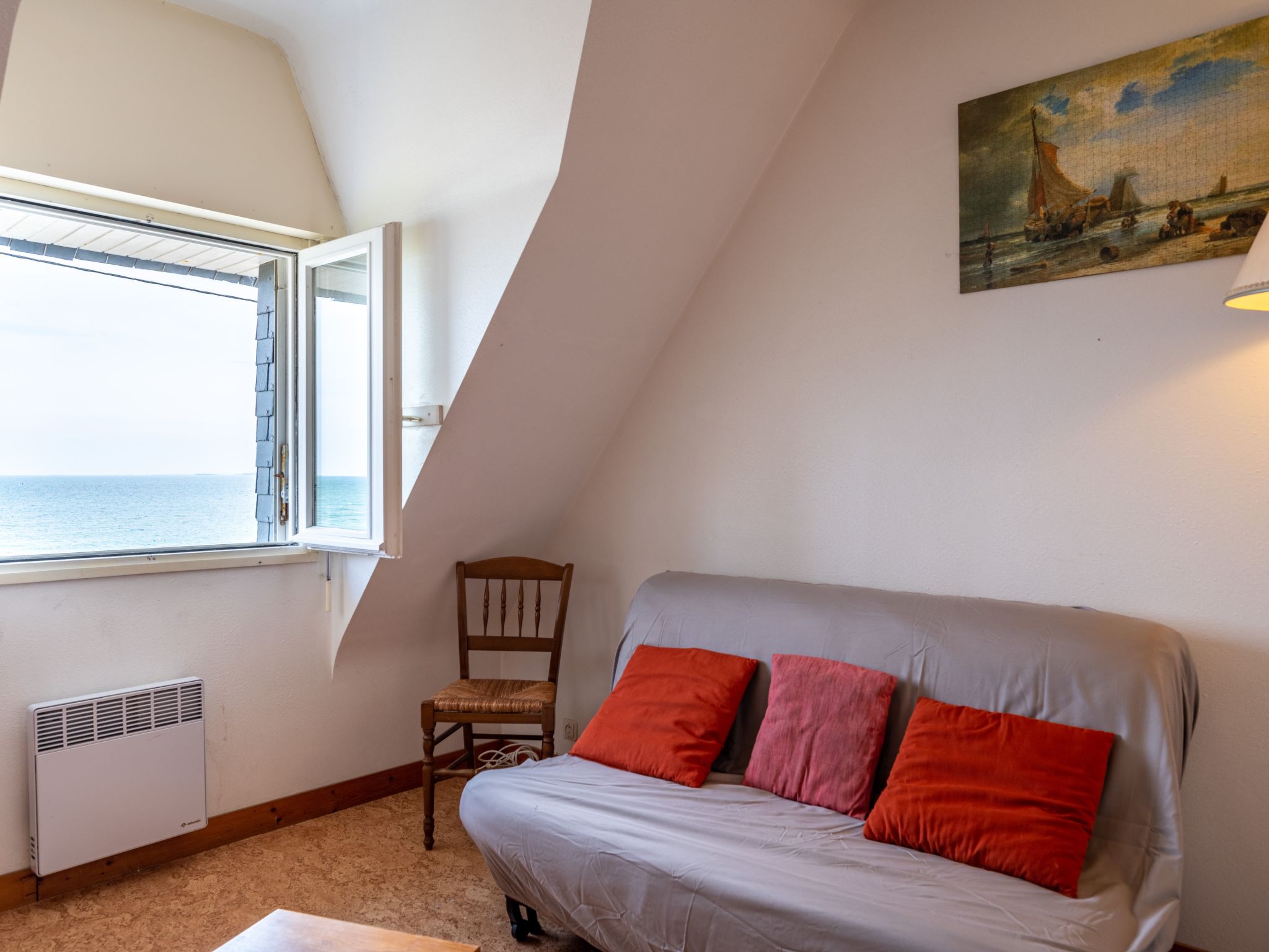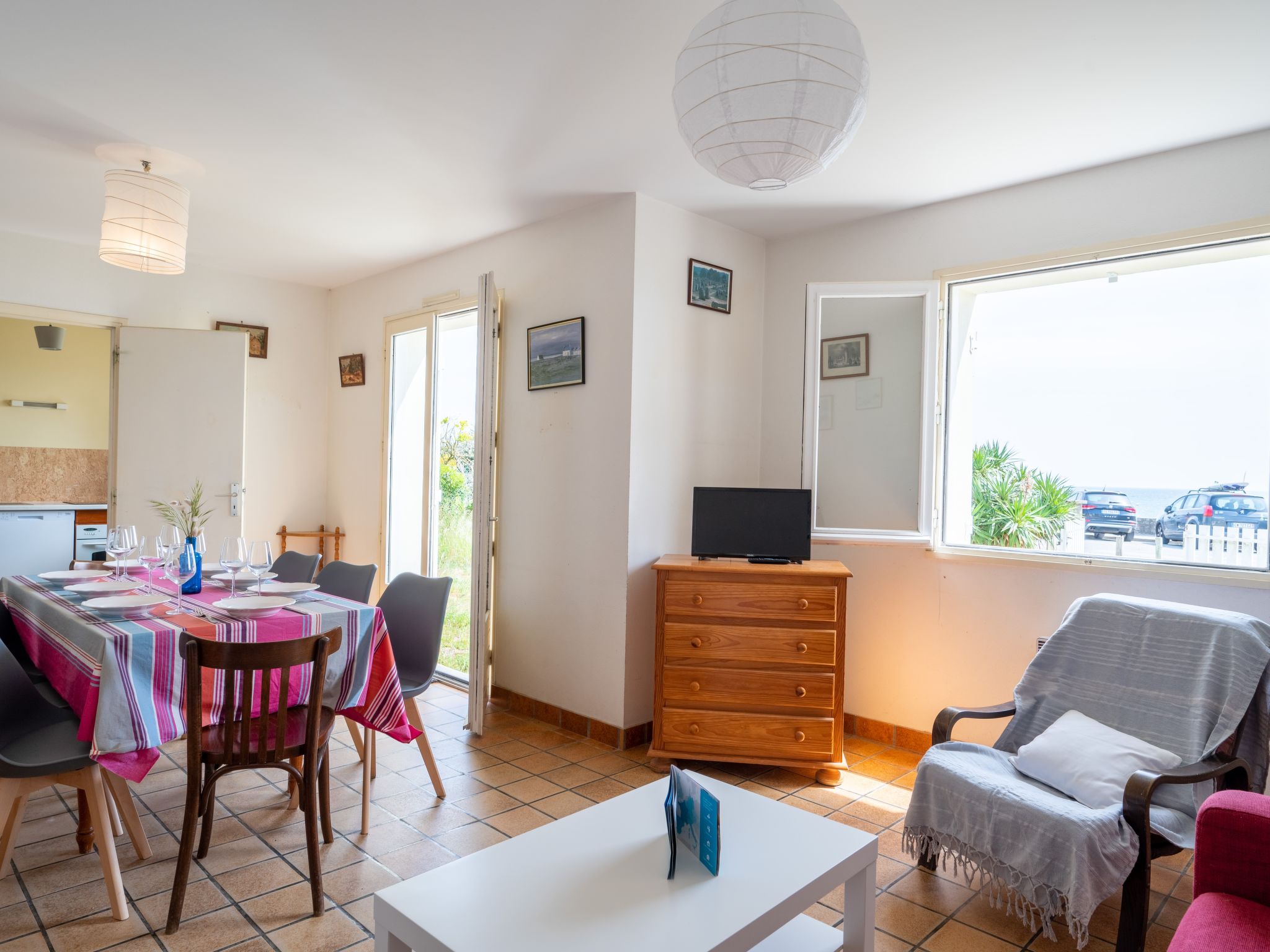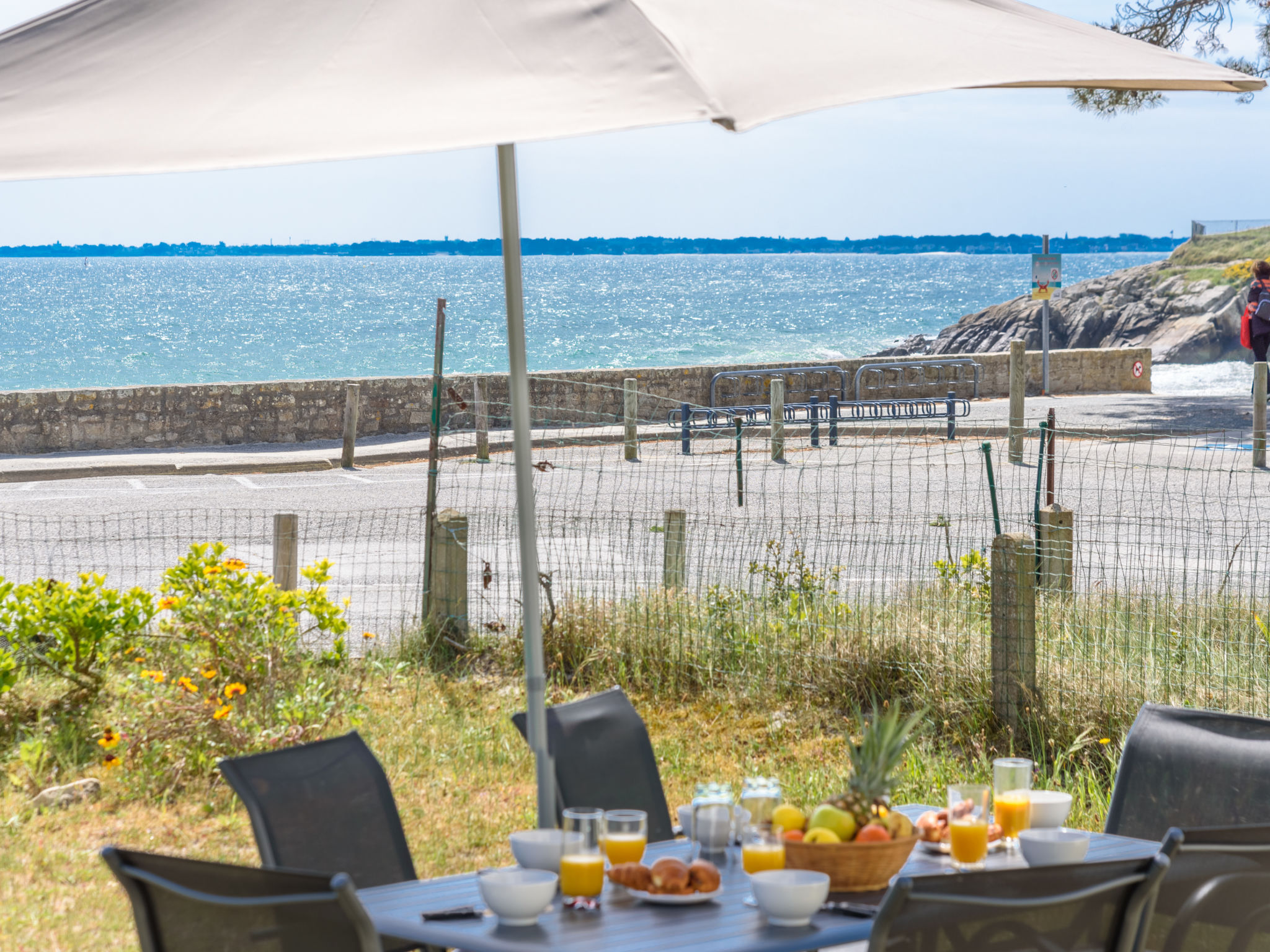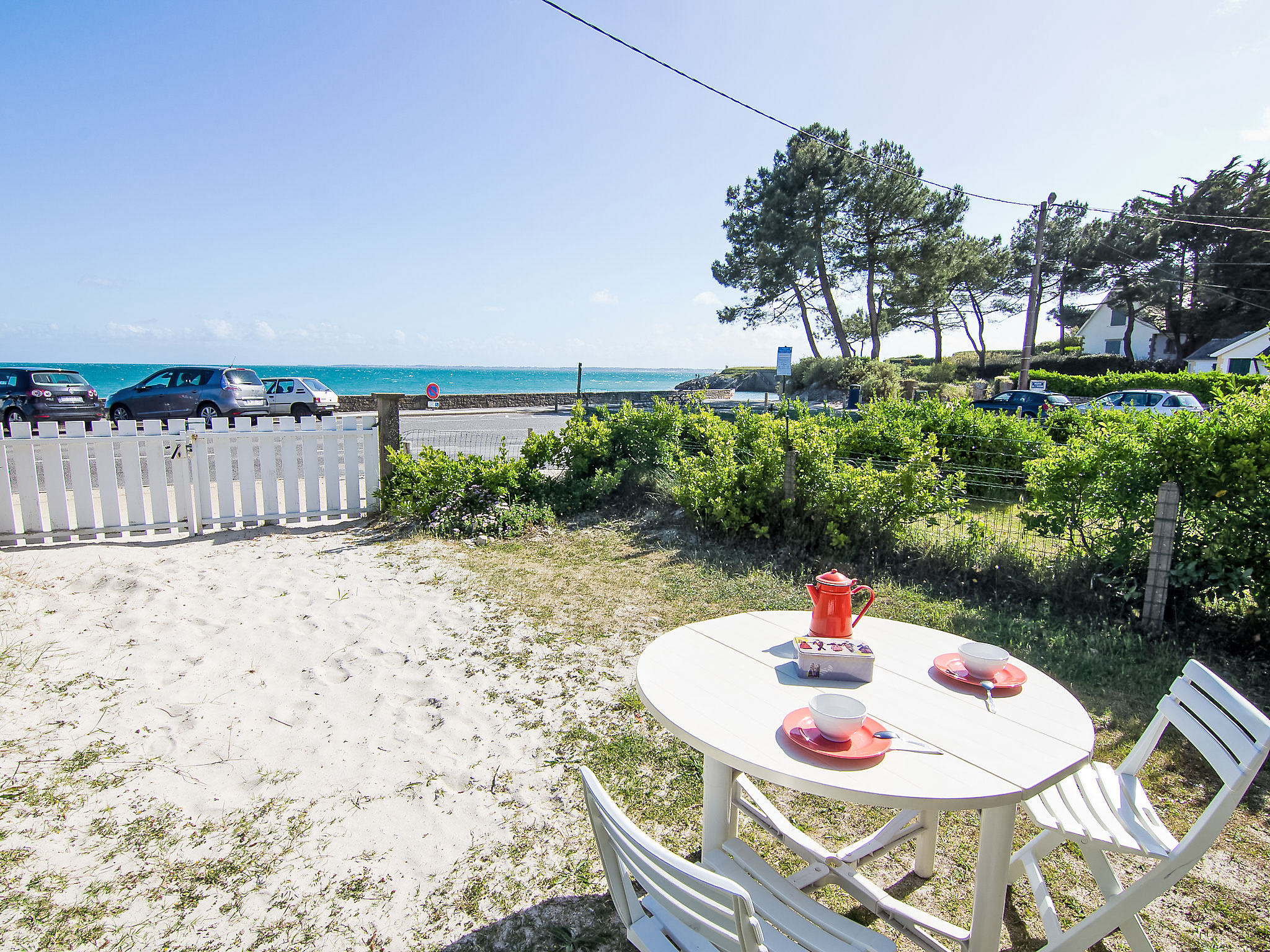 Villa "Trezen". Am Ortsrand, 2.5 km vom Zentrum, 30 m vom Meer, Strasse zu überqueren. Zur Alleinbenutzung: Grundstück 200 m2. Gartenmöbel, Parkplatz auf dem Grundstück, öffentliche Parkplätze. Einkaufsgeschäft 2.5 km, Lebensmittelgeschäft 2.5 km, Supermarkt 2.5 km, Restaurant 2.5 km, Sandstrand "Légenèse" 30 m. Golfplatz (18 Loch) 15 km, Segelschule 2 km, Reitstall 7 km. Nahe gelegene Sehenswürdigkeiten: Alignement de Carnac 6 km, Presqu'Ile de Quiberon 15 km, Vannes 30 km, Ile de Groix, Ile aux Moines.