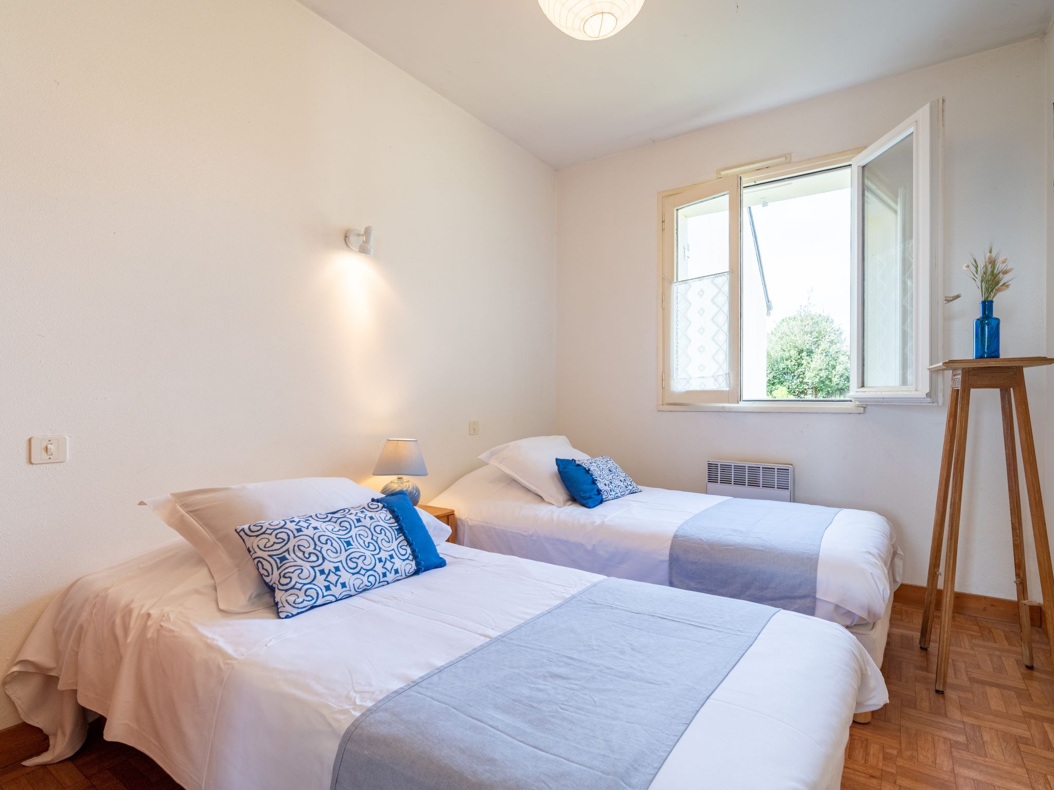 6-Zimmer-Haus 93 m2 auf 2 Stockwerken, Südlage. Wohn-/Esszimmer. Ausgang zum Garten. 2 Zimmer, jedes Zimmer mit 2 Betten. Küche (4 Kochplatten, Backofen, Geschirrspüler, Mikrowelle). Bad, sep. WC. Obergeschoss: Wohn-/Esszimmer mit TV. 1 Zimmer mit 2 Betten. 1 Zimmer mit 1 Ausziehbett (2 Pers. 2 x 90 cm, Länge 190 cm). Küche (Backofen, Geschirrspüler, Mikrowelle). Bad, sep. WC. E-Heizung. Sicht auf das Meer. Zur Verfügung: Waschmaschine. Internet (Wireless LAN, extra). Bitte beachten: geeignet für Familien. 1 Haustier/Hund erlaubt. Rauchmelder. Bitte beachten: Das Haus besteht aus zwei Wohnungen. Eine befindet sich im Erdgeschoss, die andere im Obergeschoss. Inserat einer Privatperson nach Artikel 155, IV, CGI.