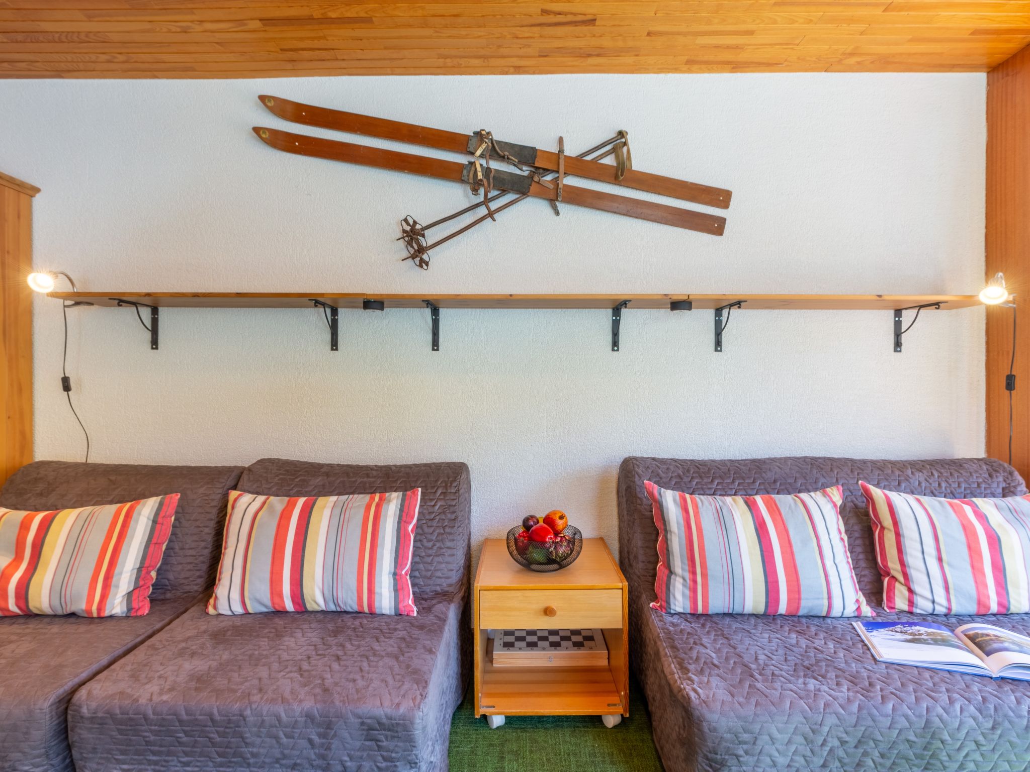 1-Zimmer-Studio 26 m2 im 2. Stock. Renoviert, zweckmässig und schön eingerichtet: Wohn-/Esszimmer mit 2 Ausziehbetten (4 Pers. 2 x 80 cm, Länge 190 cm), TV (Flachbildschirm). Ausgang zum Balkon, Richtung Süden und Richtung Westen. Offene Küche (Geschirrspüler, 2 Induktionskochplatten, Mikrowelle). Dusche/WC. Balkon, Südlage. Sehr schöne Panoramasicht auf die Berge und die Landschaft. Zur Verfügung: Waschmaschine. Internet (Wireless LAN, gratis). Bitte beachten: Nichtraucher-Unterkunft. Rauchmelder. Inserat einer Privatperson nach Artikel 155, IV, CGI.