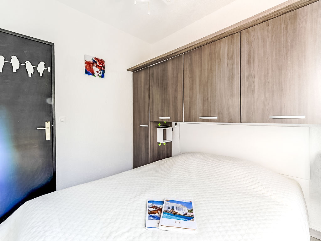 2-Zimmer-Wohnung 28 m2, im Erdgeschoss, Südostlage. Renoviert im Jahre 2017, komfortabel und schön eingerichtet: Wohnzimmer mit 1 Diwanbett (120 cm, Länge 190 cm), TV (Flachbildschirm), Klimaanlage, Ventilator und elektrischem Rollladen. Ausgang zur Terrasse. 1 Zimmer mit 1 franz. Bett (1 x 140 cm, Länge 190 cm), TV (Flachbildschirm), Ventilator. Ausgang zur Terrasse. Offene Küche (2 Glaskeramikherd Platten, Toaster, Wasserkocher, elektrische Kaffeemaschine, Kombinationsmikrowelle). Dusche, sep. WC. E-Heizung, Boiler (100 Liter). Terrasse 11 m2. Terrassenmöbel. Zur Verfügung: Waschmaschine, Bügeleisen. Internet (Wireless LAN, extra). Parkplatz Nr. 6. Bitte beachten: Nichtraucher-Unterkunft. Rauchmelder. Inserat einer Privatperson nach Artikel 155, IV, CGI.
