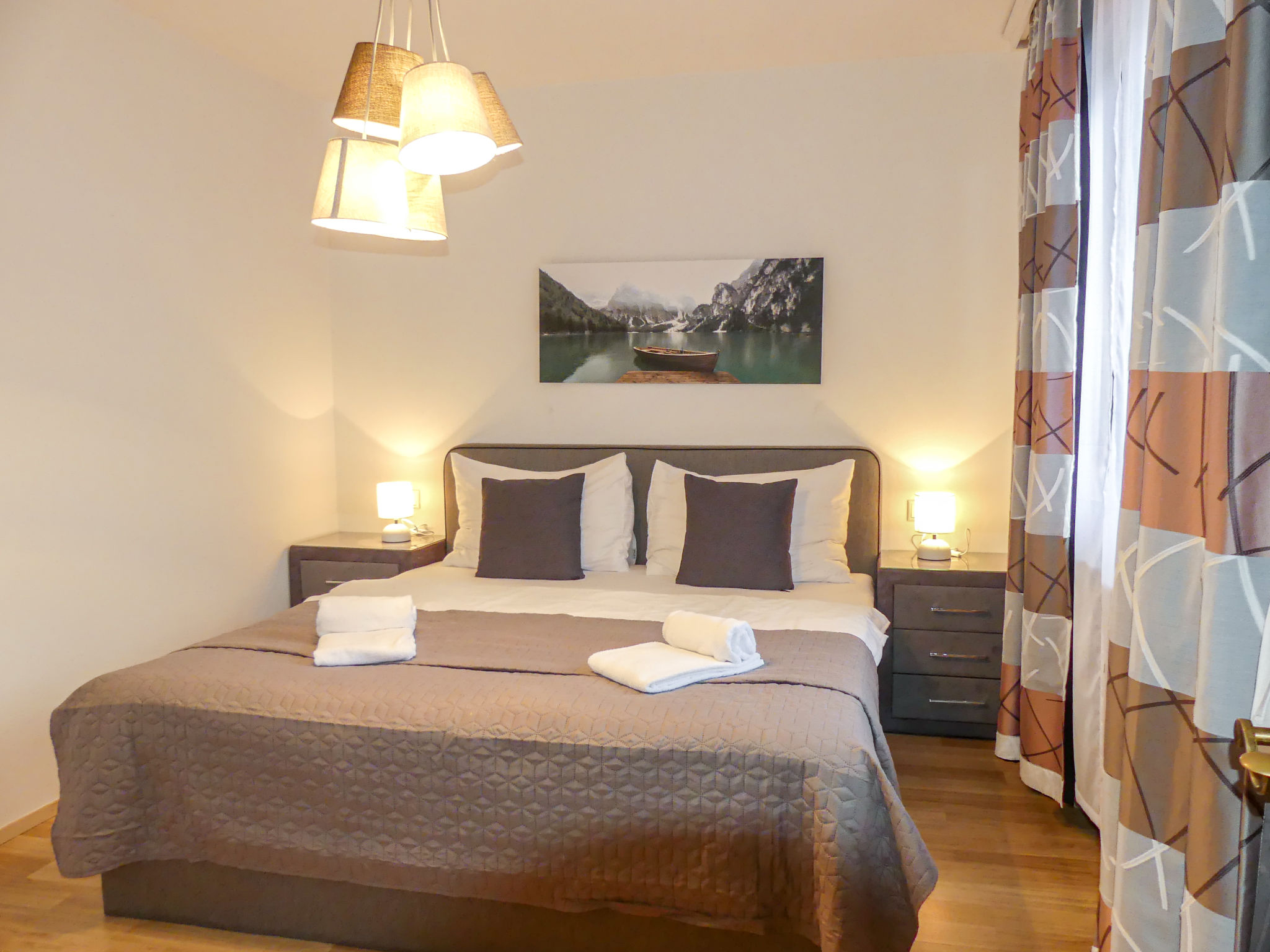 "Appartement Sigel", 3-Zimmer-Wohnung 50 m2 im 3. Stock. Geschmackvoll und gemütlich eingerichtet: Eingang. Wohnzimmer mit 1 Doppeldiwanbett, Essecke, Sat-TV und Flachbildschirm. Ausgang zum Balkon. 1 Zimmer mit 2 Betten. 1 Doppelzimmer. Kochnische (Backofen, Geschirrspüler, 4 Glaskeramikherd Platten, Toaster, Wasserkocher, Mikrowelle, elektrische Kaffeemaschine). Dusche/WC. Parkettböden, Natursteinböden. Grosser Balkon 25 m2. Balkonmöbel. Zur Verfügung: Safe, Bügeleisen, Haartrockner. Internet (Wireless LAN, gratis). Bitte beachten: Nichtraucher-Unterkunft. 50628-001529-2021