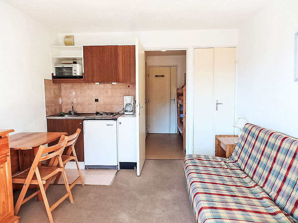 1-Zimmer-Wohnung 19 m2 im 4. Stock. Wohn-/Esszimmer mit 1 Doppeldiwanbett. Kochnische). Dusche, sep. WC. Balkon, Südlage. Haus Alpheratz. Inserat einer Privatperson nach Artikel 155, IV, CGI.