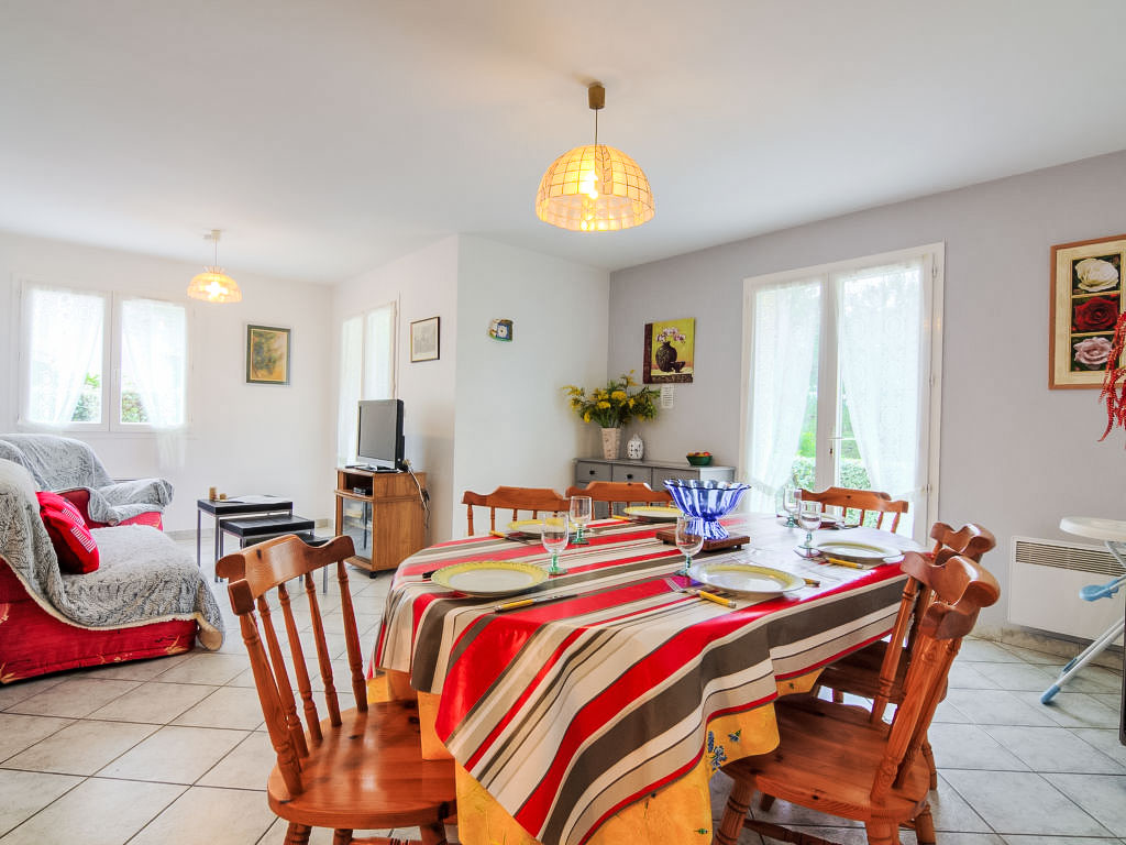 4-Zimmer-Haus 85 m2. Zweckmässig eingerichtet: Wohn-/Esszimmer mit TV (Flachbildschirm). Ausgang zur Terrasse. 1 Zimmer mit 1 franz. Bett. 1 Zimmer mit 1 franz. Bett, Waschbecken und sep. WC. 1 Zimmer mit 2 Betten. Offene Küche (4 Kochplatten, Backofen, Geschirrspüler, Mikrowelle). Bad, sep. WC. E-Heizung. Terrasse 30 m2, Südlage Terrasse 20 m2, Ostlage. Terrassenmöbel, Gartengrill. Zur Verfügung: Waschmaschine, Kinderhochstuhl, Babybett. Internet (Wireless LAN, extra). Bitte beachten: Rauchmelder. Das Schlafzimmer mit franz. Bett und separatem WC, Lavabo ist über einen separaten Eingang erreichbar. Inserat einer Privatperson nach Artikel 155, IV, CGI.