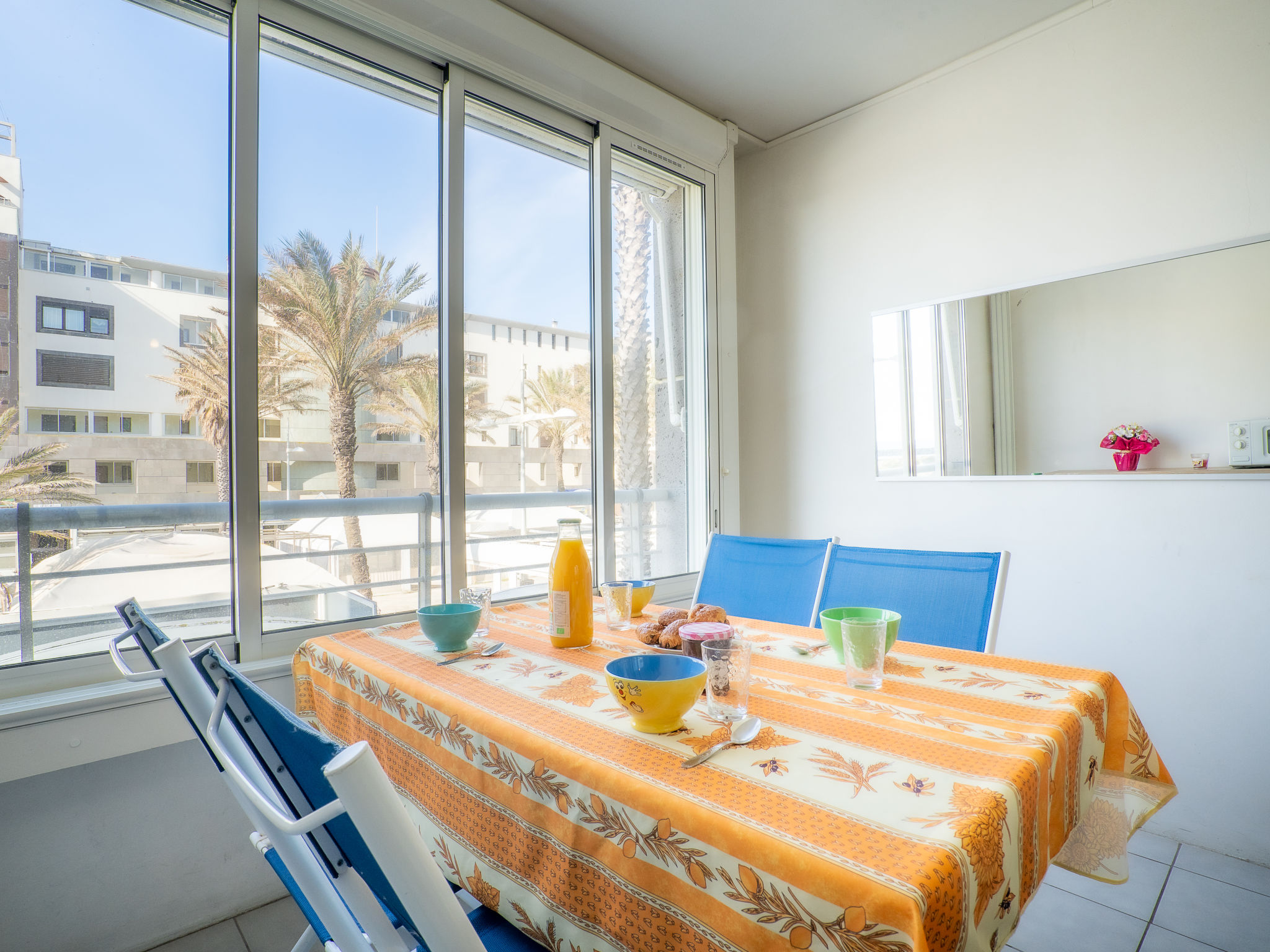 Residenz "Le Sunset/Cap Sud". Im Ortsteil Rochelongue, 230 m vom Meer, 230 m vom Strand. Zur Mitbenutzung: Garten (eingezäunt), Schwimmbad (12 x 6 m, 40 - 175 cm tief, saisonale Verfügbarkeit: 01.Jul.-31.Aug.). Kinderspielplatz. In der Anlage: Fahrstuhl. Öffentliche Parkplätze 50 m auf der Strasse. Einkaufsgeschäft, Lebensmittelgeschäft, Restaurant 350 m, Bäckerei 110 m, Sandstrand "Rochelongue" 230 m. Sporthafen 3 km, Golfplatz (27 Loch) 1.5 km, Tennis 3 km, Reitstall 1.4 km. Nahe gelegene Sehenswürdigkeiten: Aqualand 1.7 km, Ile des Loisirs 1.9 km, Musée de l'Ephèbe 3 km, Casino 2.5 km, Luna Park 2.4 km, Accrobranche 4.7 km.