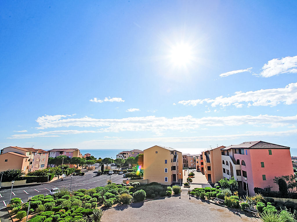 Residenz "Les Terrasses de la Méditérranée". Oberhalb von Saint Pierre La Mer, 1 km vom Meer. Zur Mitbenutzung: Schwimmbad (20 x 10 m, 120 - 120 cm tief, saisonale Verfügbarkeit: 15.Jun.-15.Sep.). Tennis. Einkaufsgeschäft 1 km, Restaurant 1 km, Bar 1 km, Tauchzentrum 2 km. Sporthafen 2 km, Reitstall 3 km. Nahe gelegene Sehenswürdigkeiten: Réserve Africaine de sigean 36 km, Cité de Carcassonne 78 km, Espace balnéoludique de Gruissan 11 km. Bitte beachten: Die Schlüsselübergabe findet bei der Agentur Interhome in Narbonne Plage statt, 3 km. Das Foto ist nur ein Hausbeispiel. In diesem Haus sind weitere Ferienwohnungen mietbar.