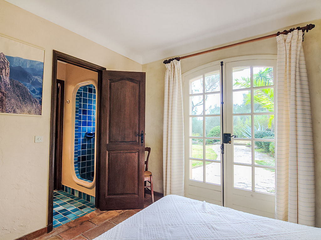 Villa "Mas Baladou". Im Ortsteil Gigaro, ausserhalb des Ortes, 2.5 km vom Zentrum von la Croix Valmer, ruhige, sonnige Lage, 200 m vom Meer, 200 m vom Strand. Zur Alleinbenutzung: Grundstück 2'500 m2, gepflegter Garten, Schwimmbad (11 x 5 m, 80 - 250 cm tief, 01.06.-30.09.) mit Innentreppe. Aussendusche, Grill, Parkplatz auf dem Grundstück. Einkaufsgeschäft 2 km, Lebensmittelgeschäft 500 m, Supermarkt 2 km, Einkaufszentrum 8 km, Restaurant, Bar, Café 500 m, Sandstrand "D'Héraclée" 200 m, Park "Aqualand" 23 km, Tauchzentrum 5.9 km. Sporthafen 6 km, Segelschule 5.8 km, Minigolf 11 km. Nahe gelegene Sehenswürdigkeiten: Azur Park, Paint-ball 10 km, Bowling à Port-Grimaud 12 km, St-Tropez 14 km, St-Maxime 23 km. Wandergebiete: Sentier du Fenouillet 8 km, Sentier du Littoral 200 m, Toulon 66 km. Aussichtsturm mit Meersicht. Das Schwimmbad wird durch eine Barriere abgesichert. Das Haus befindet sich vor dem Weingut La Madrague.