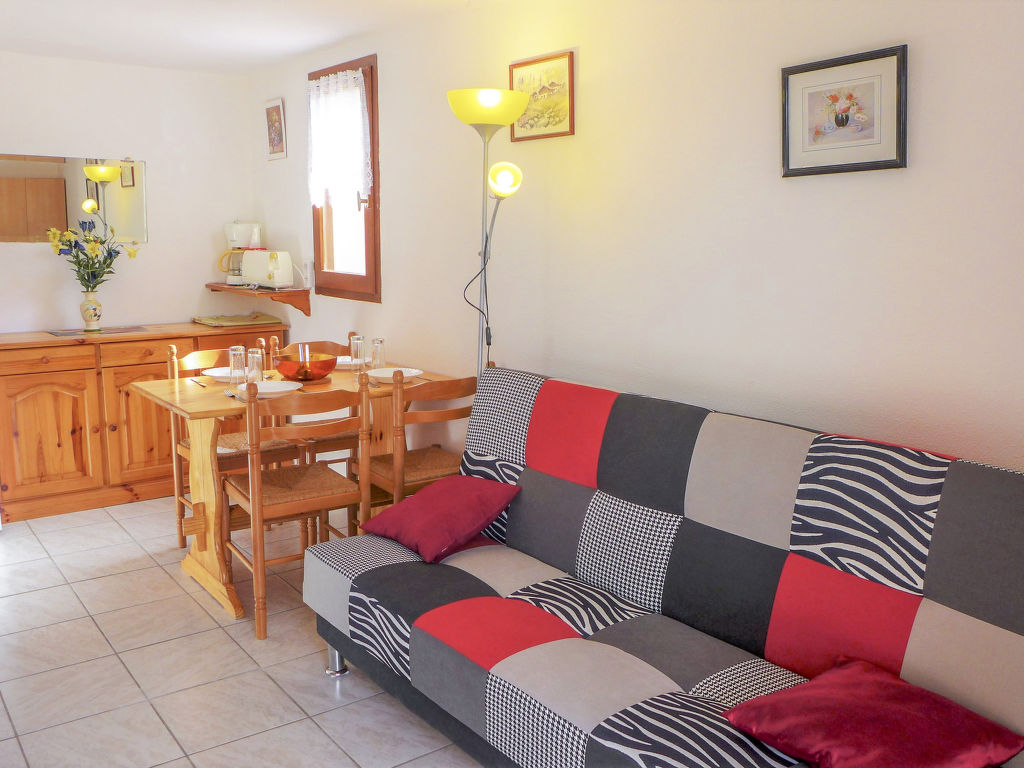 1-Zimmer-Reihenhaus 25 m2 auf 2 Stockwerken. Vollständig renoviert im Jahre 2015: Wohn-/Esszimmer mit 1 Doppeldiwanbett (113 cm), TV (Flachbildschirm). Kochnische (2 Kochplatten, Backofen, Mikrowelle). Dusche/WC. E-Heizung. Obergeschoss: Galerie mit Dachfenster mit 1 franz. Bett (140 cm). Terrasse 12 m2, Westlage. Terrassenmöbel. Zur Verfügung: Waschmaschine. Internet (Wireless LAN, extra). Parkplatz. Bitte beachten: Maximal 1 Haustier/Hund erlaubt. Rauchmelder. Inserat einer Privatperson nach Artikel 155, IV, CGI.