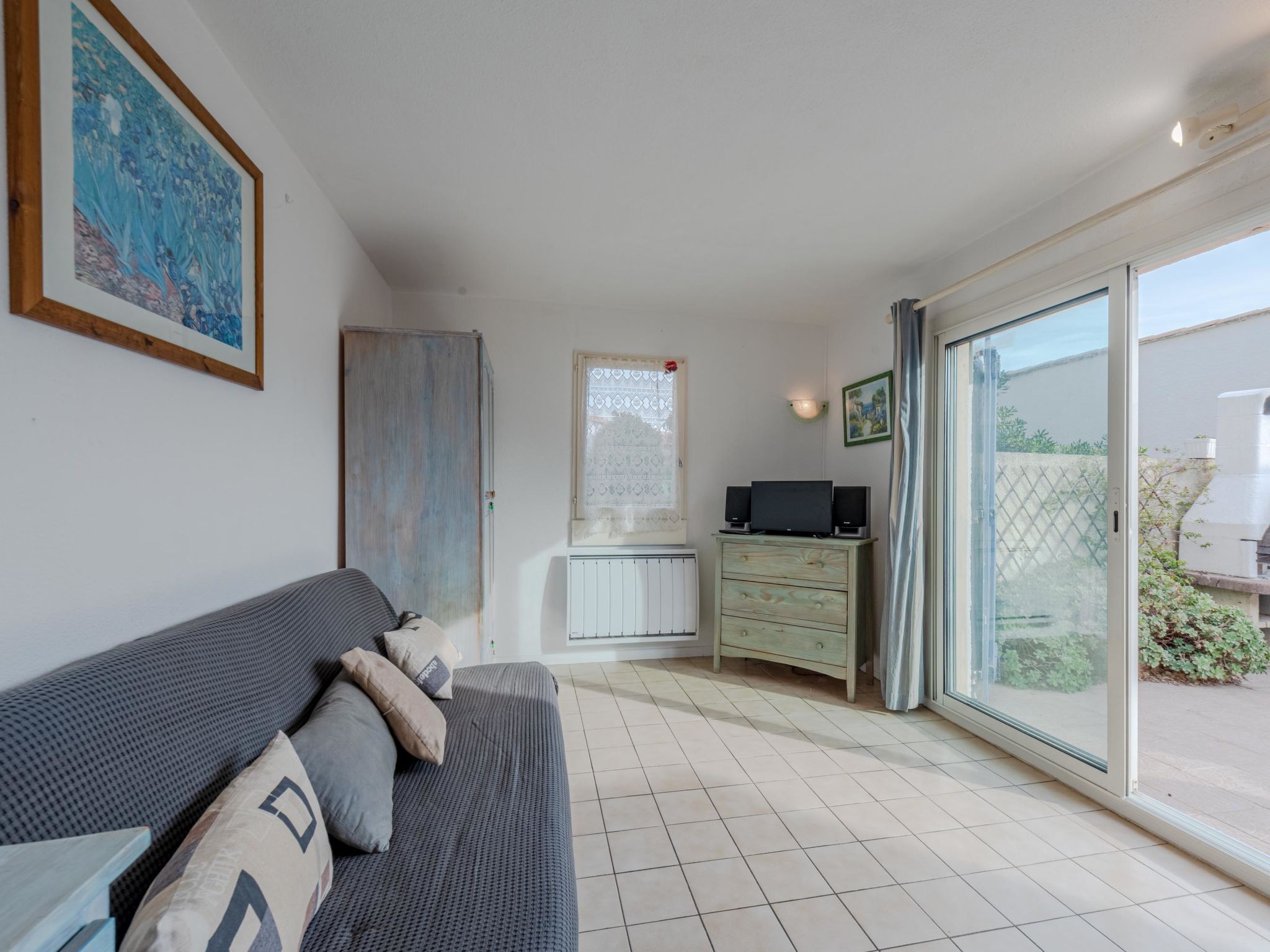 Residenz "Les Jardins du Barcarès". Am Ortsrand, 1.5 km vom Meer, 100 m vom See. In der Anlage: Parkplatz Nr. 98. Einkaufsgeschäft 300 m, Lebensmittelgeschäft 500 m, Sandstrand 1.5 km. Nahe gelegene Sehenswürdigkeiten: Aqualand Port leucate 7 km, Réserve Africaine de Sigean 41 km, site des dosses 4 km, téléski nautique 5 km. Bekannte Seen in der Umgebung sind gut erreichbar: Etang de Leucate ou salses 11 km, Lac de Villeneuve de la Raho 28 km. Wandergebiete: Sentier du guetteur 8 km, la forteresse de salses 15 km, Sentier du littoral Collioure 40 km. Bitte beachten: Fahrzeug empfohlen.