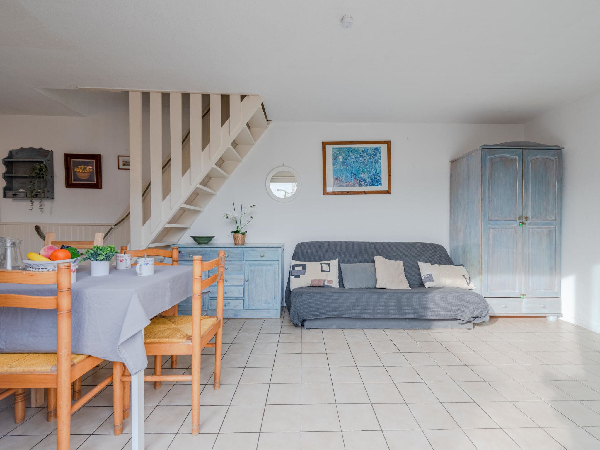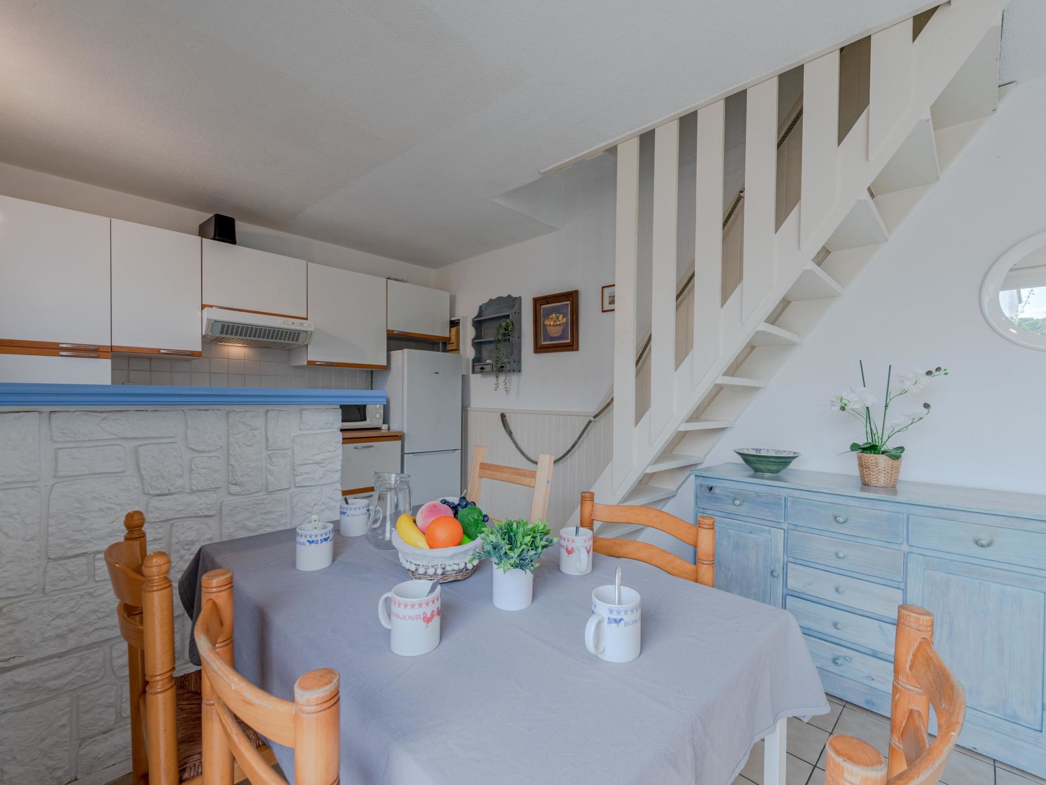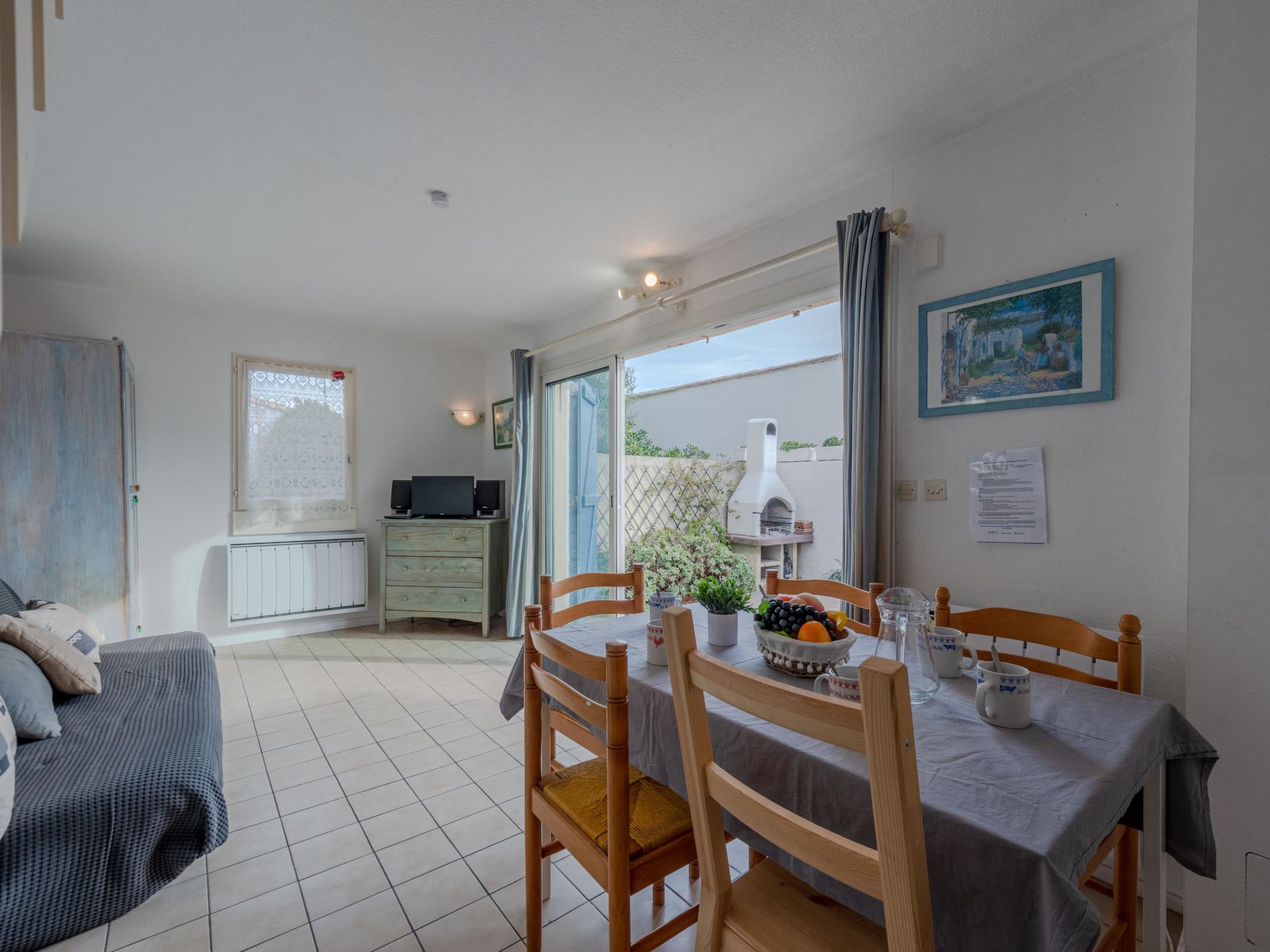 3-Zimmer-Reihenhaus 50 m2 auf 2 Stockwerken. Wohn-/Esszimmer mit 1 Diwanbett, TV und DVD. Ausgang zur Terrasse. Kochnische (4 Kochplatten, Backofen, Geschirrspüler, Mikrowelle). Obergeschoss: 1 Zimmer mit 1 franz. Bett (1 x 140 cm). 1 Zimmer mit 1 x 2 Etagenbetten (80 cm). Dusche, sep. WC. Terrasse 25 m2, Ostlage. Terrassenmöbel, Gartengrill. Zur Verfügung: Waschmaschine. Internet (Wireless LAN, extra). Parkplatz. Bitte beachten: Maximal 1 Haustier/Hund erlaubt. Rauchmelder. Inserat einer Privatperson nach Artikel 155, IV, CGI.