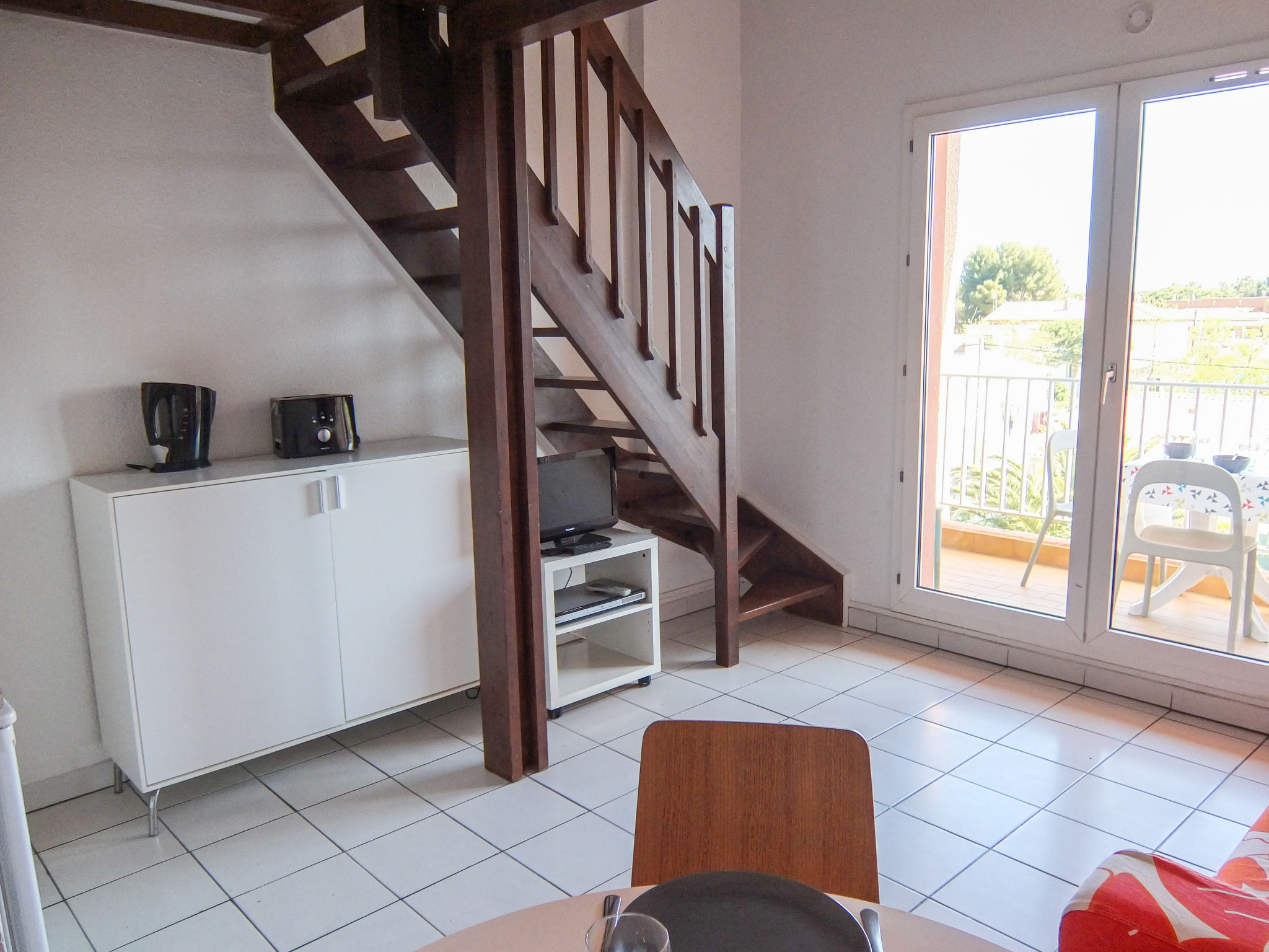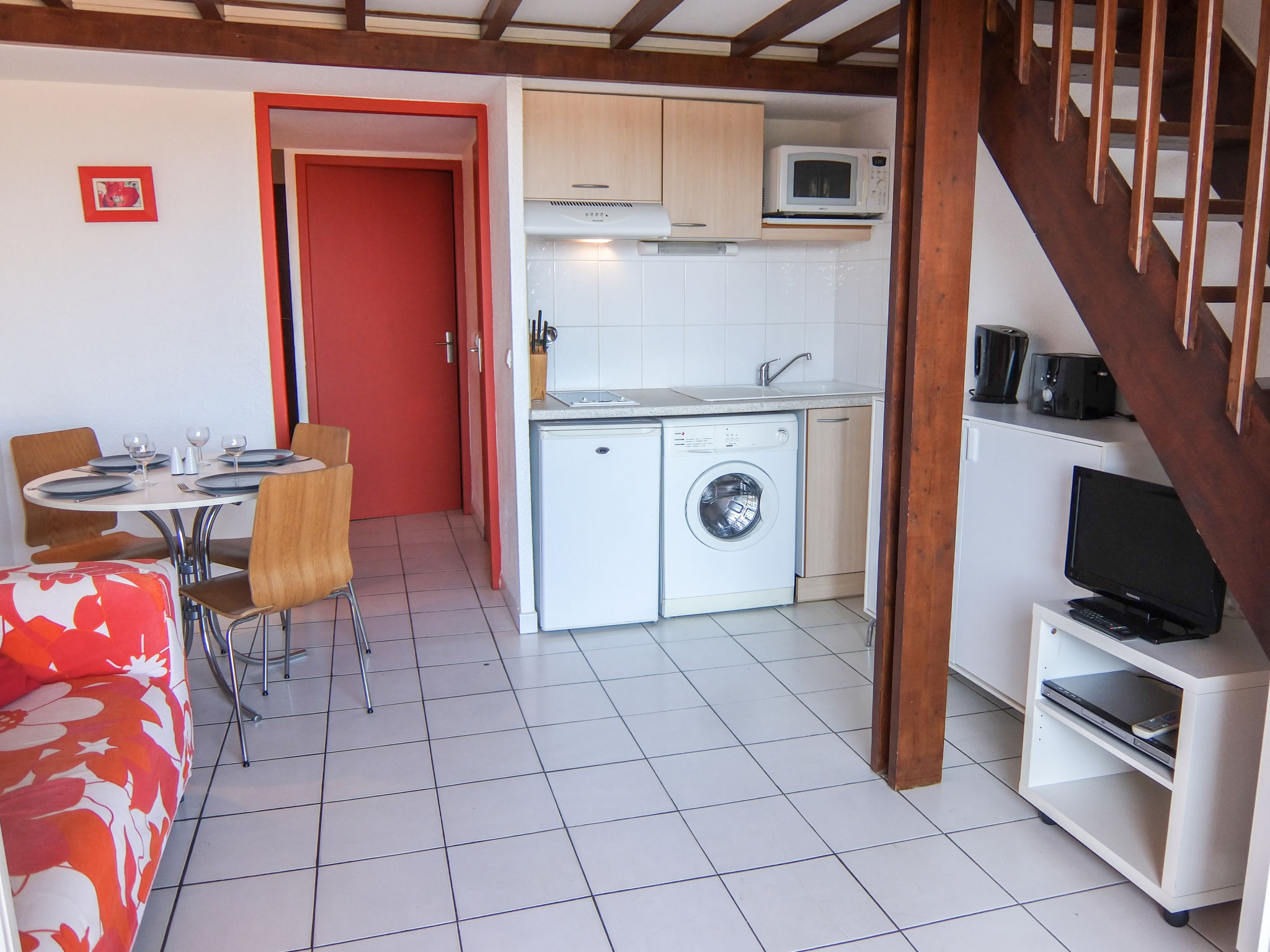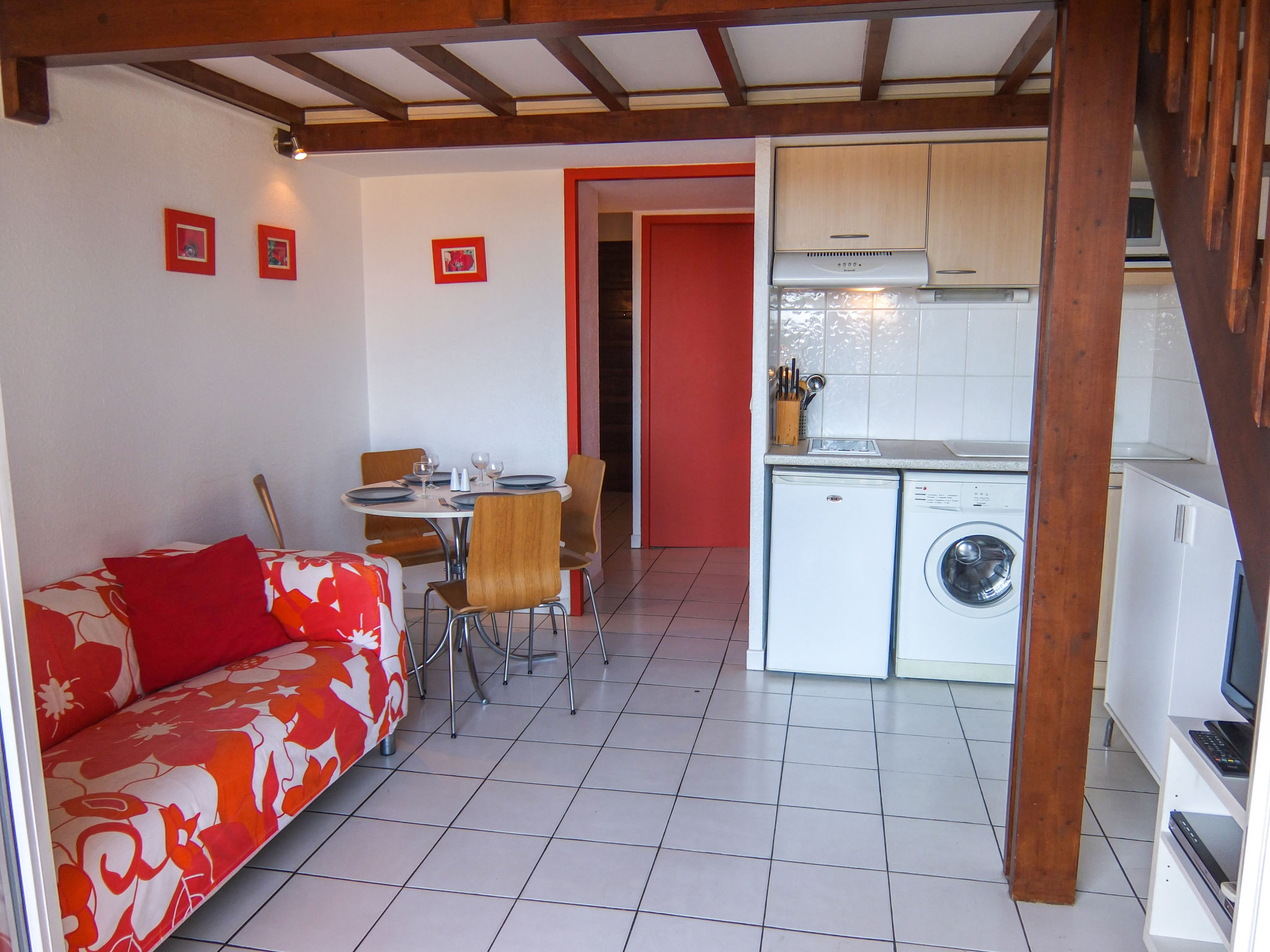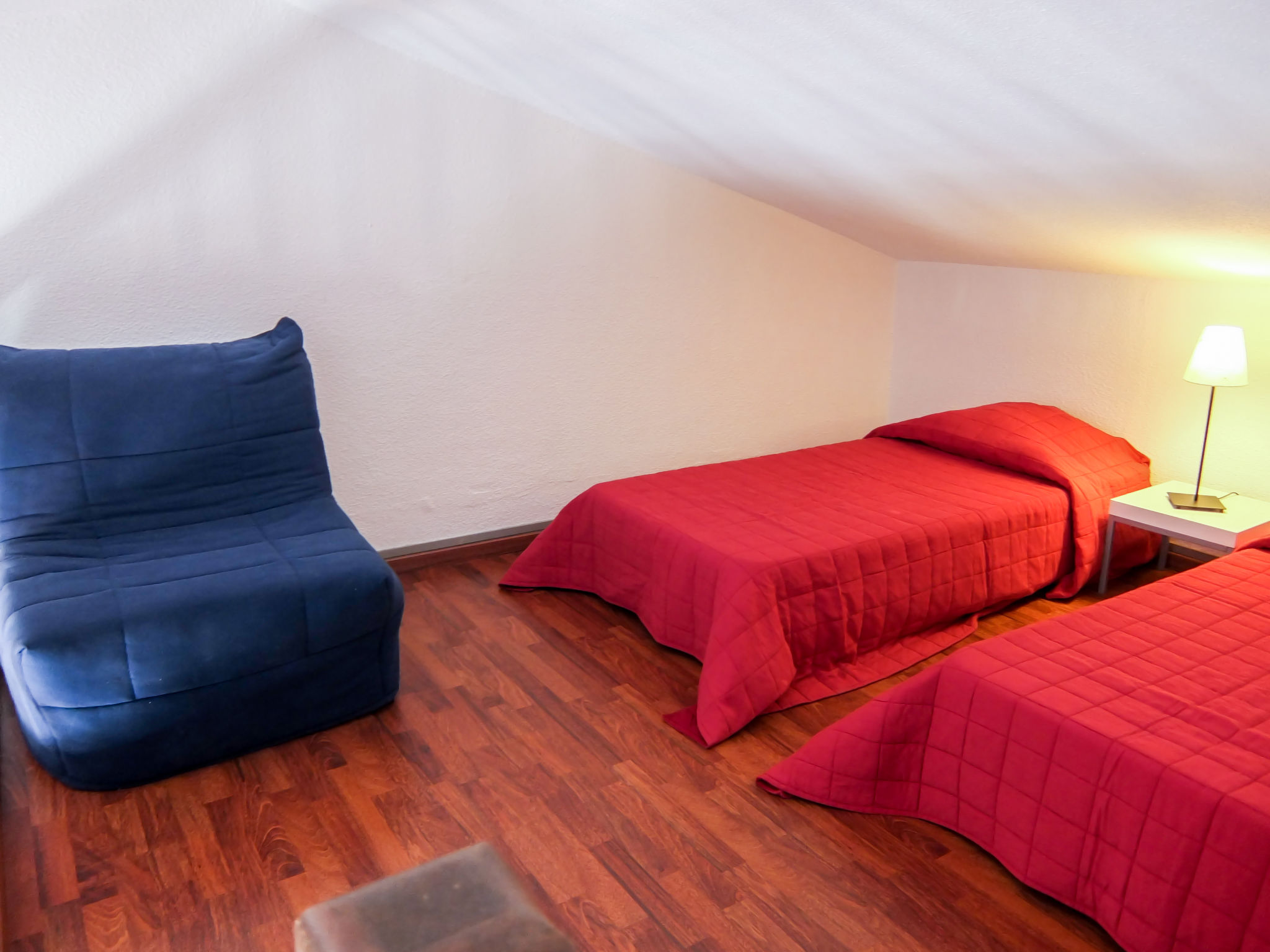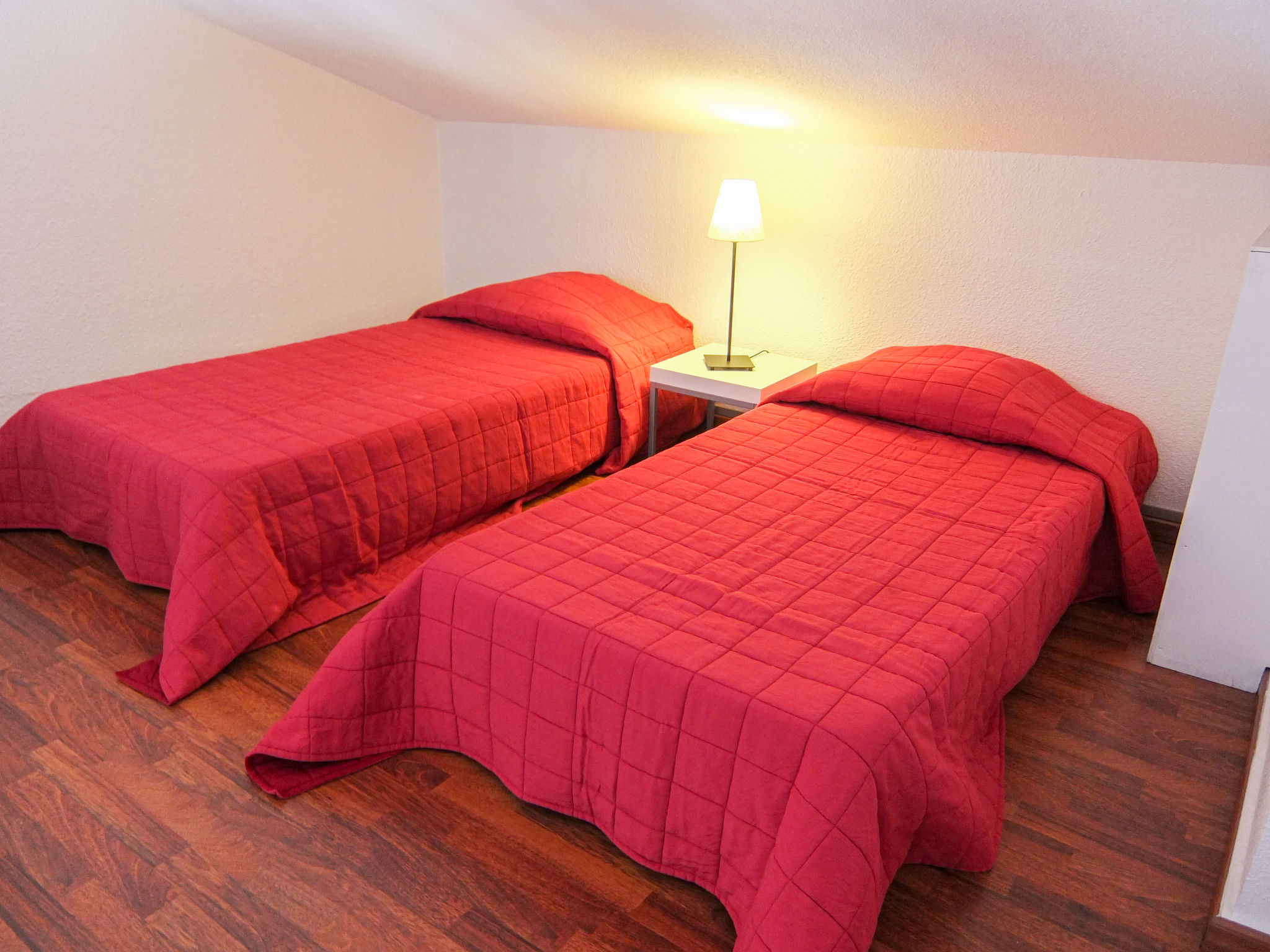2-Zimmer-Wohnung 30 m2 auf 2 Stockwerken im 2. Stock. Wohn-/Esszimmer mit TV und DVD. Ausgang zum Balkon. 1 kleines Zimmer mit 1 franz. Bett (140 cm, Länge 190 cm). Kochnische (2 Kochplatten, Mikrowelle, elektrische Kaffeemaschine). Dusche/WC. Obergeschoss: (steile Treppe) abgeschrägte Galerie mit 2 Betten (90 cm, Länge 190 cm). Balkon 10 m2, Ostlage. Balkonmöbel. Zur Verfügung: Waschmaschine. Internet (Wireless LAN, extra). Parkplatz. Bitte beachten: Rauchmelder, kein Fahrstuhl. Inserat einer Privatperson nach Artikel 155, IV, CGI.